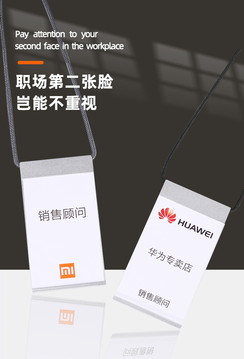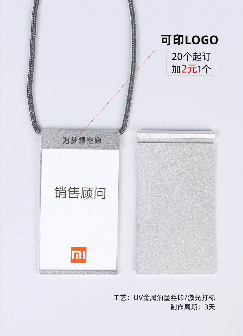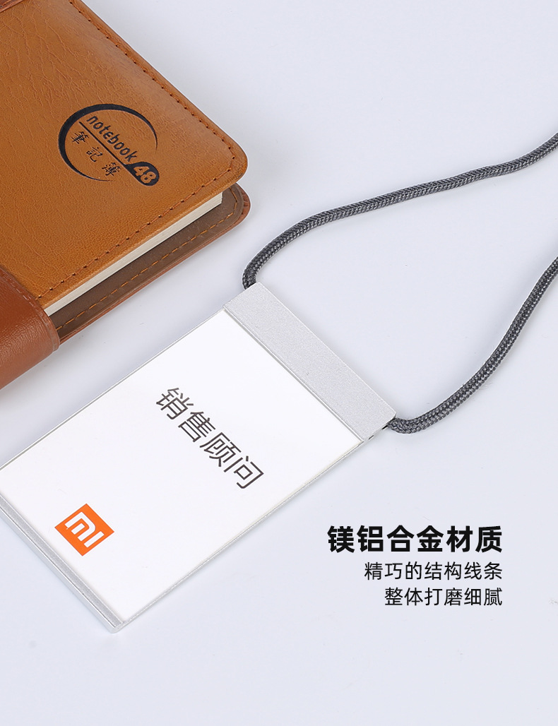 金属证件卡套适用于小米米家胸牌挂牌简约时尚无边框铝合金工牌工作证手机数码店员工挂牌工号牌挂绳吊绳内页