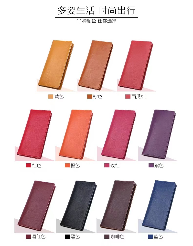 女士高档简约真皮长款钱包卡包时尚便携薄款皮夹多功能手拿包男女