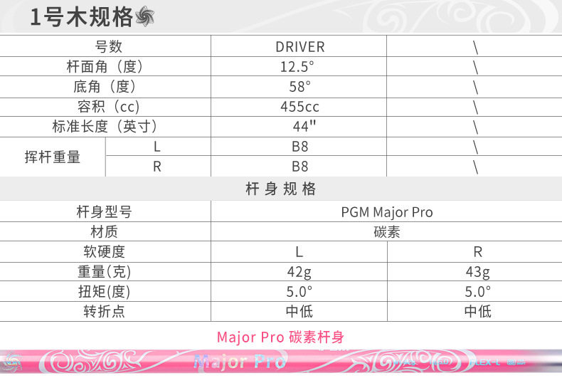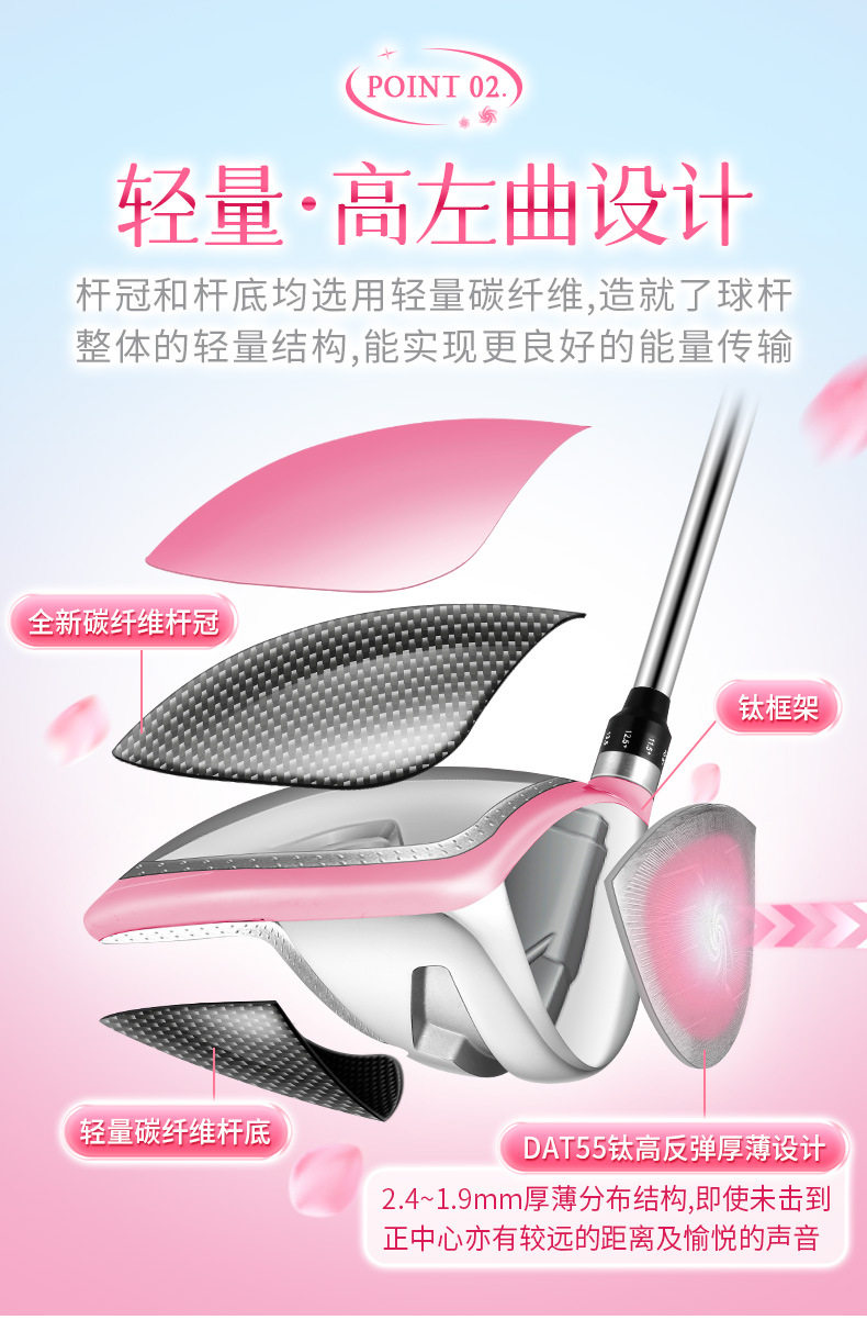 PGM 高尔夫球杆女士全套高反弹轻量碳纤维钛金一号木铁杆组伸缩包