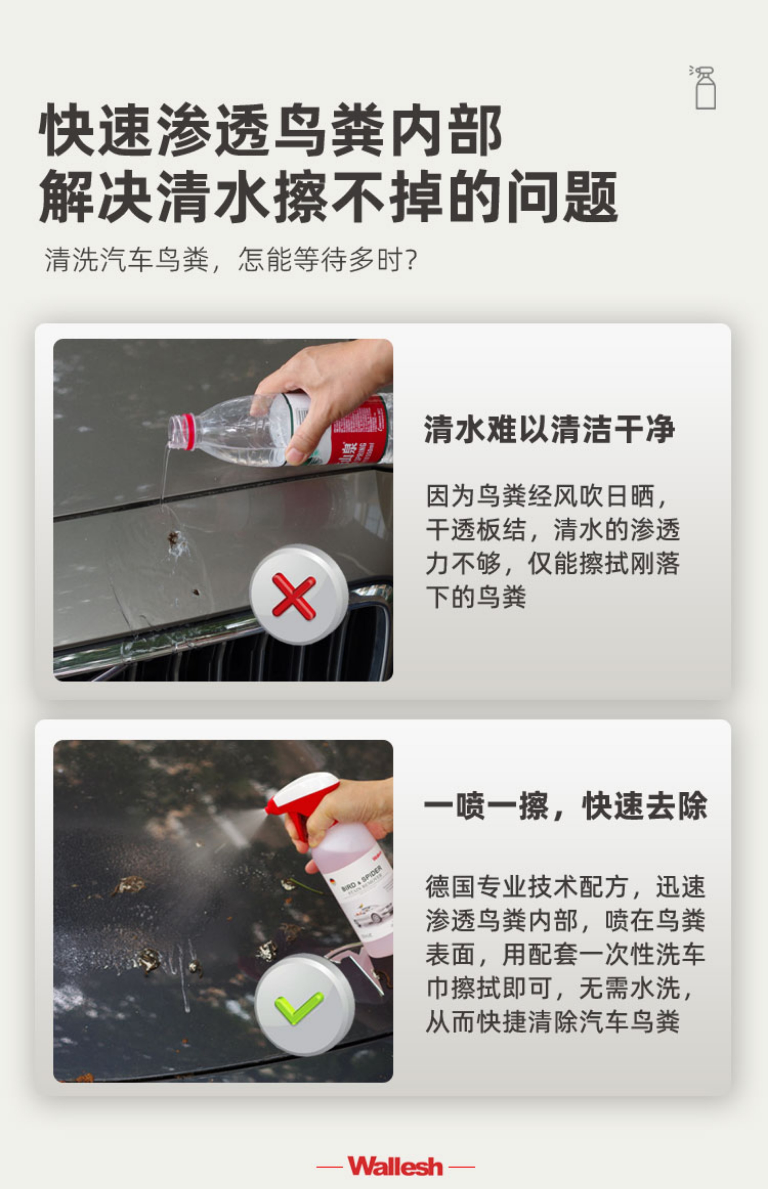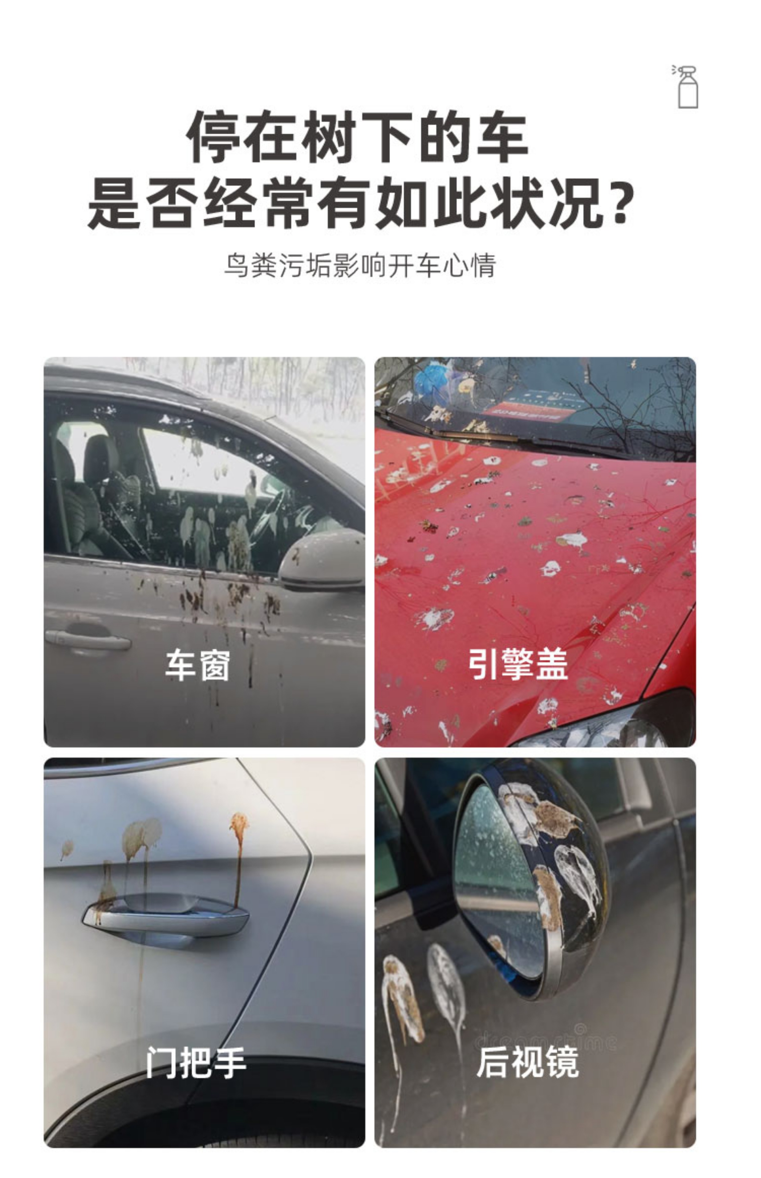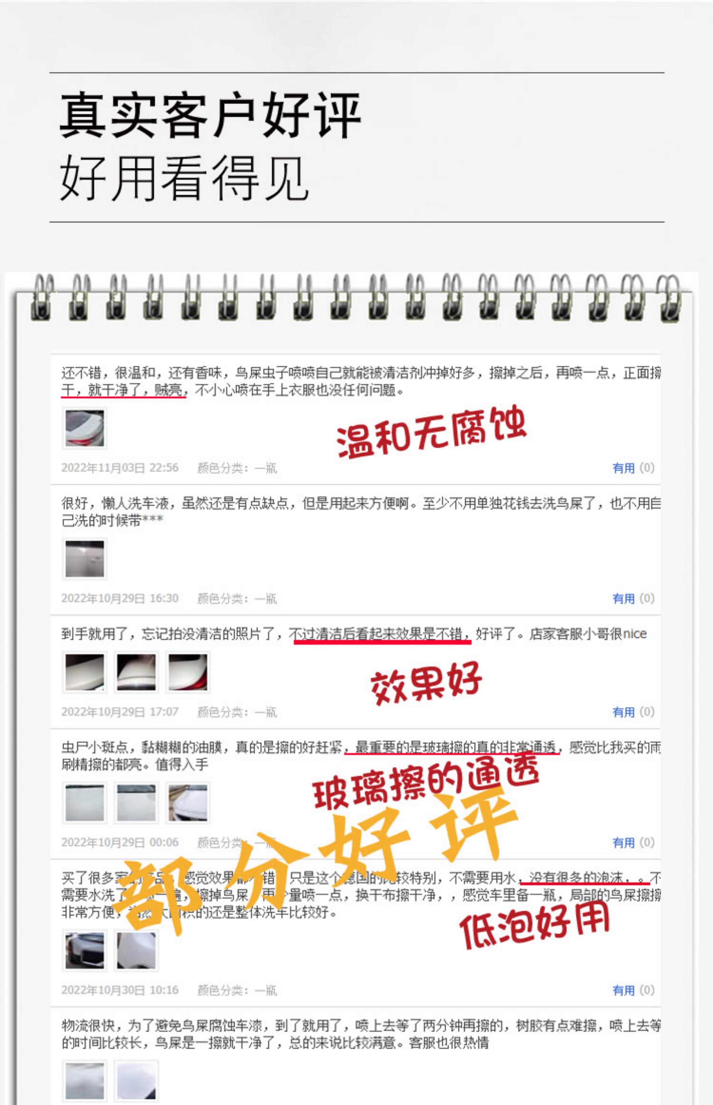 汽车鸟屎清洗剂免水洗快速清洁剂车漆油膜鸟粪泡沫除玻璃油膜神器