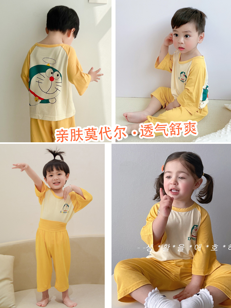 男童睡衣夏款莫代尔男孩宝宝冰丝空调儿童夏季薄款家居服2025新款