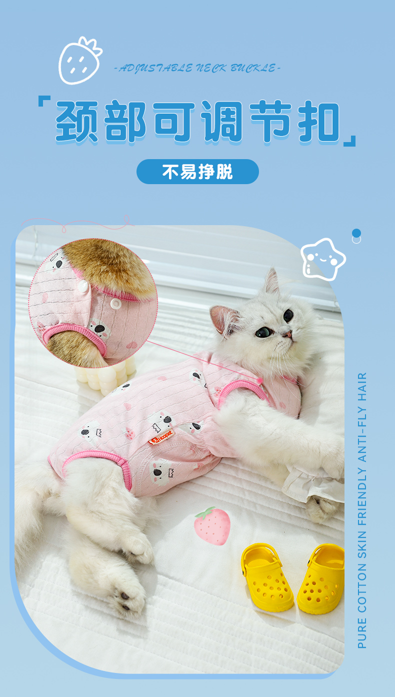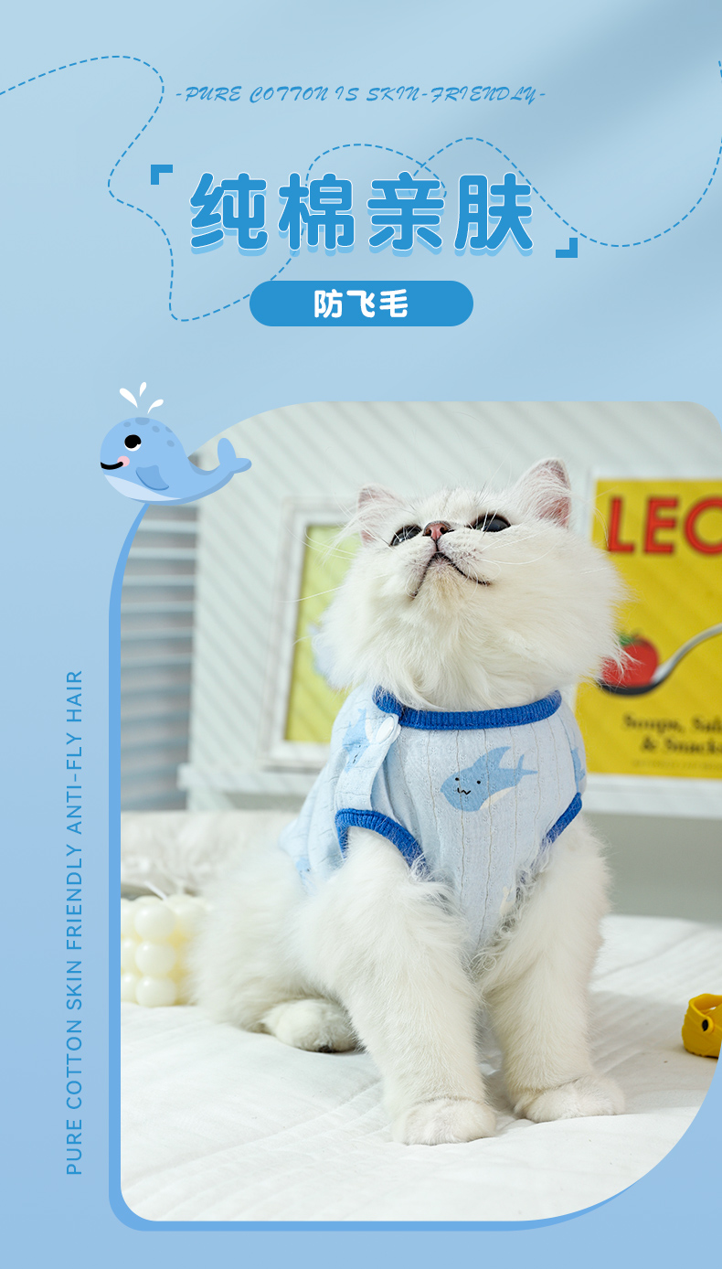 猫咪衣服防掉毛夏季薄款的布偶猫小猫宠物母猫纯棉猫猫夏天绝育衣