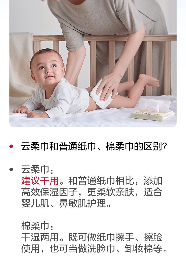 babycare云柔巾婴儿保湿纸巾40抽10包宝宝柔纸巾乳霜纸