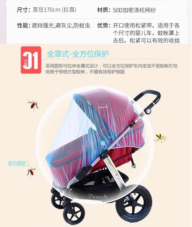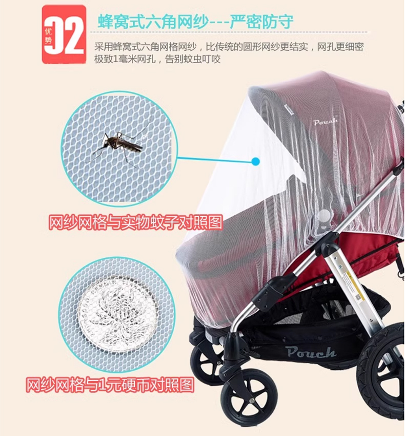 婴儿车蚊帐全罩式通用宝宝推车防蚊罩儿童婴幼儿伞车加大加密网纱