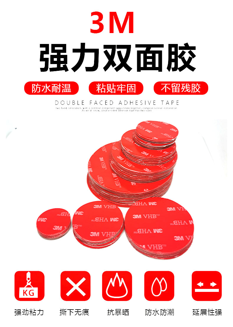 3M双面胶强力汽车VHB小圆片手机支架行车记录仪ETC高粘性耐高温