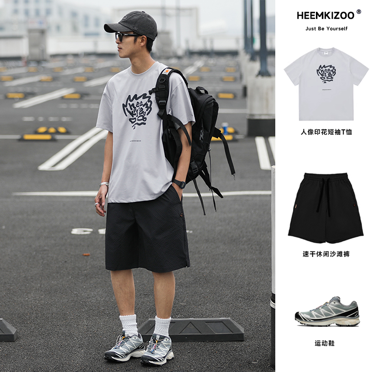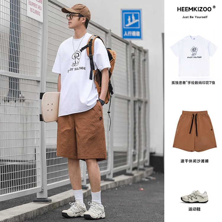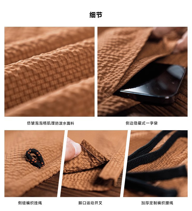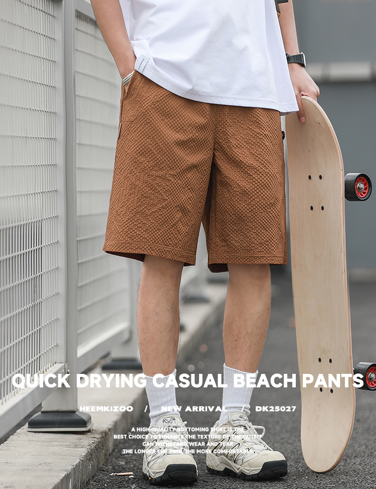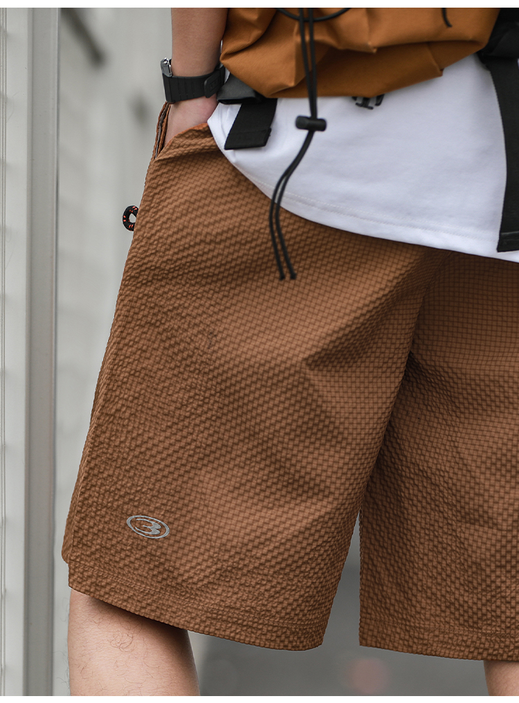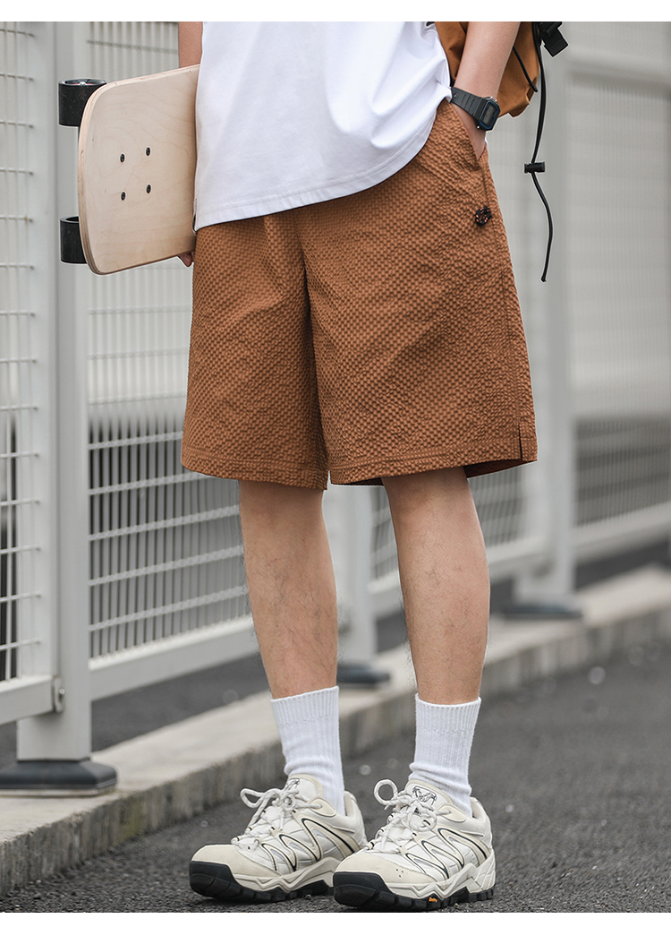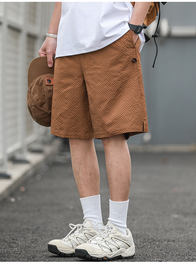 防泼水嘿马七作日系复古夏季男士仿皱泡泡格肌理休闲短裤宽松裤子
