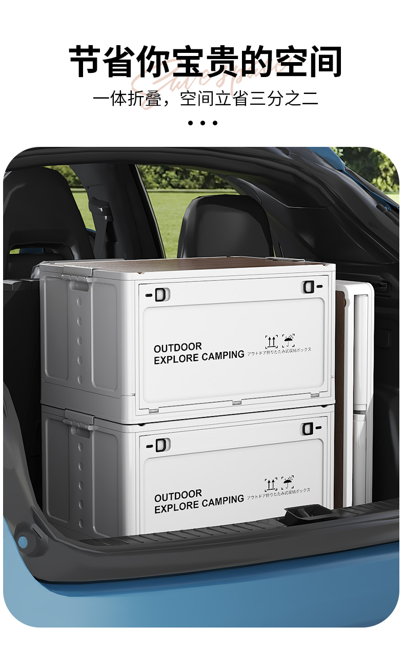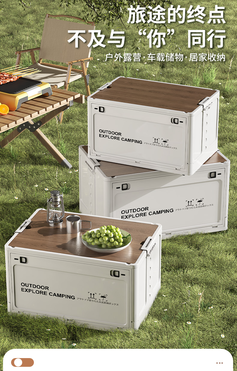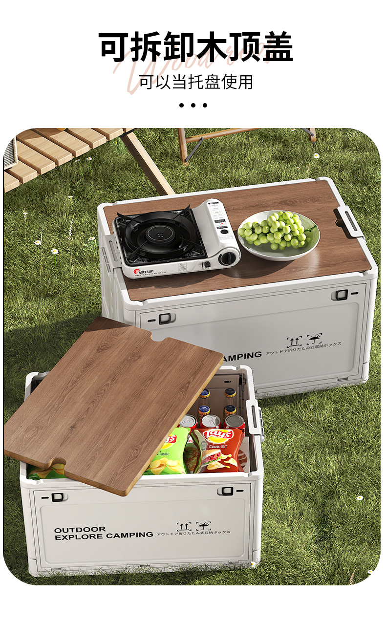 天鼠户外露营收纳箱折叠箱木盖置物箱车载后备箱整理箱野餐储物箱