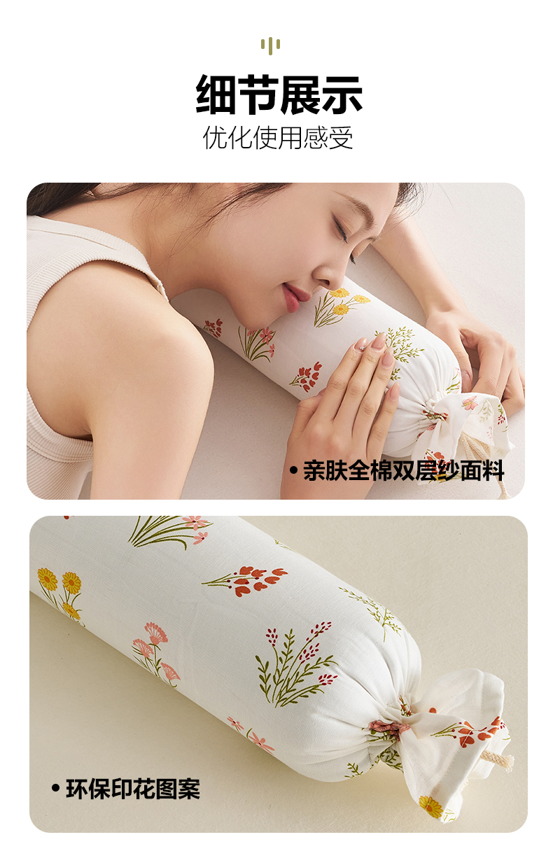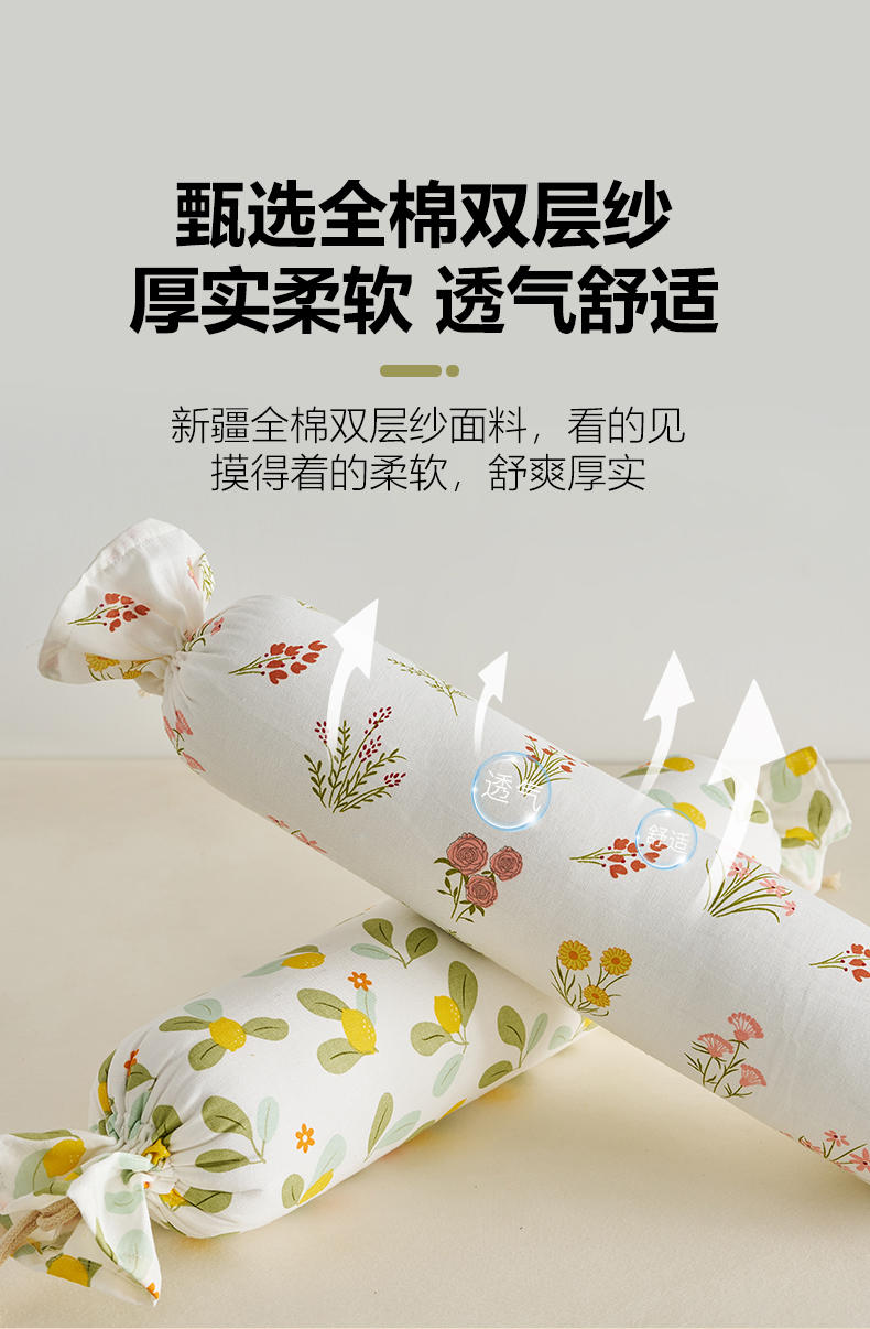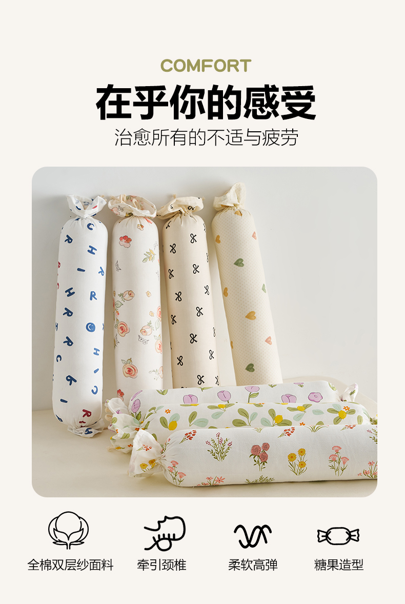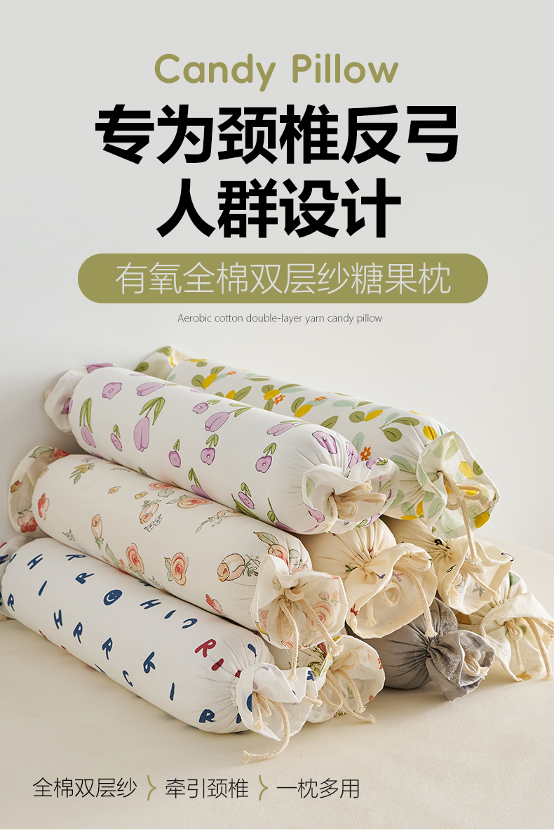 全棉双层纱颈椎枕圆柱枕头护颈椎助睡眠成人枕芯糖果圆枕颈椎专用