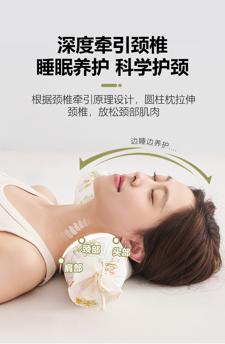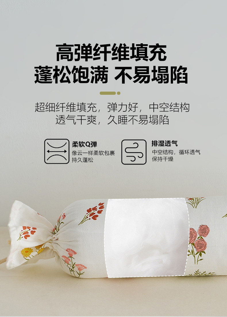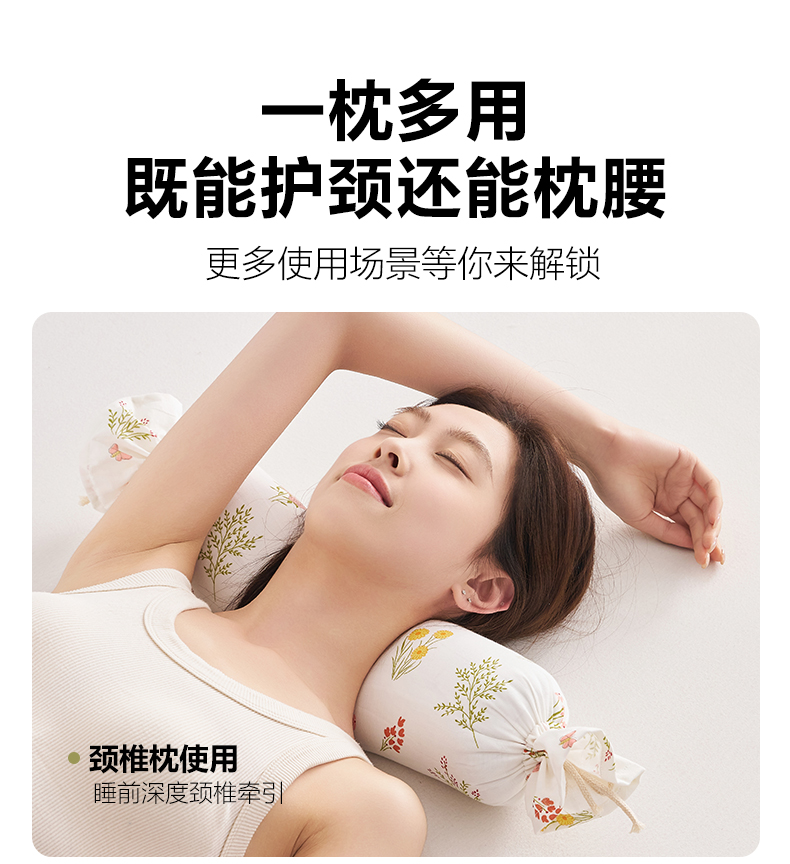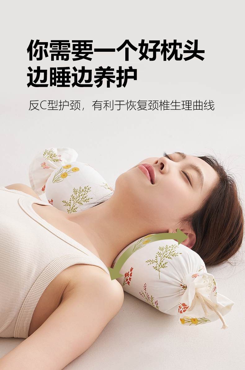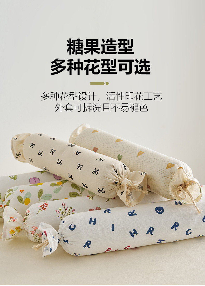 全棉双层纱颈椎枕圆柱枕头护颈椎助睡眠成人枕芯糖果圆枕颈椎专用