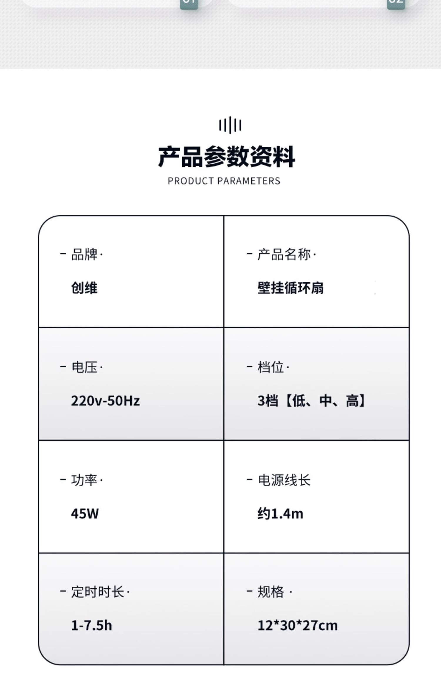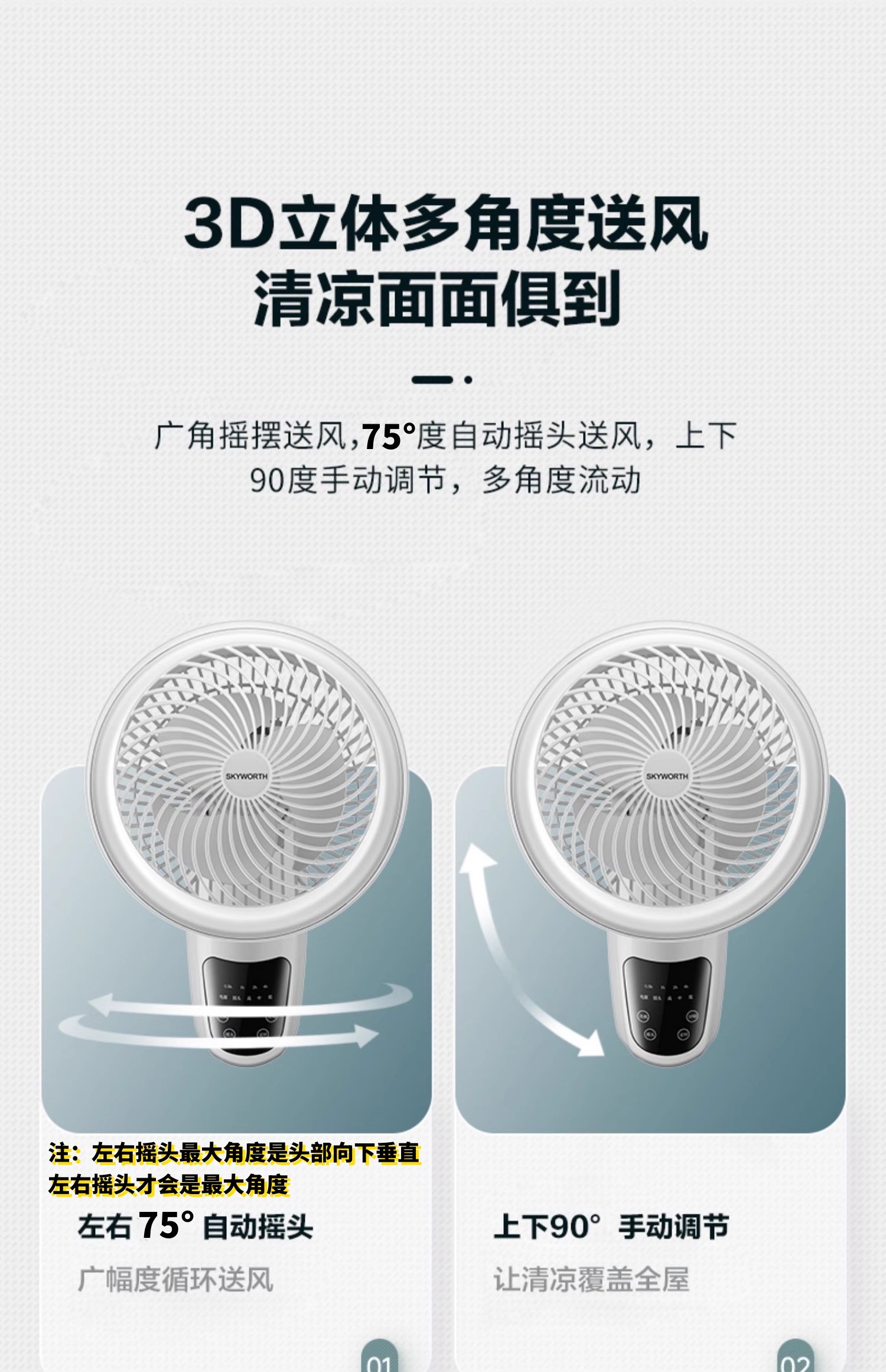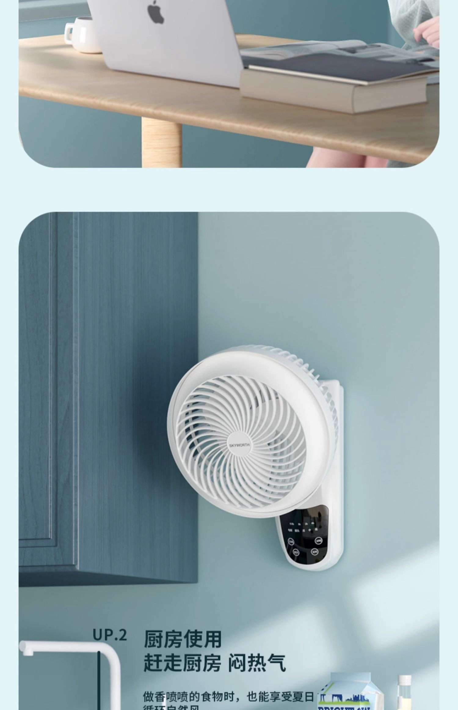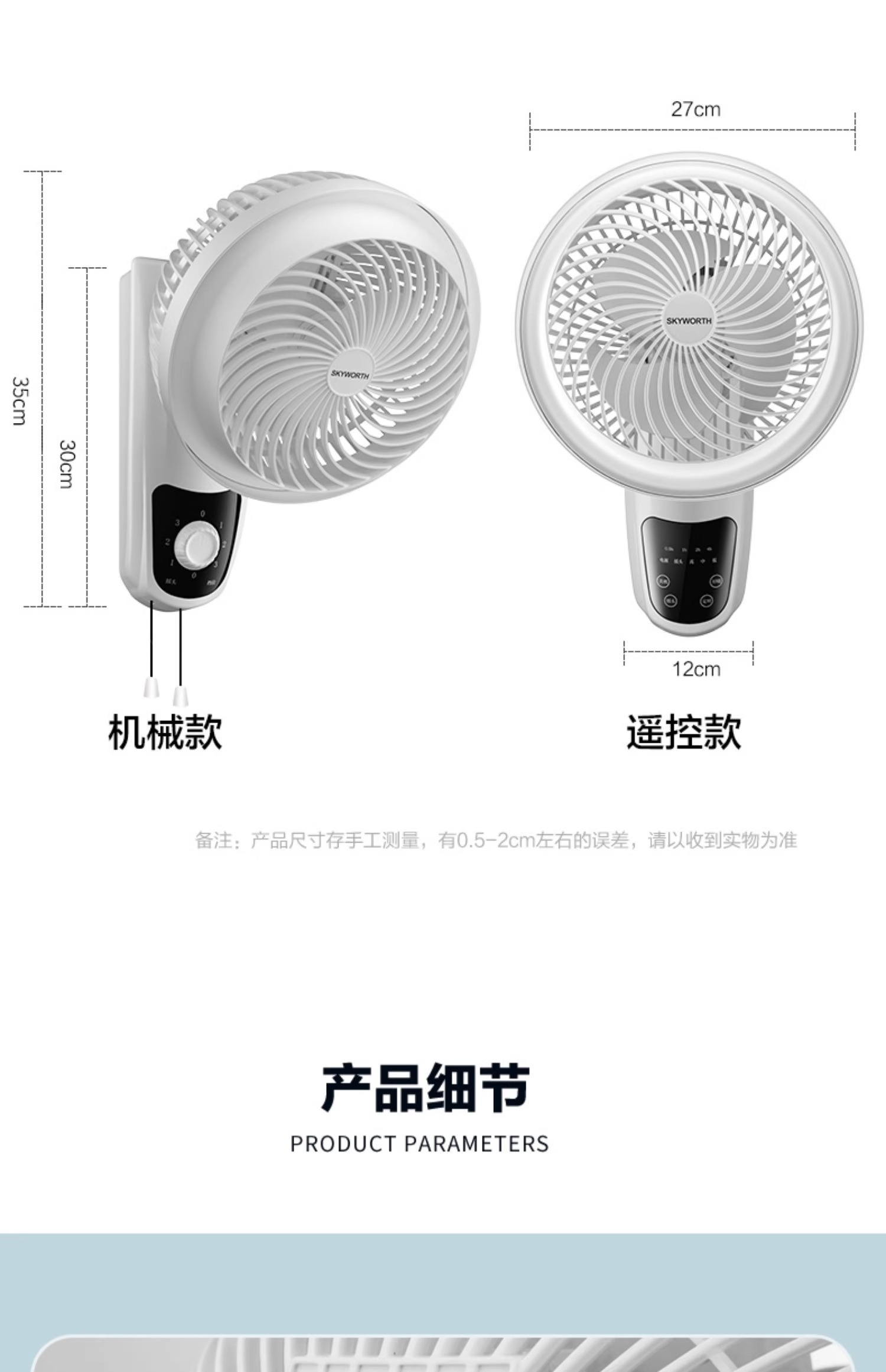 创维电风扇家用小型壁挂式空气循环壁扇厨房卫生间免打孔挂墙壁扇