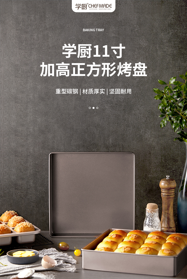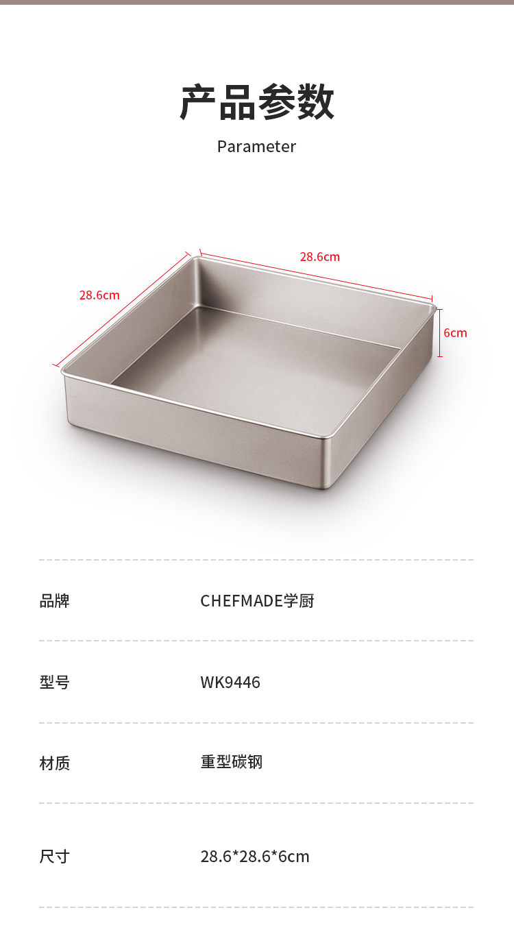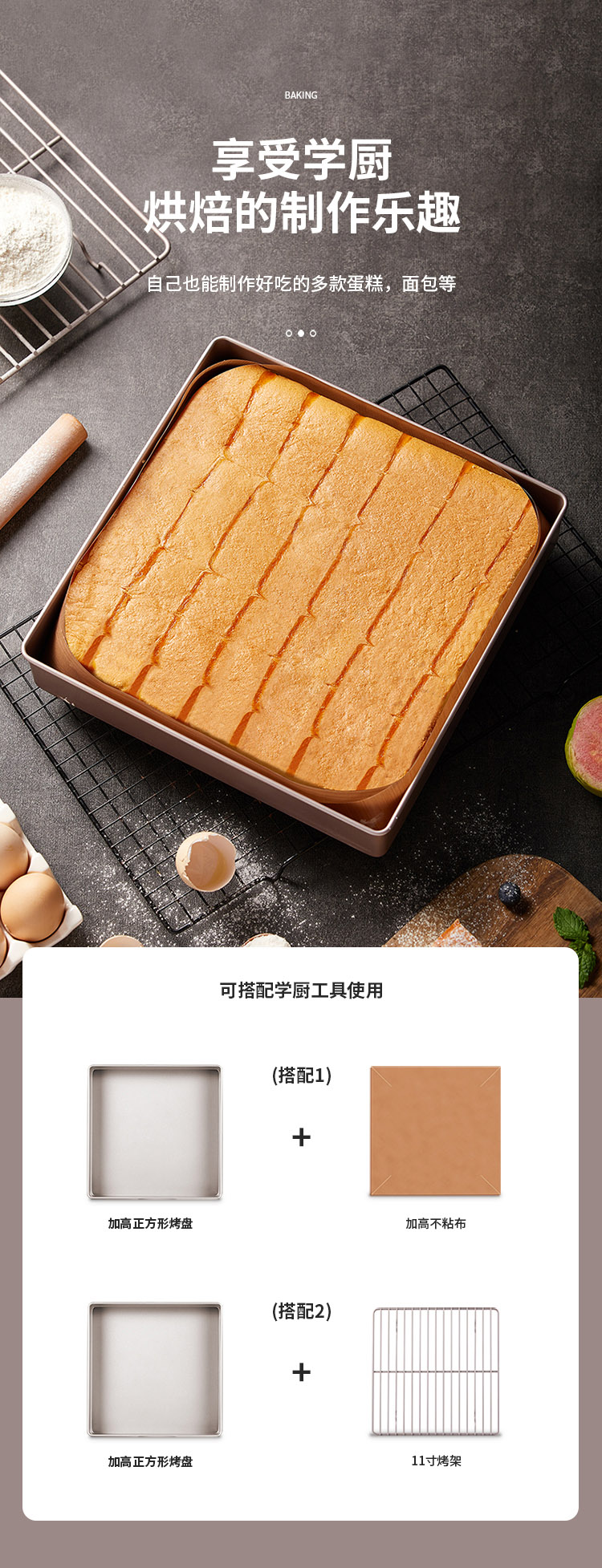 学厨28烤盘11寸不粘正方形加高蛋糕面包饼干家用烘焙模具古早模具