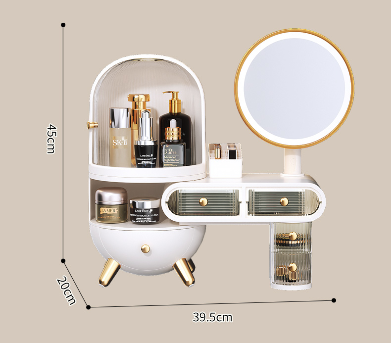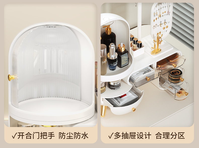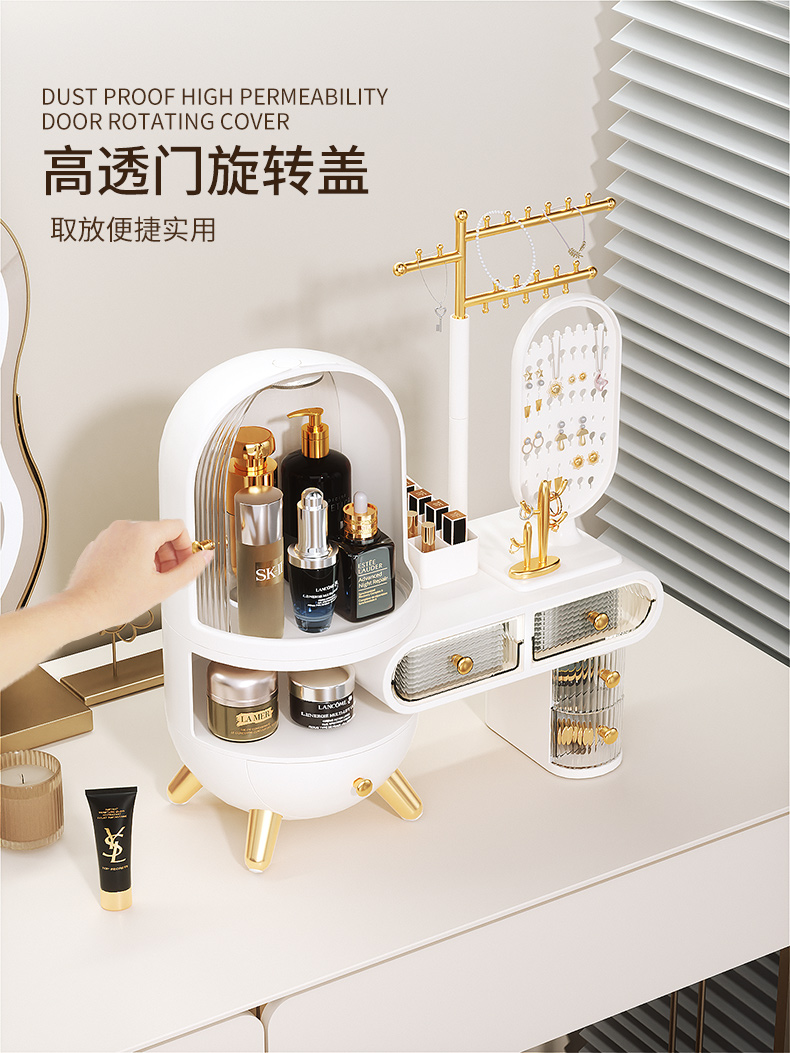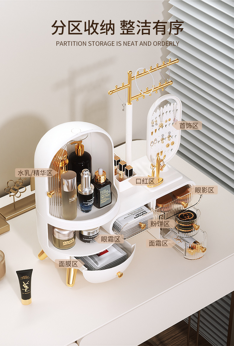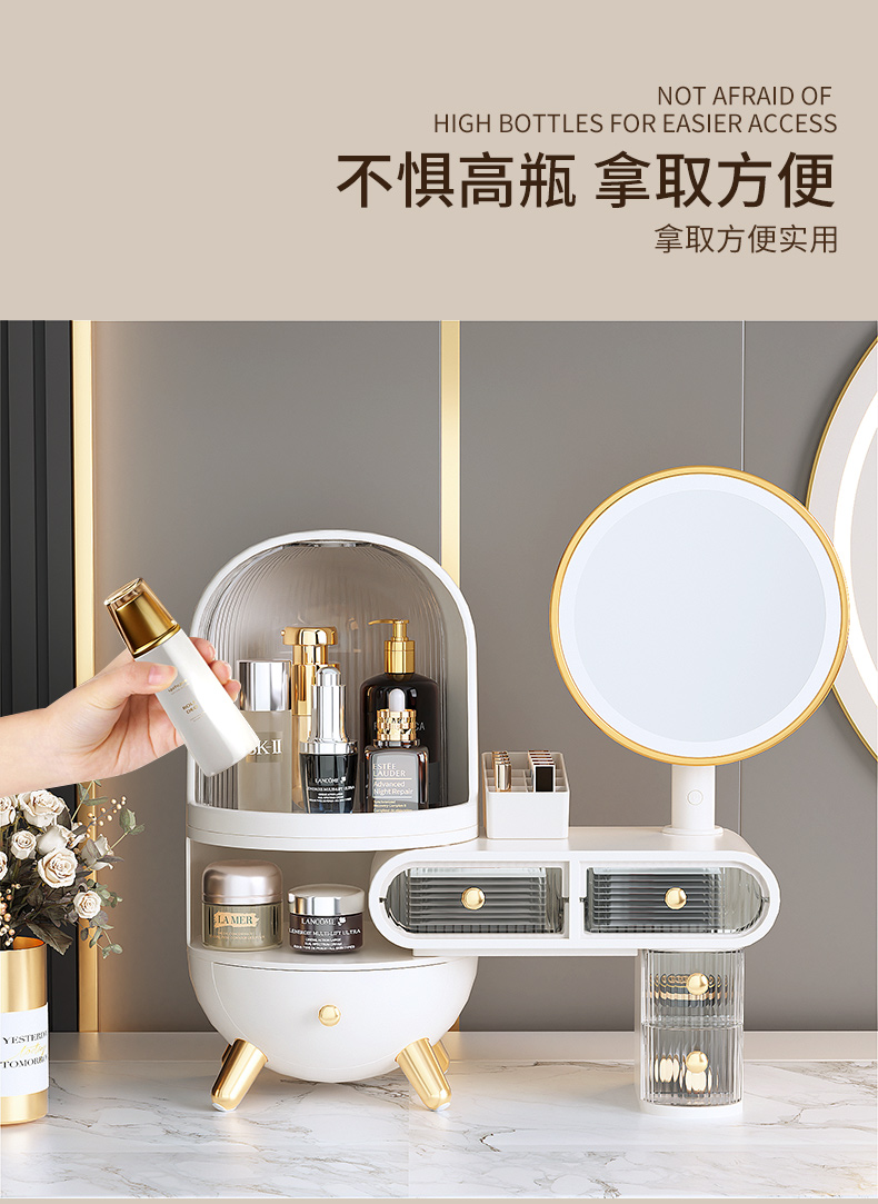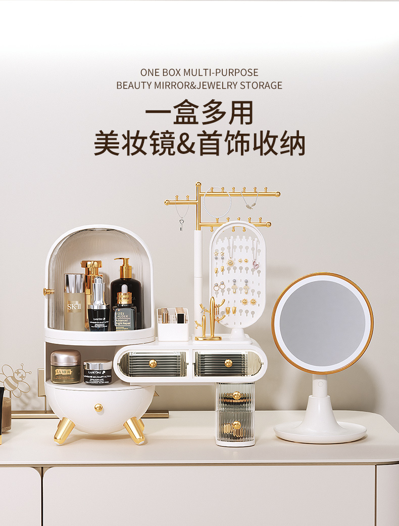化妆品收纳盒桌面新款护肤品化妆盒梳妆台宿舍镜子首饰一体置物架