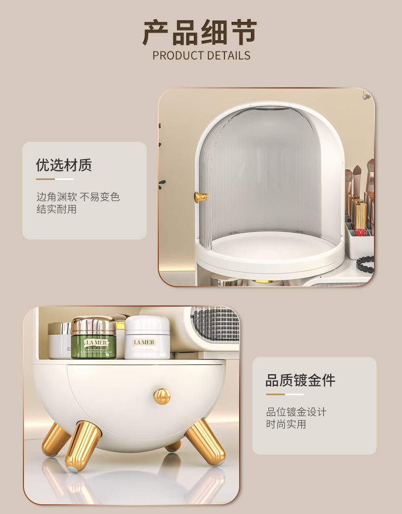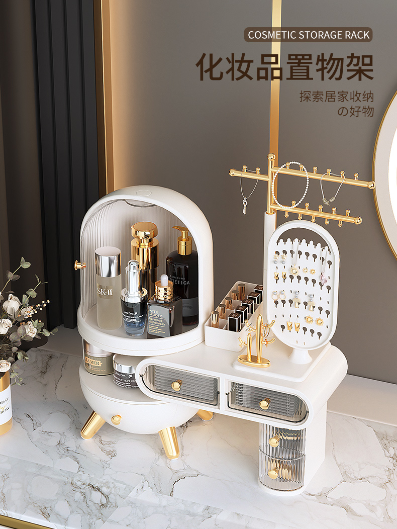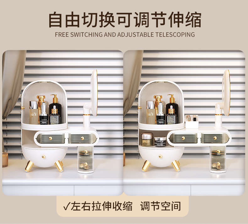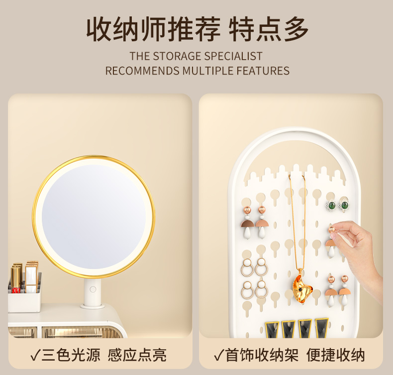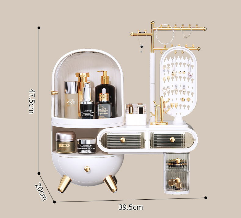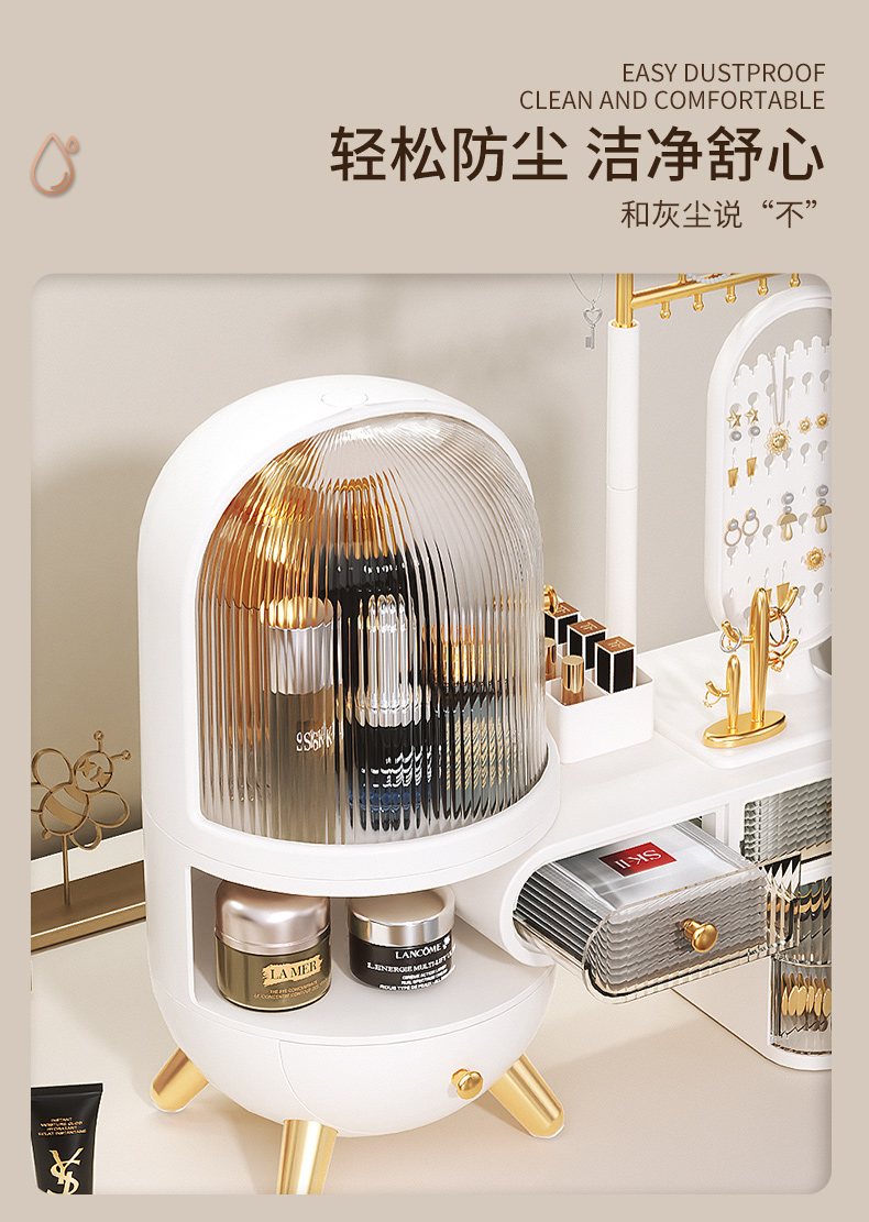 化妆品收纳盒桌面新款护肤品化妆盒梳妆台宿舍镜子首饰一体置物架