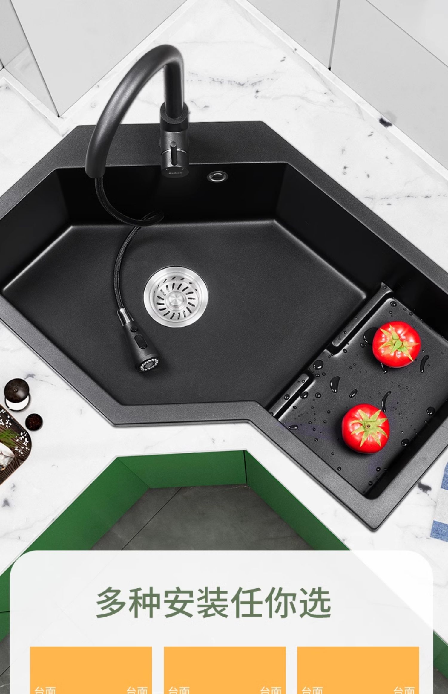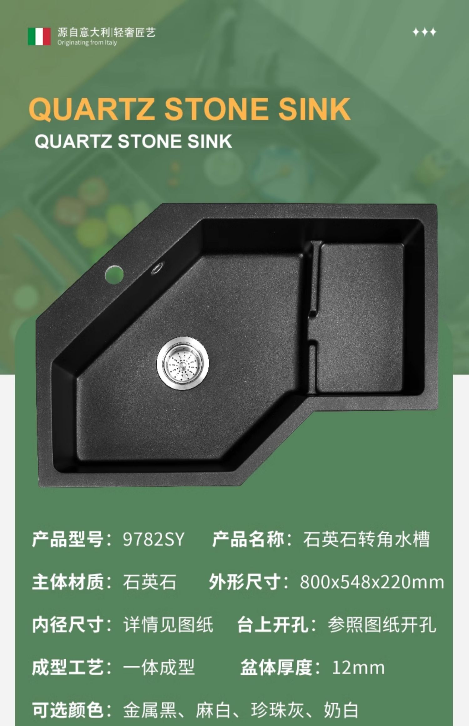 意大利意狄讴厨房石英石水槽转角洗碗槽水盆洗手池异形洗菜盆9782