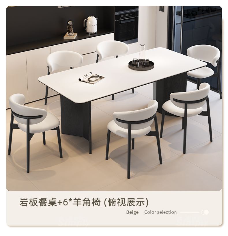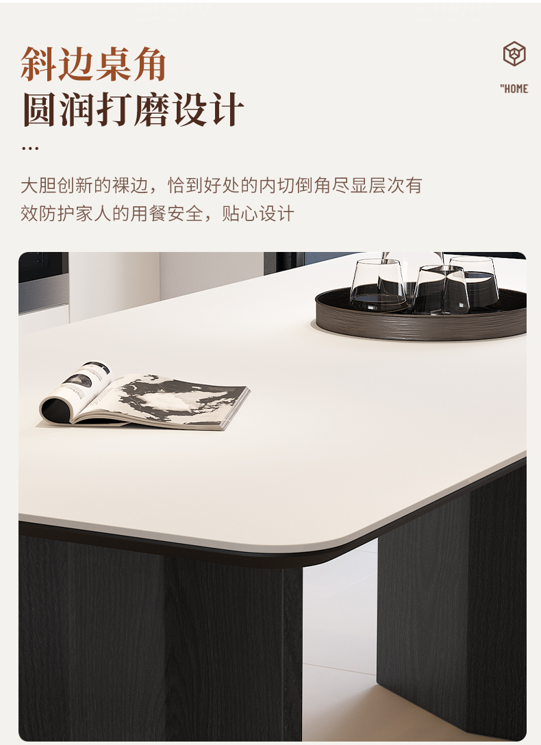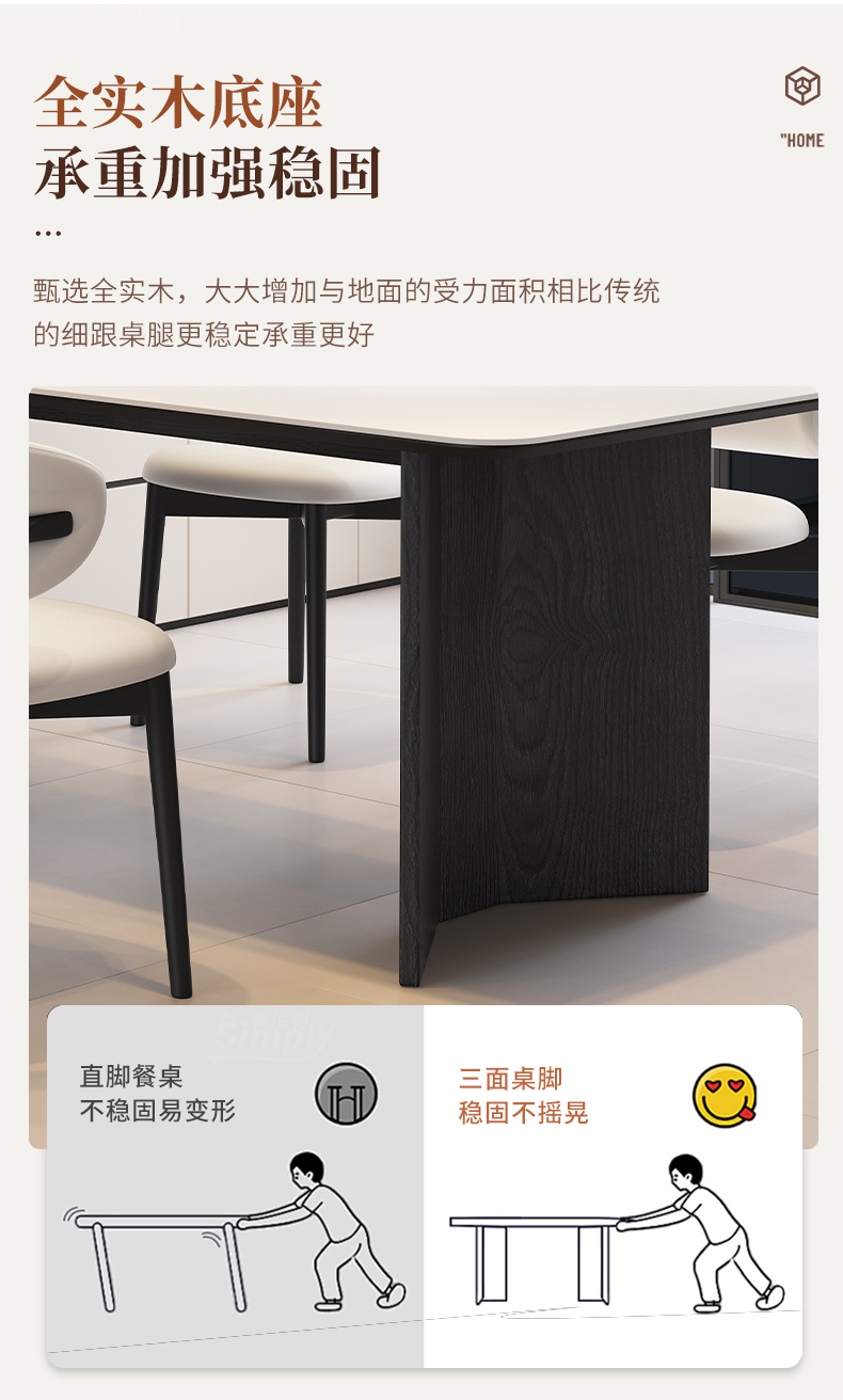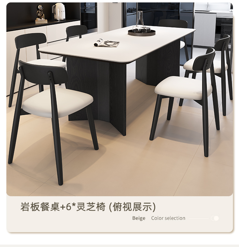 轻奢意式极简小户型长方形家用复古风岩板餐桌椅组合实木吃饭桌子