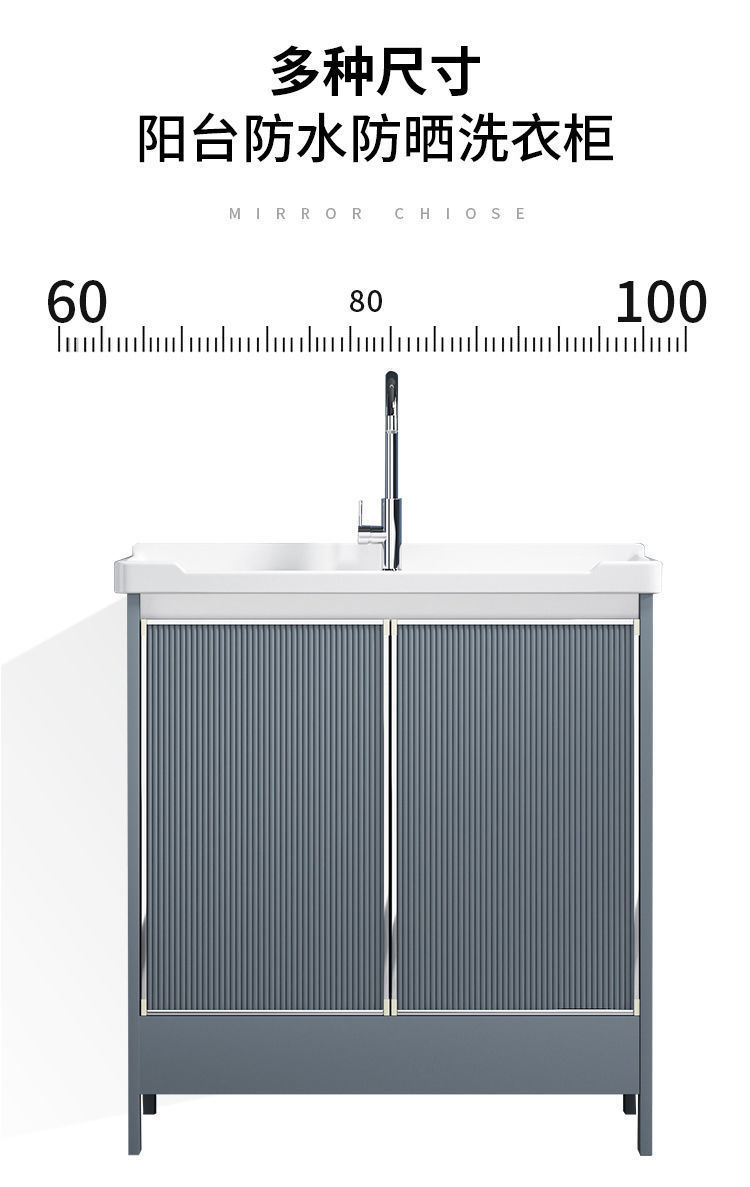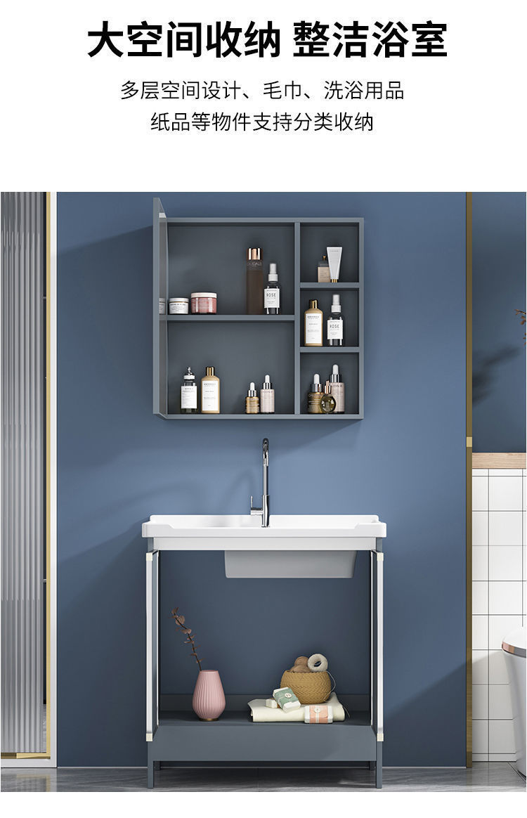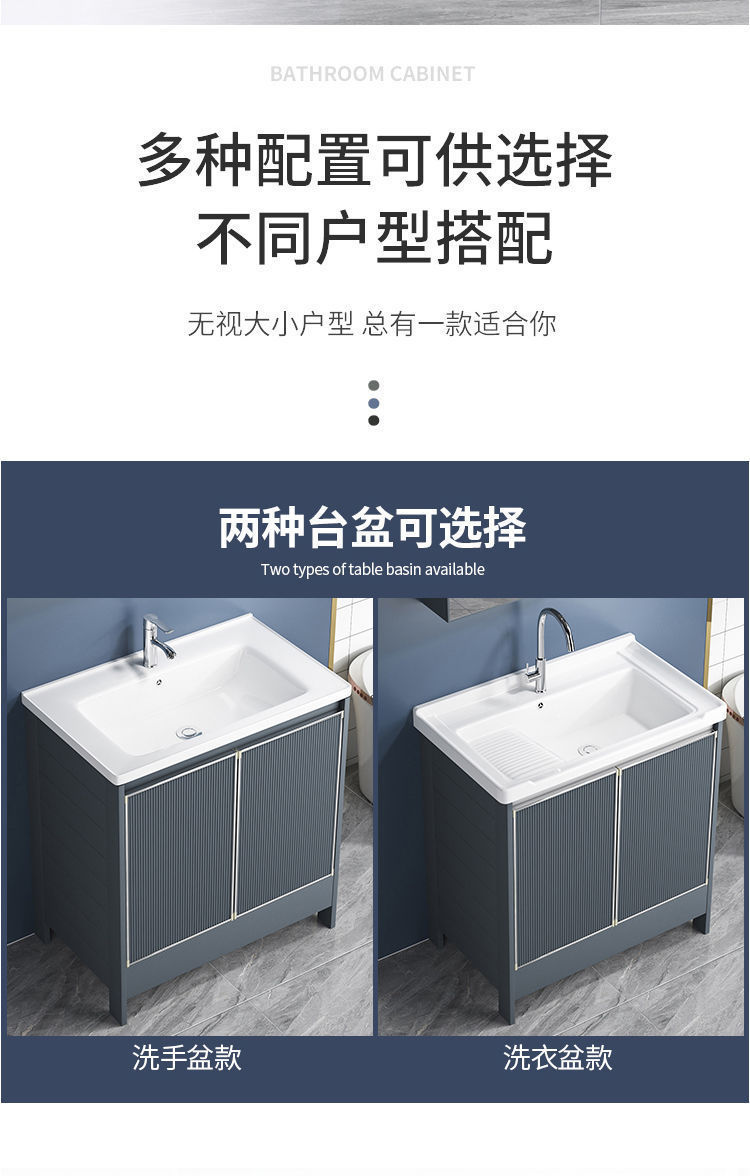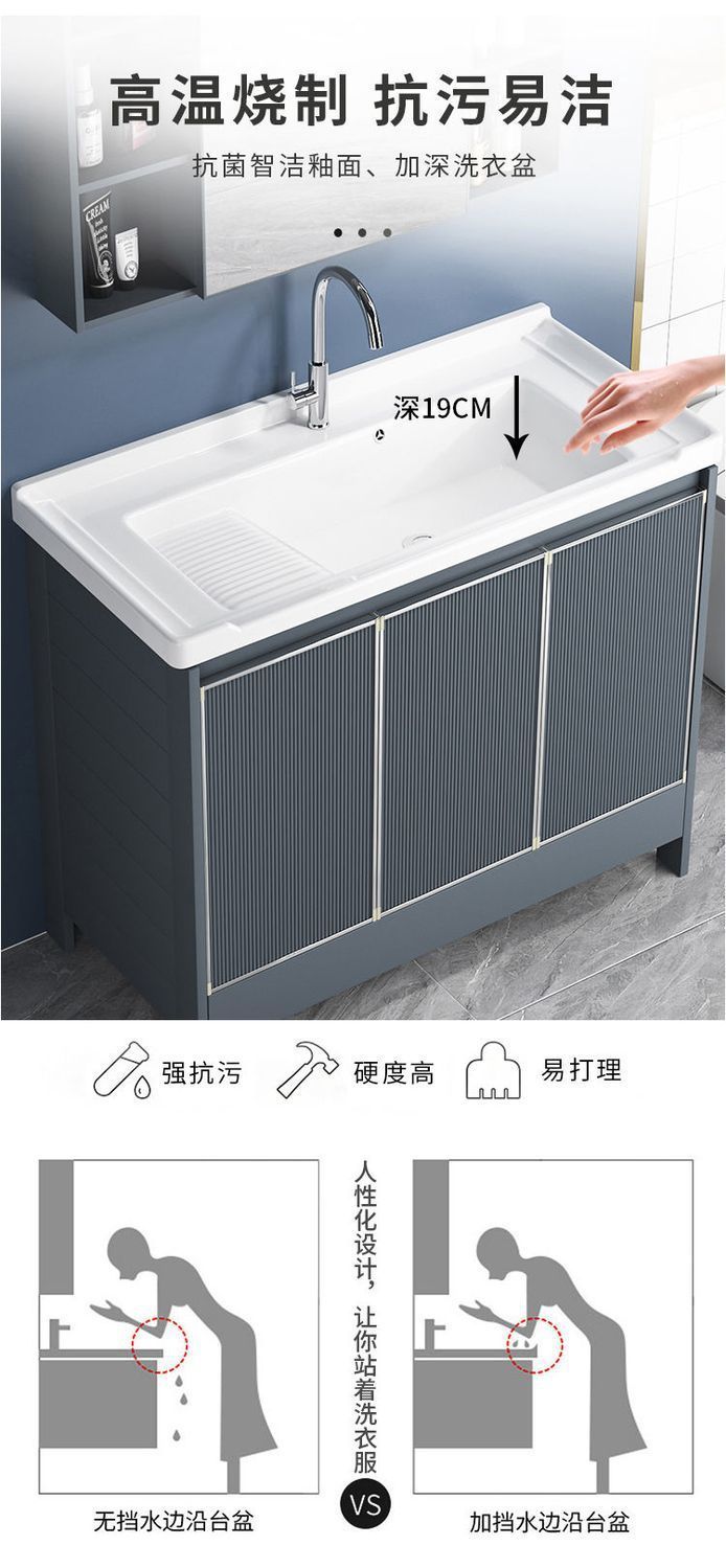 卫生间阳台陶瓷洗衣盆带搓板水槽太空铝灰色落地浴室柜组合洗脸盆