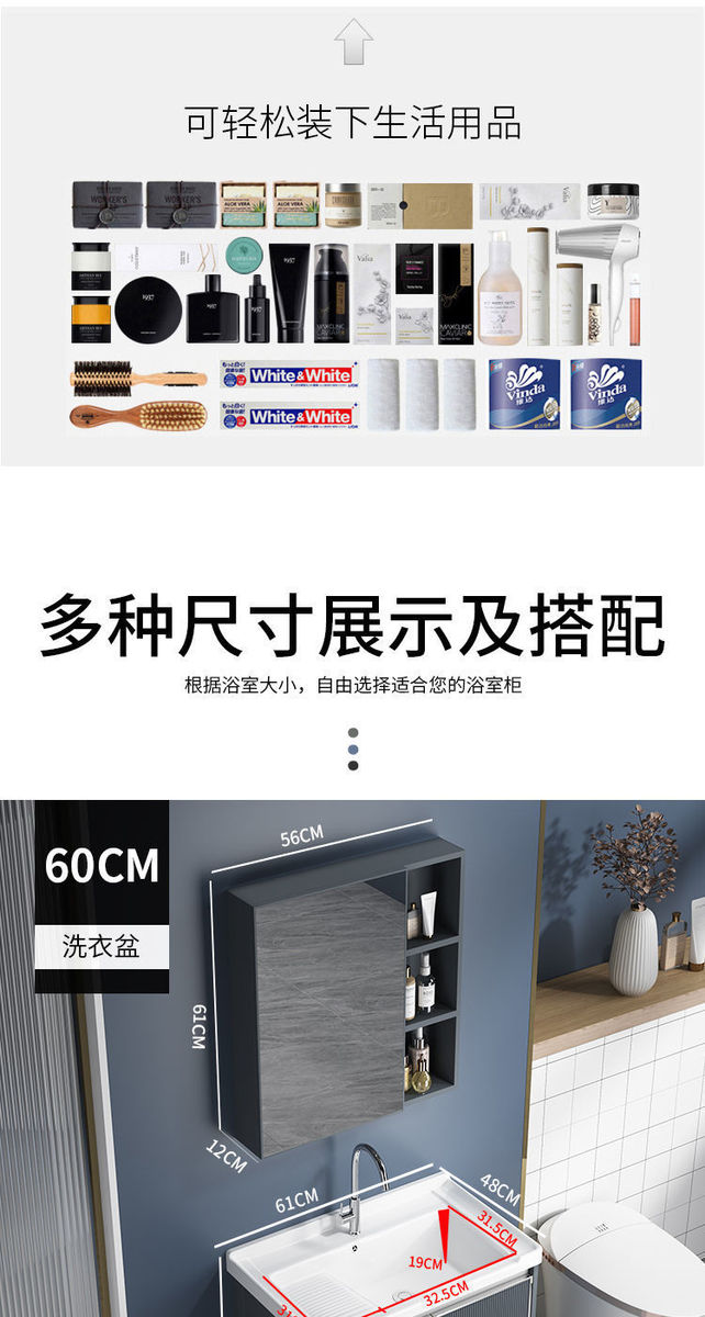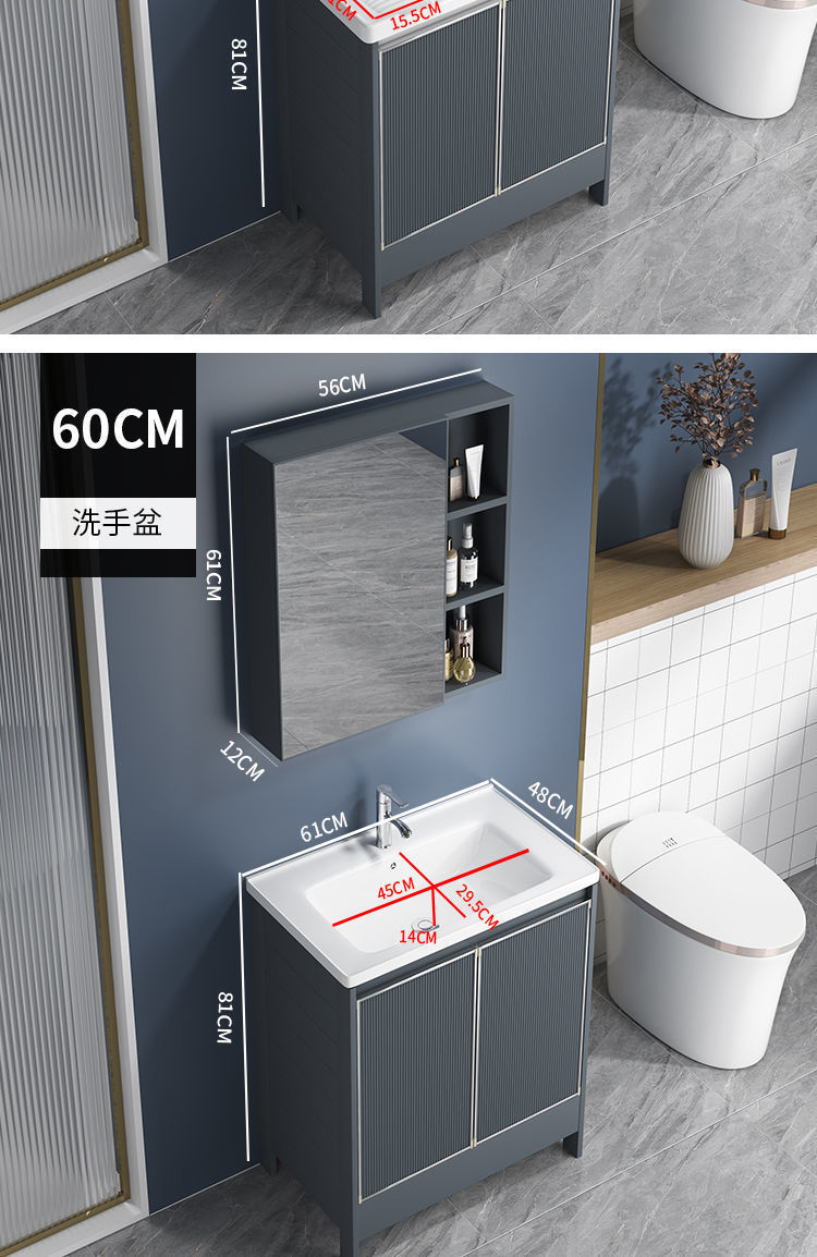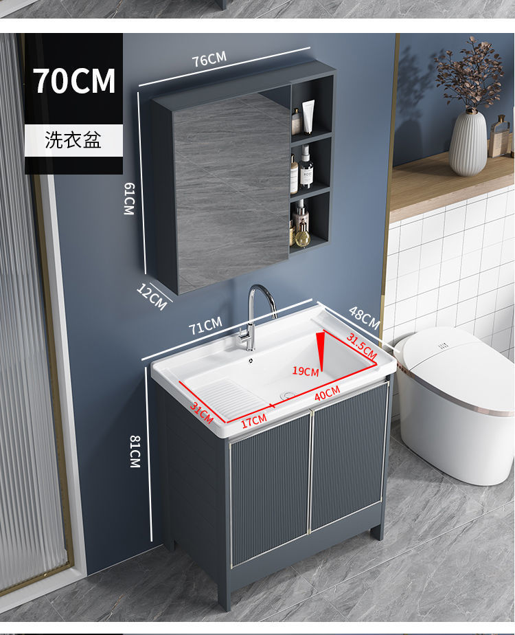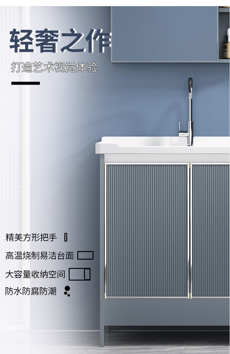 卫生间阳台陶瓷洗衣盆带搓板水槽太空铝灰色落地浴室柜组合洗脸盆