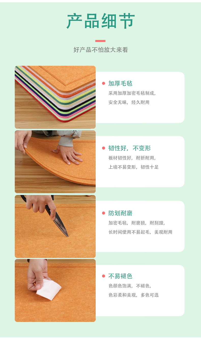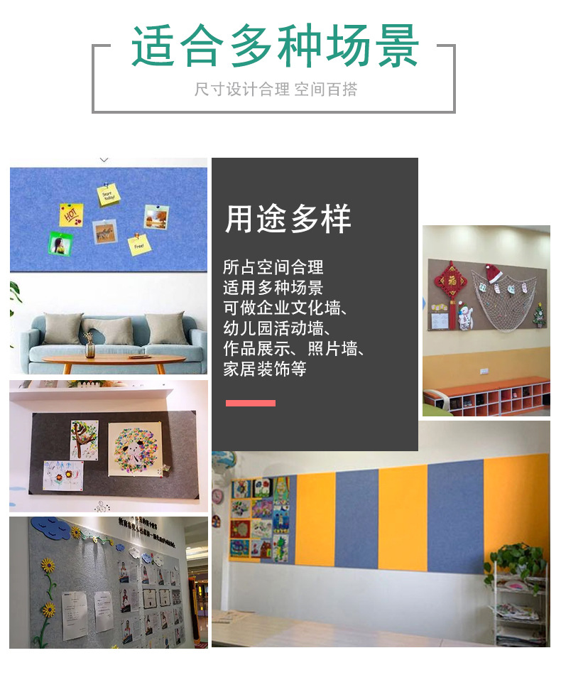 毛毡照片墙贴聚酯纤维吸音板隔音板幼儿园墙面装饰彩色背胶展示板