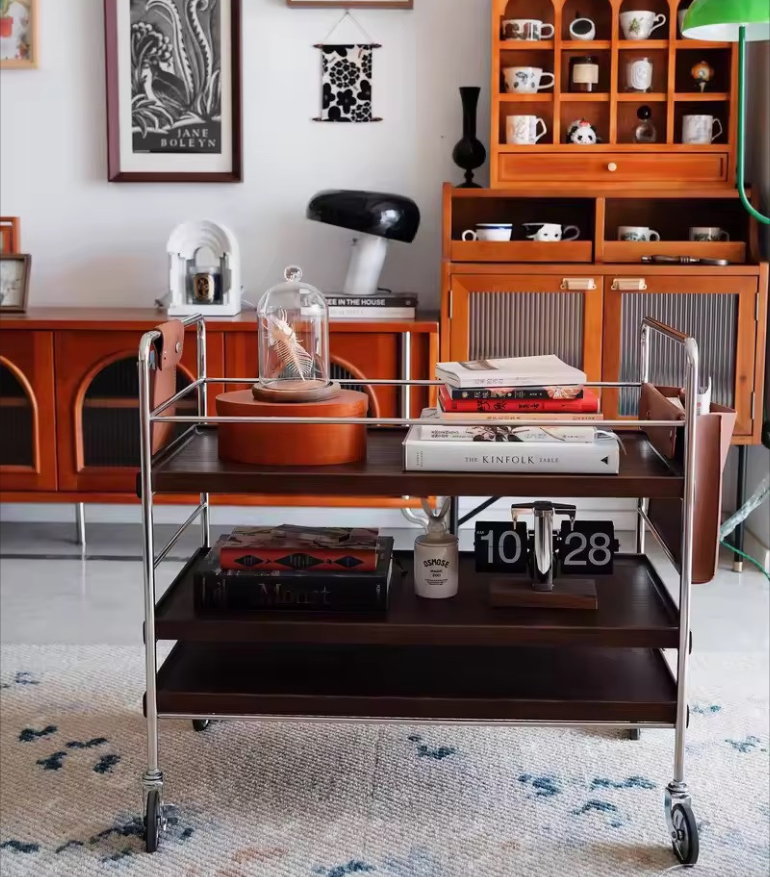 实木沙发边几可移动带轮小推车小户型客厅茶几边桌边柜角几置物架