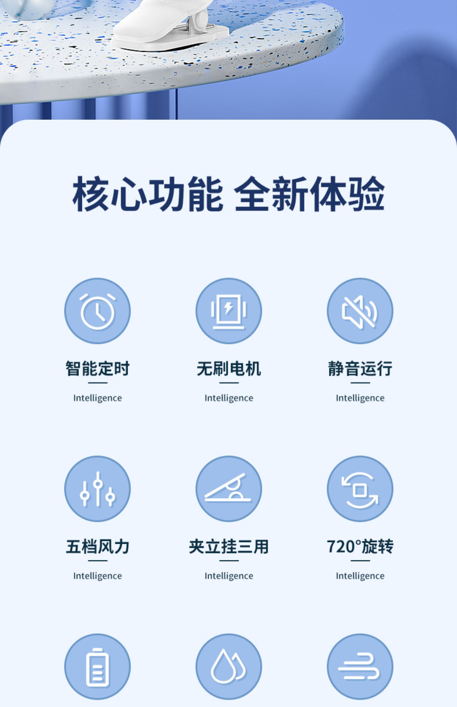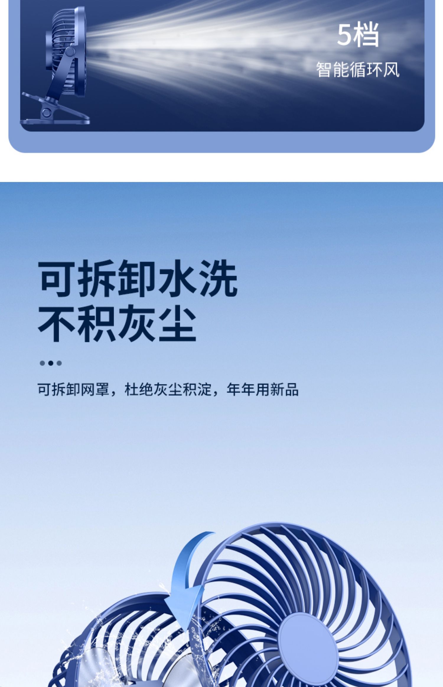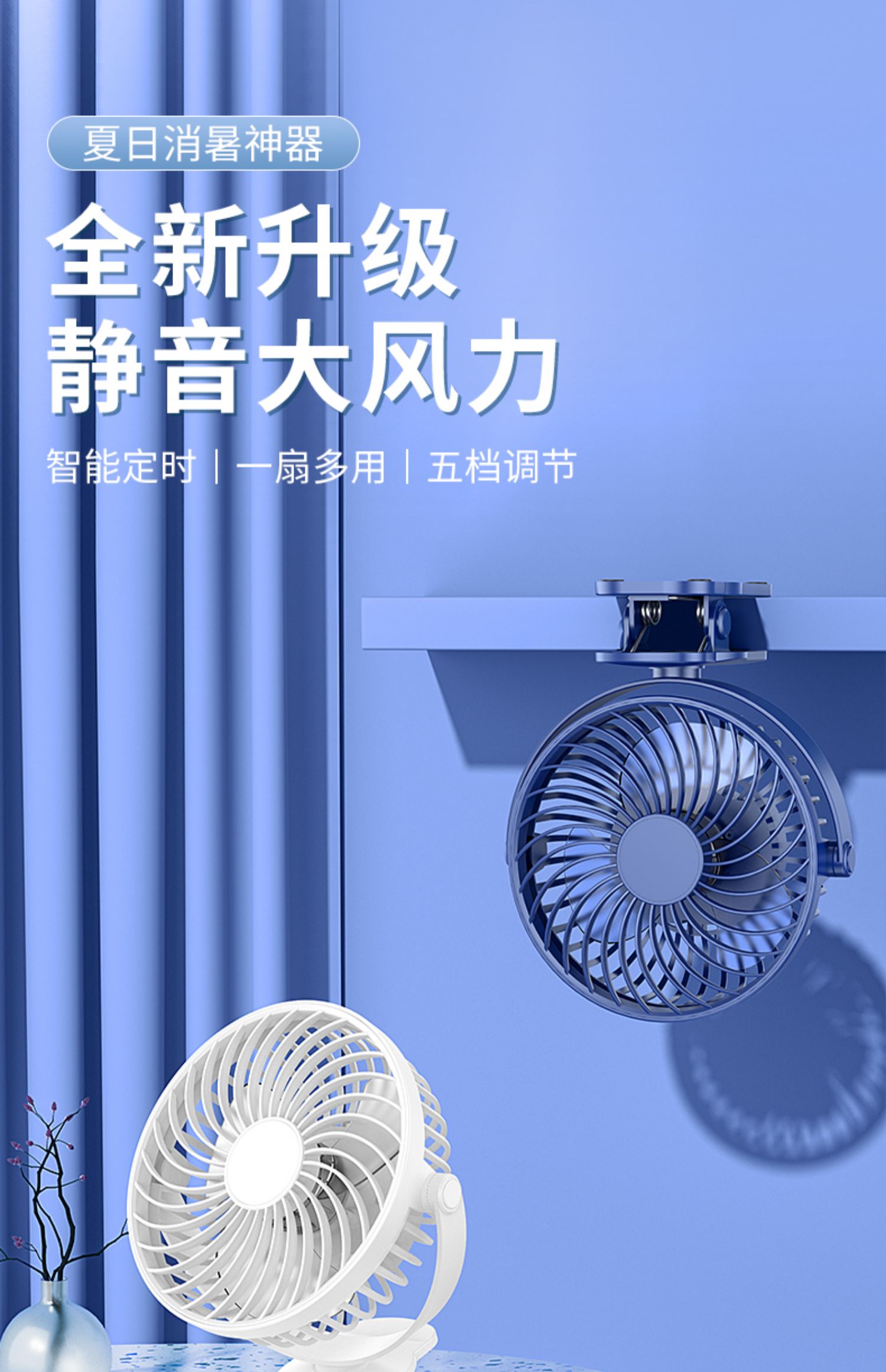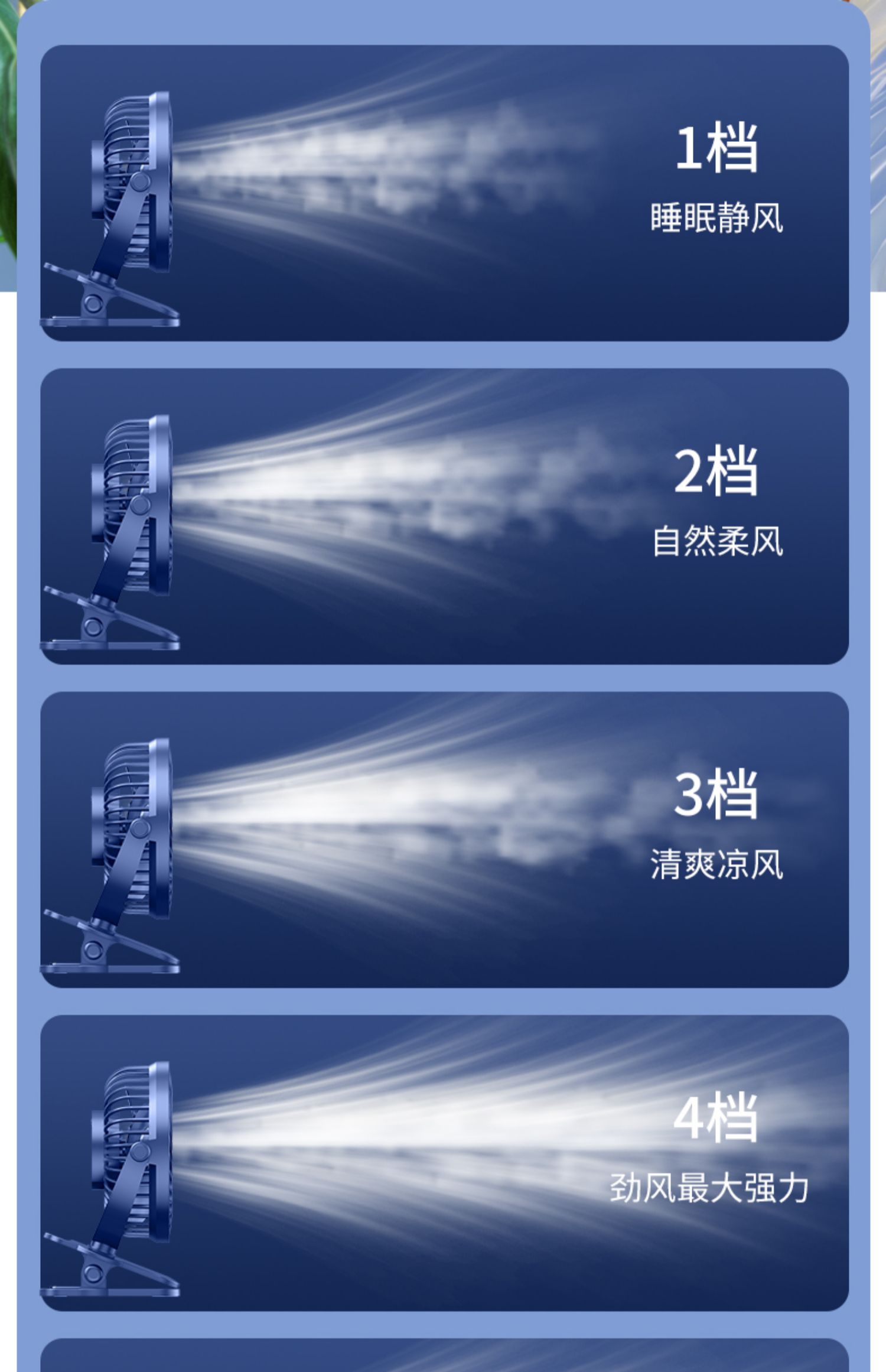 夹式风扇USB充电迷你随身便携小型学生宿舍强力超静音办公室桌面