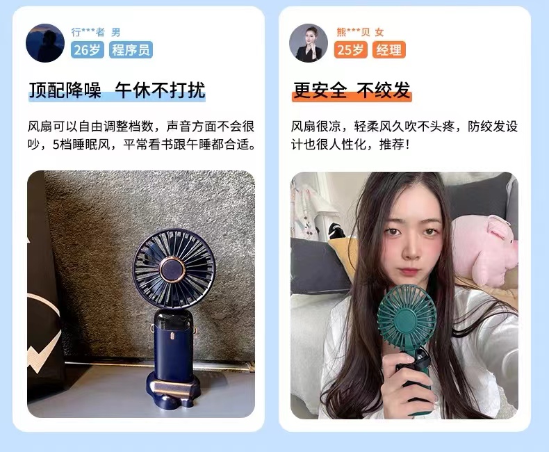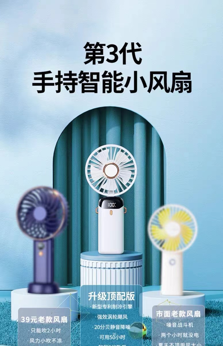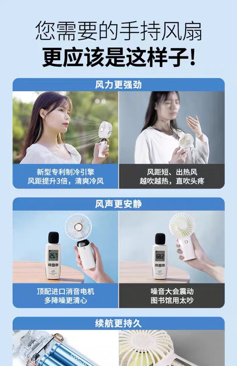 手持小风扇便携随身小型静音长续航大风力室内户外办公室桌电风扇