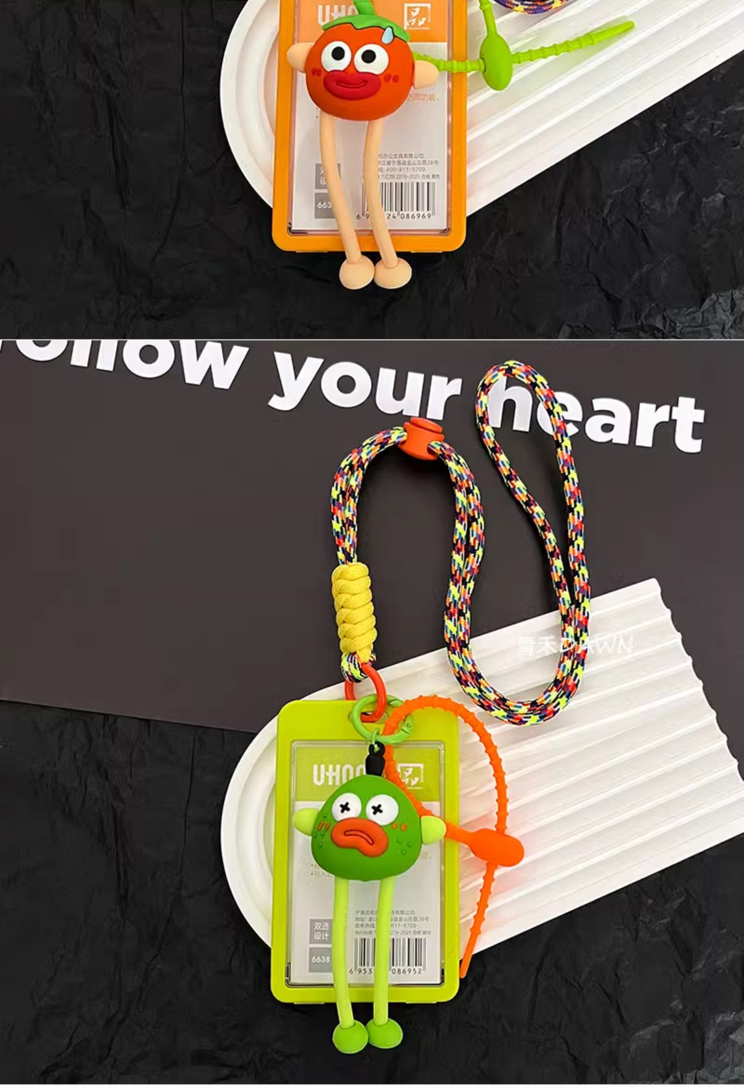 ins丑萌水果君卡套钥匙扣一体透明饭卡公交校园卡身份证门禁卡片