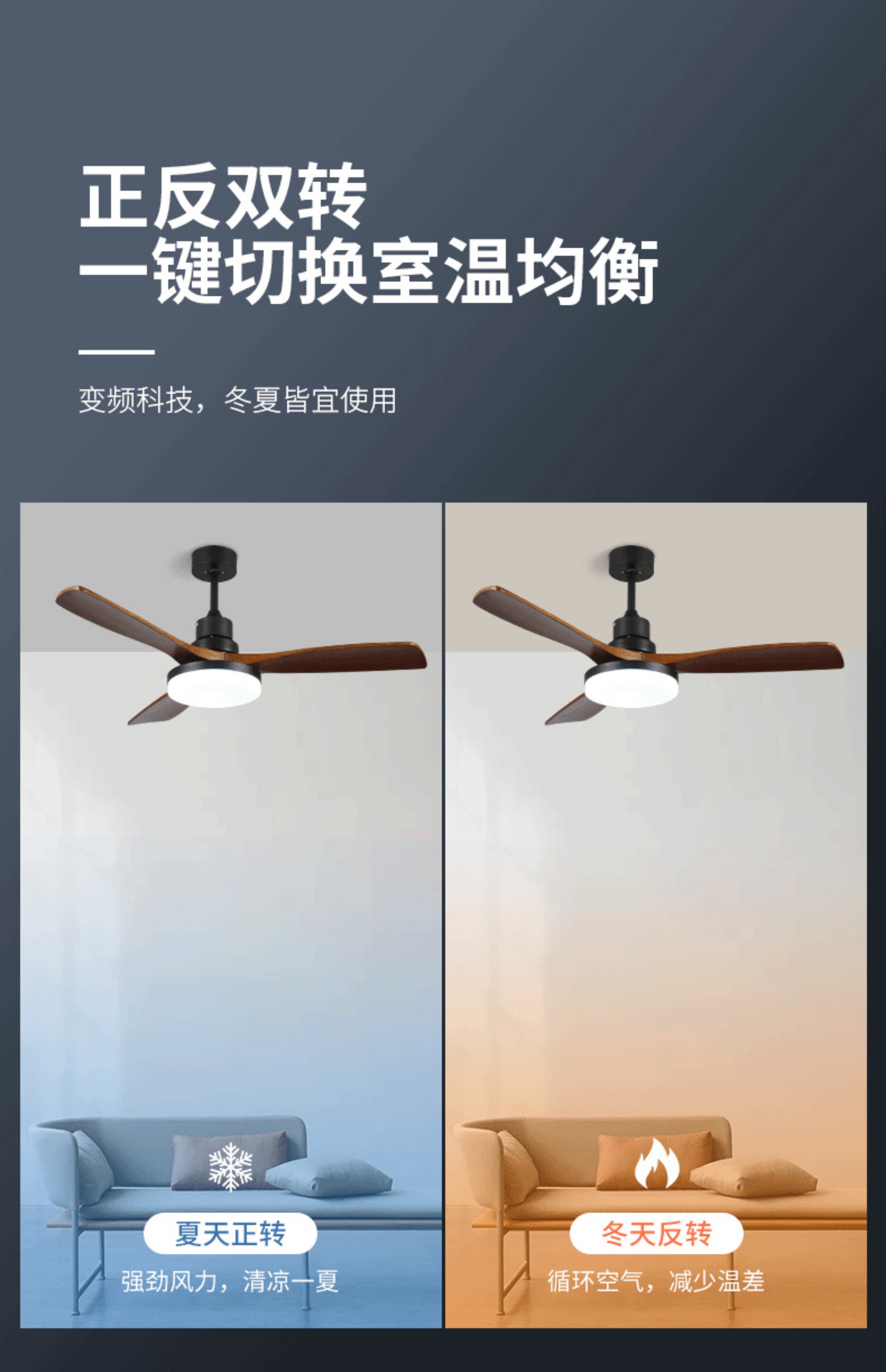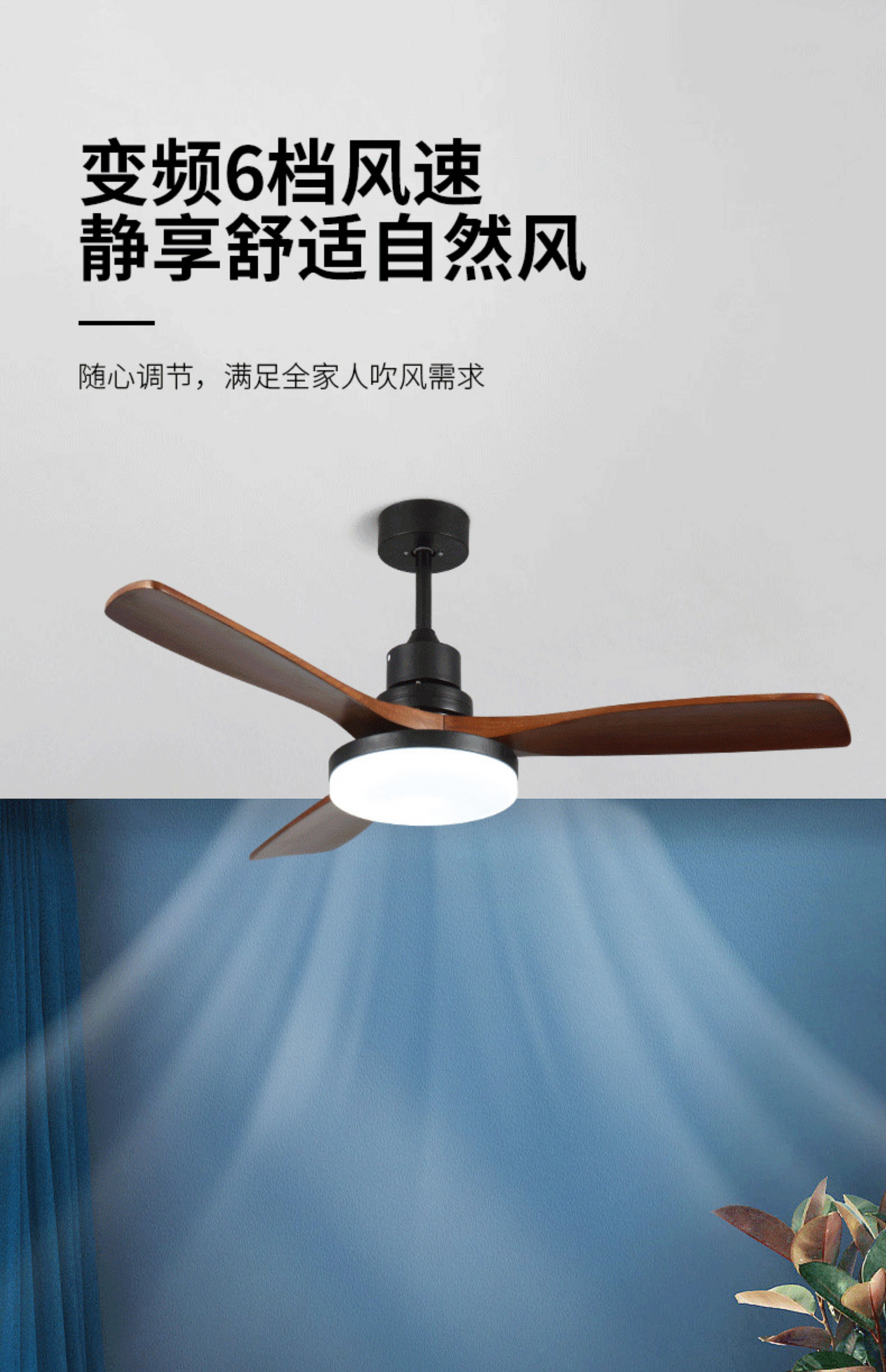 实木色复古餐厅风扇家用智能变频客厅电扇灯全光谱卧室一体吊扇灯