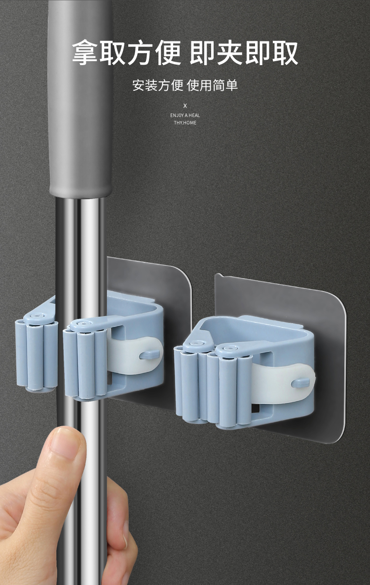 拖把挂钩拖把架免打孔拖把夹卫生间浴室挂架厨房强力壁挂收纳置物