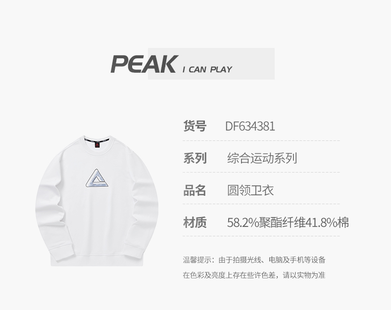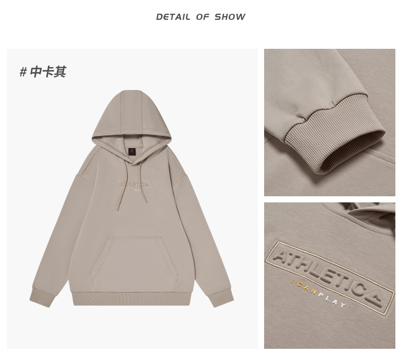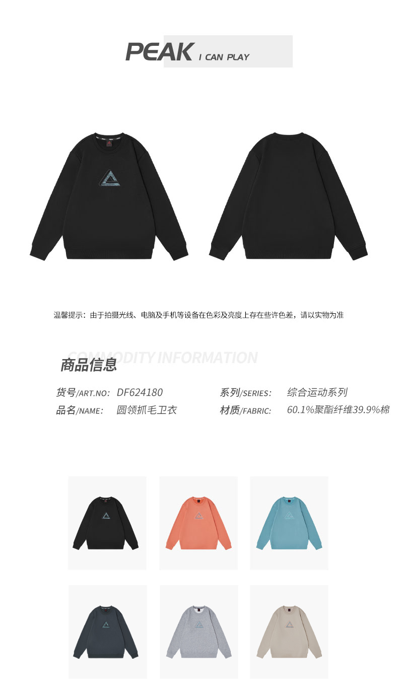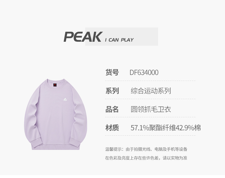 匹克圆领运动卫衣春季加绒长袖连帽跑步上衣防风保暖套头衫男