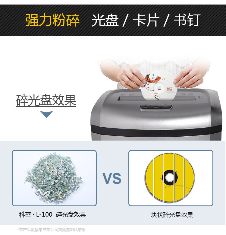 科密L-100办公家用碎纸机4级保密单次17张持续150分钟28L