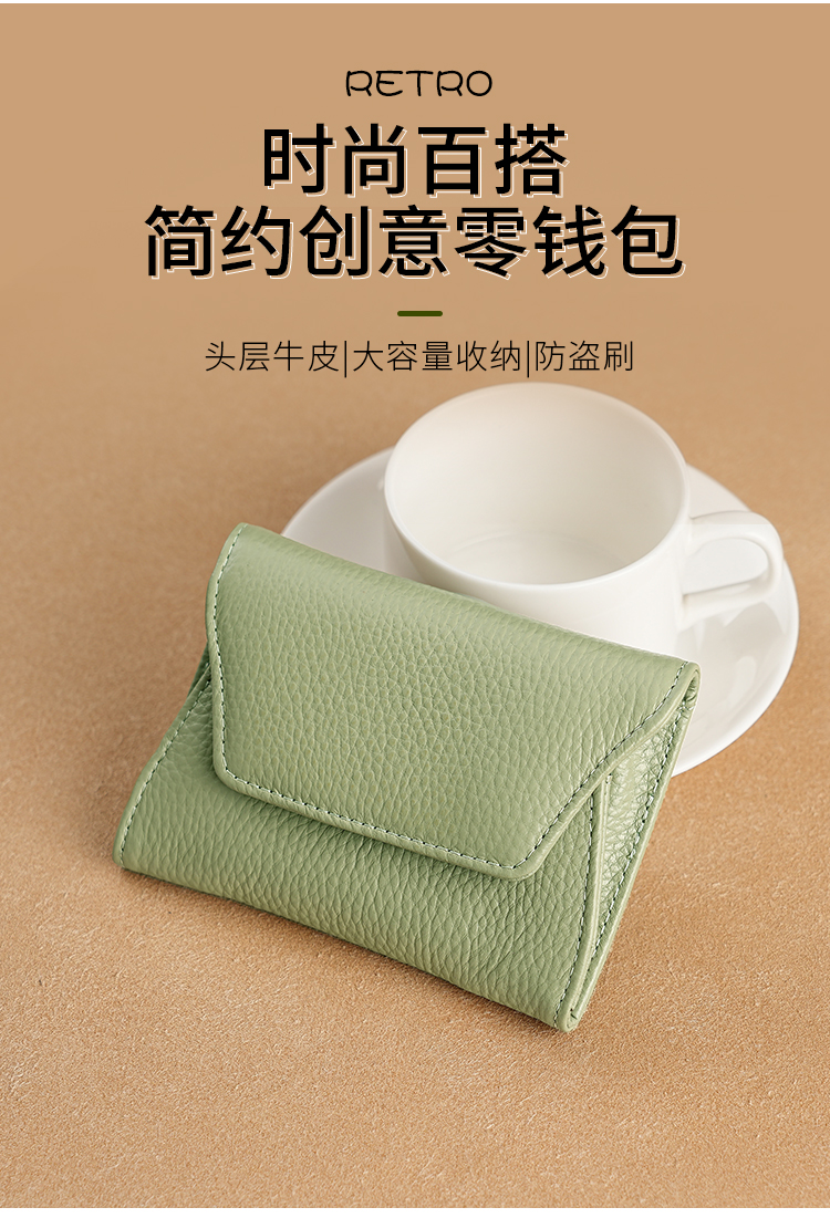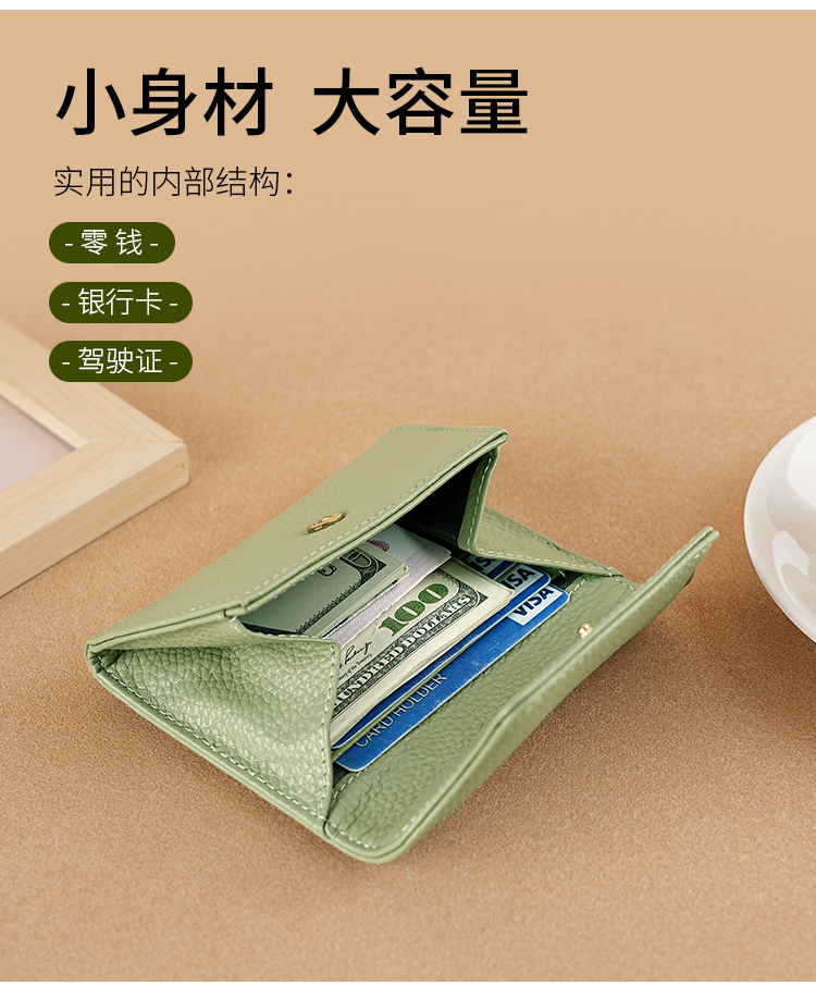 真皮小钱包女高级感新款卡包一体多功能小众证件钱卡夹迷你零钱包