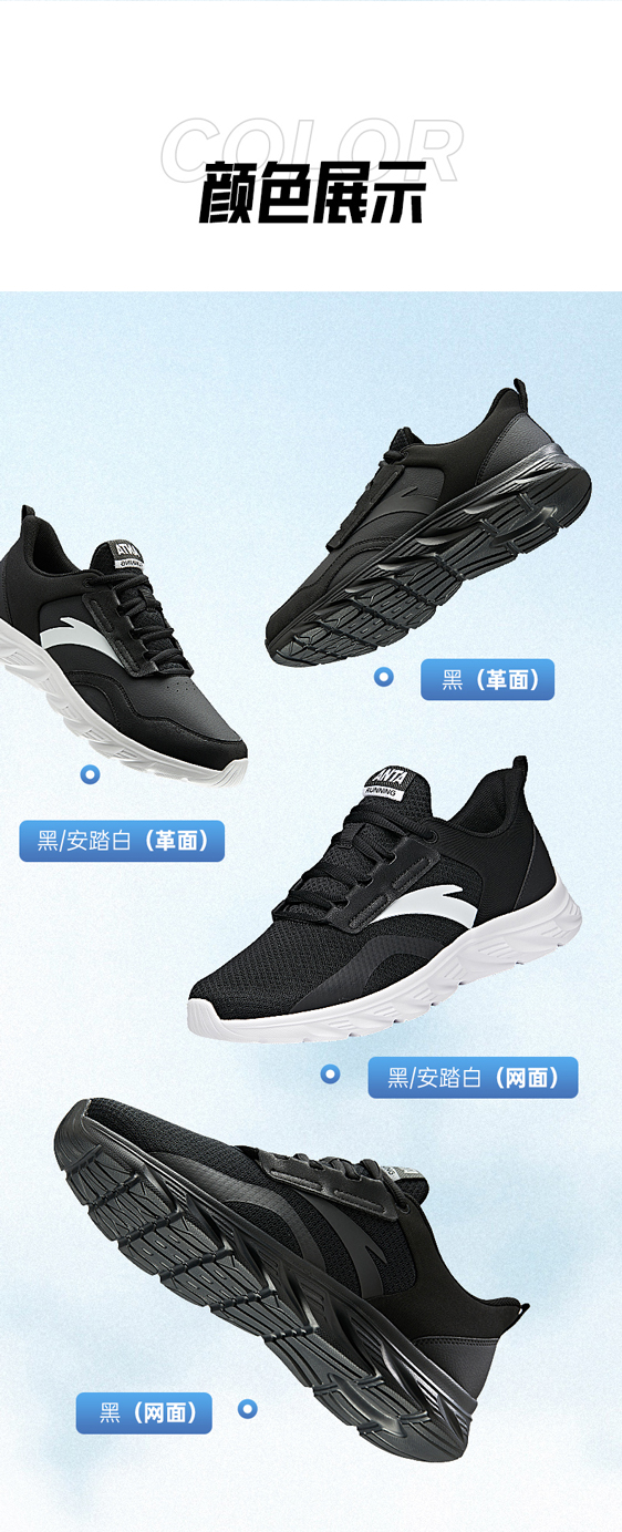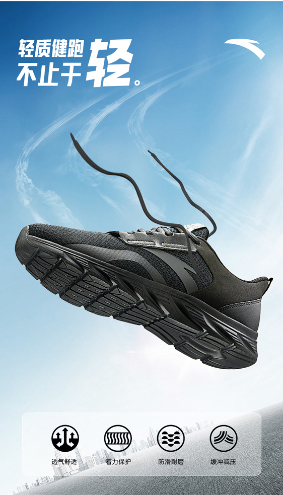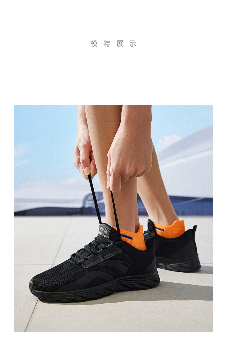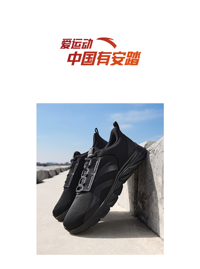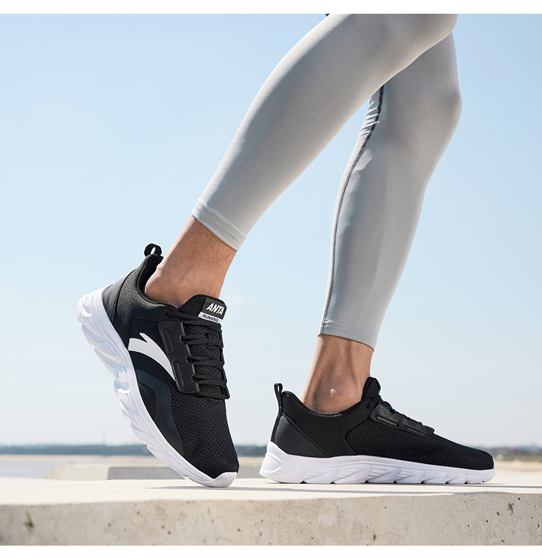 安踏男鞋网面透气跑步鞋黑色鞋子夏季减震耐磨跑鞋轻便通勤运动鞋