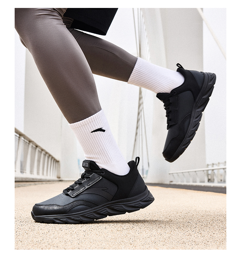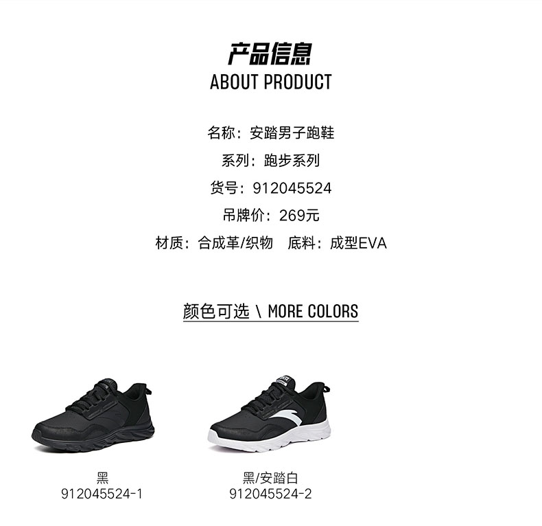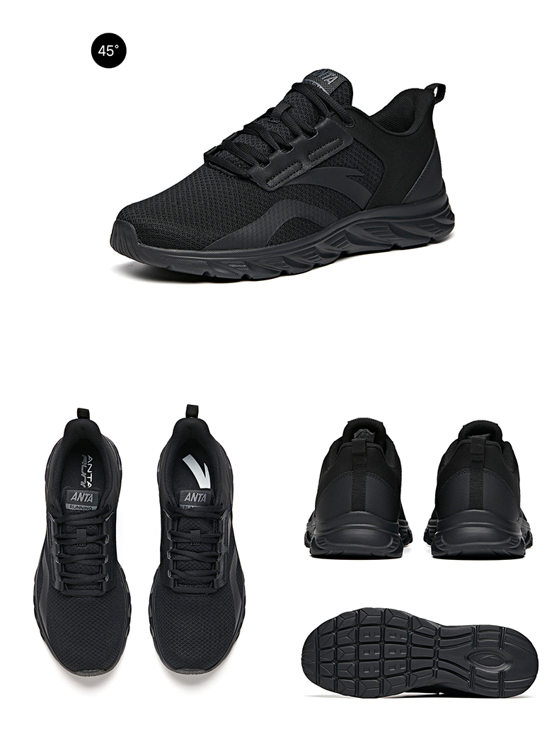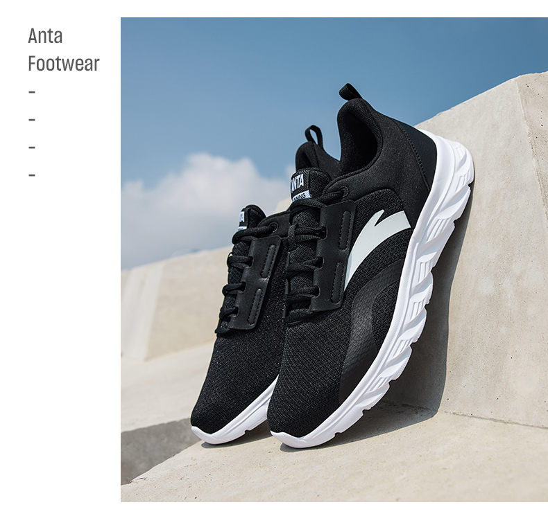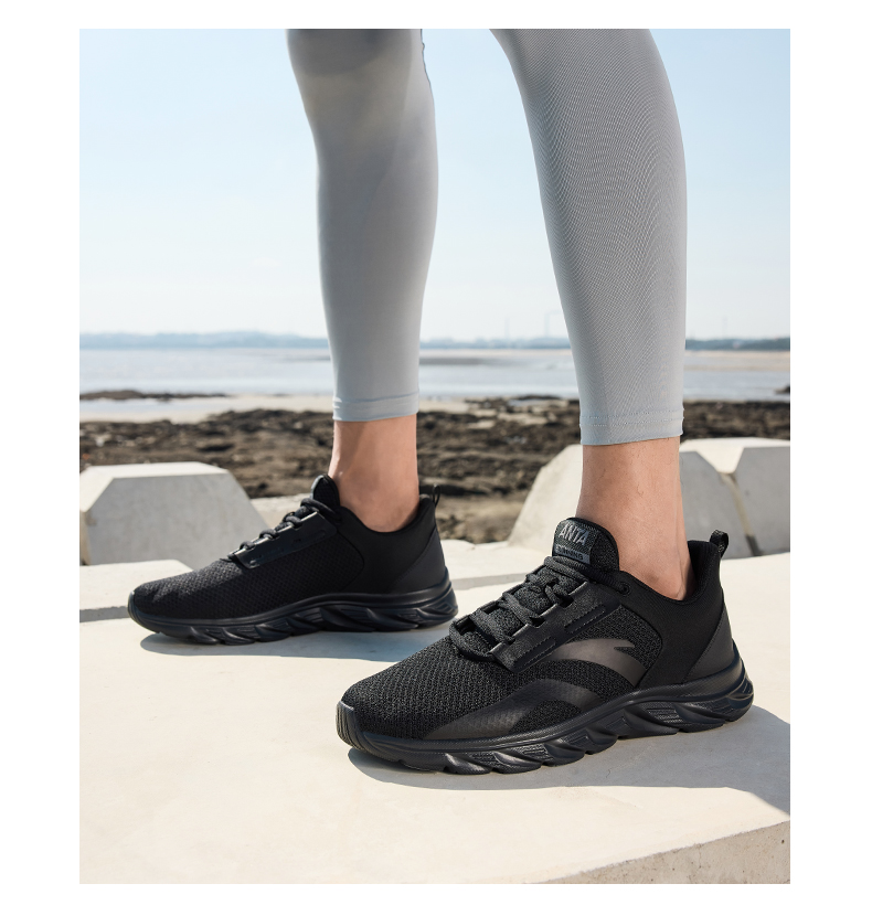 安踏男鞋网面透气跑步鞋黑色鞋子夏季减震耐磨跑鞋轻便通勤运动鞋