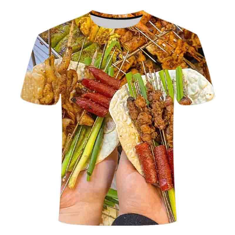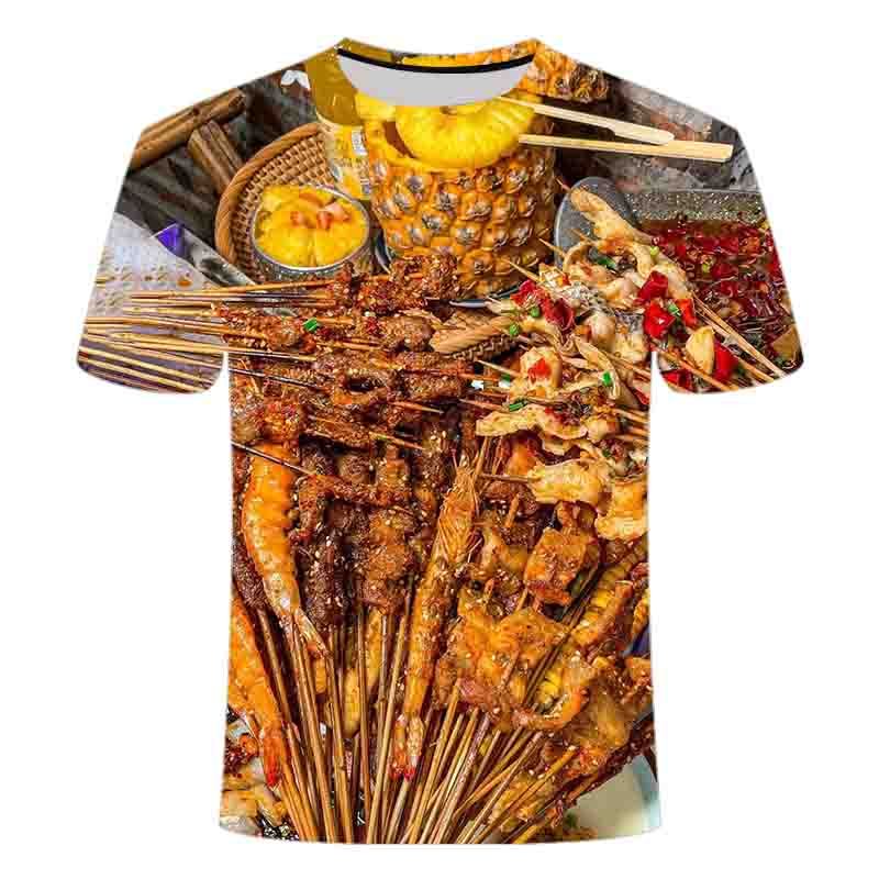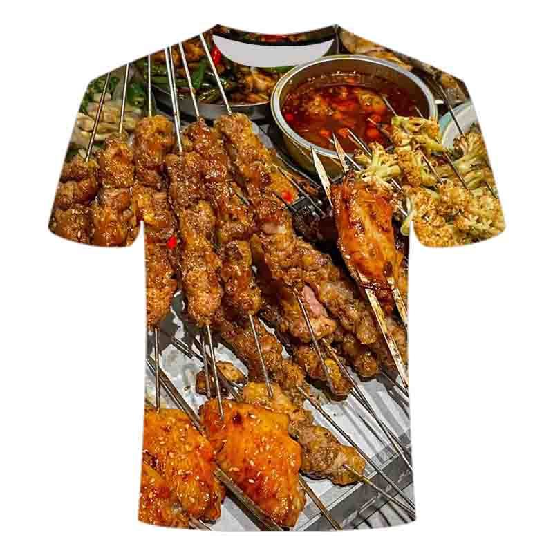 2025夏季爆款烧烤派对3D短袖男女同款 夜宵美食碳水快乐印花潮T恤
