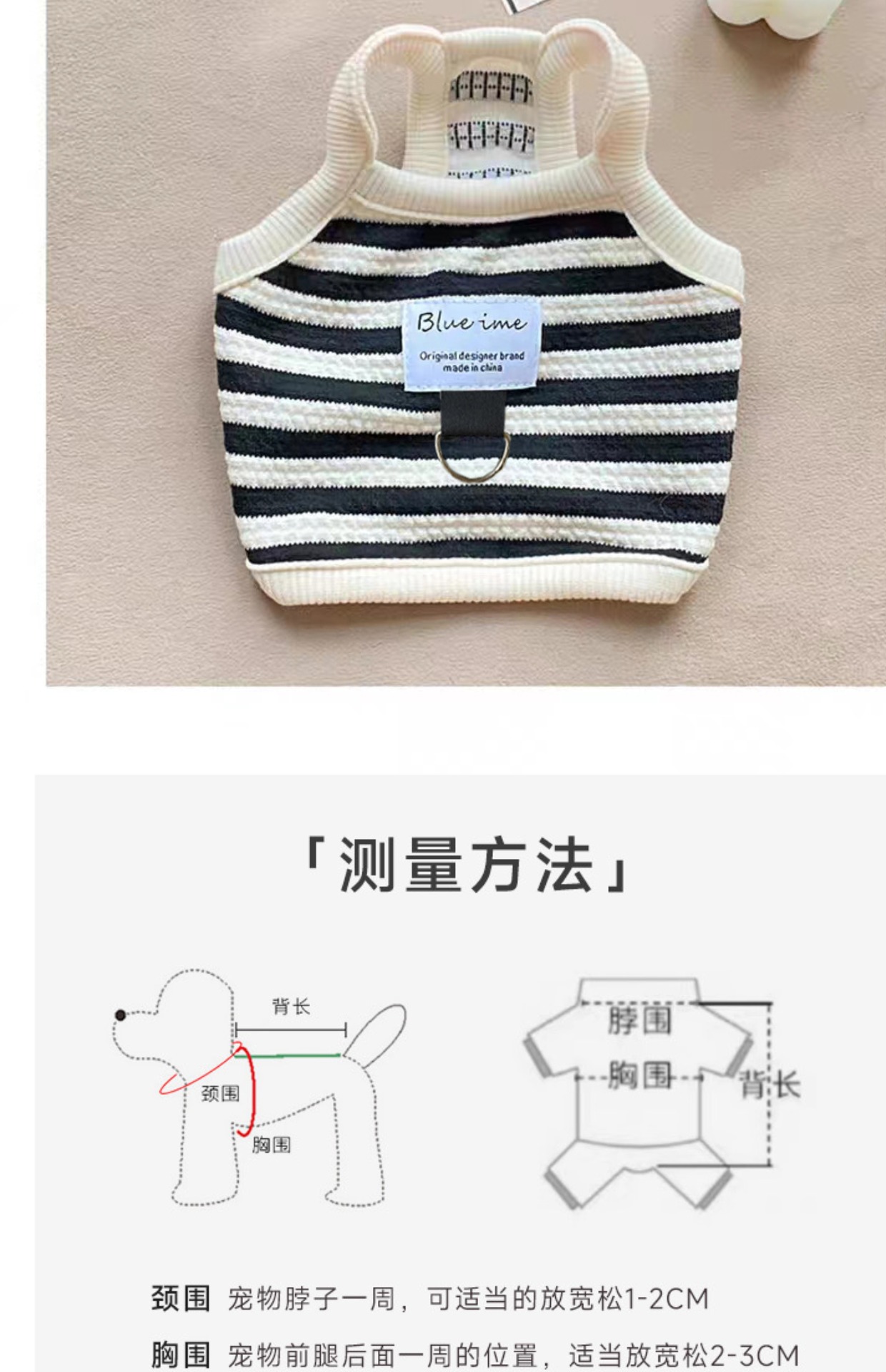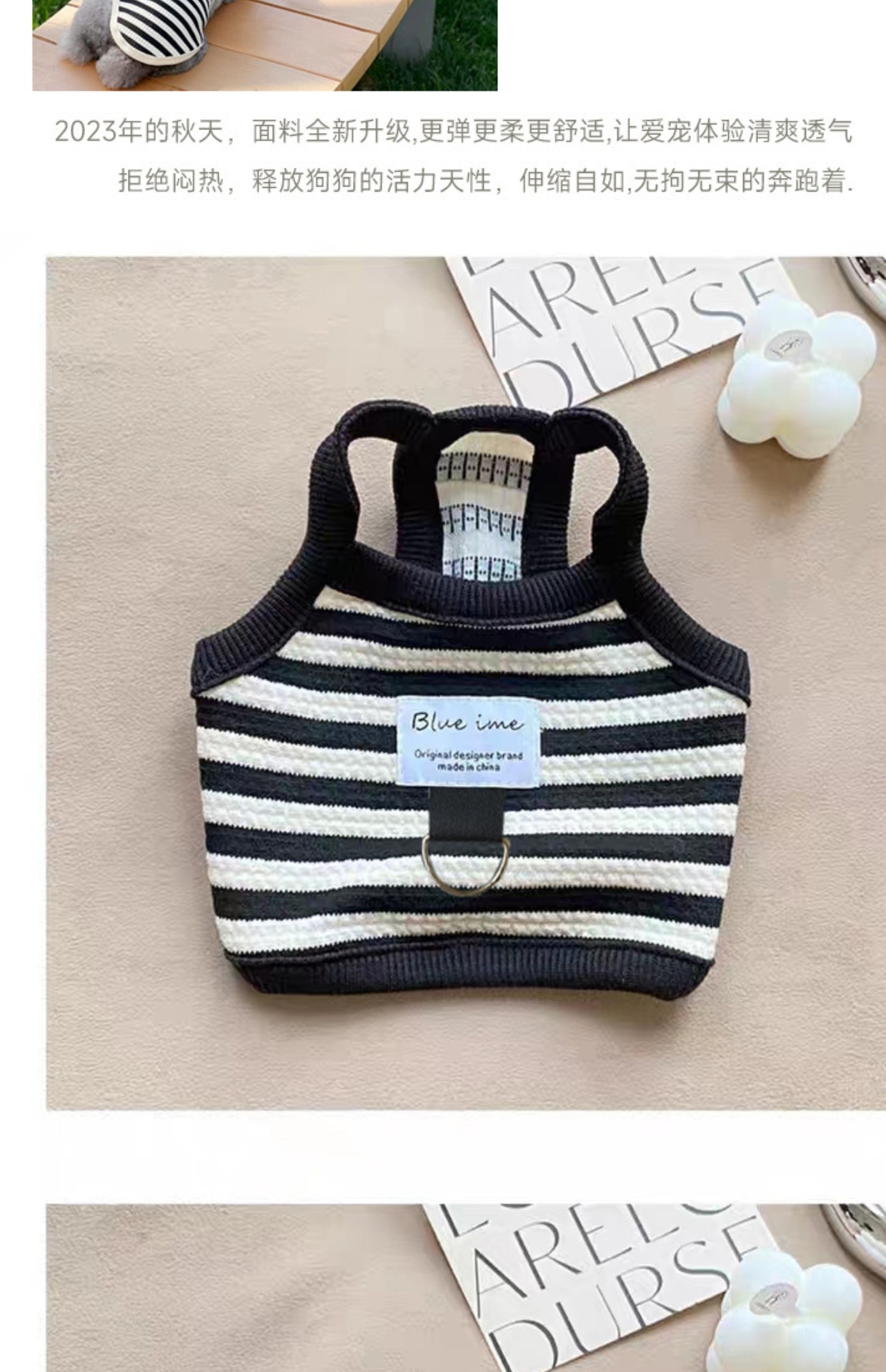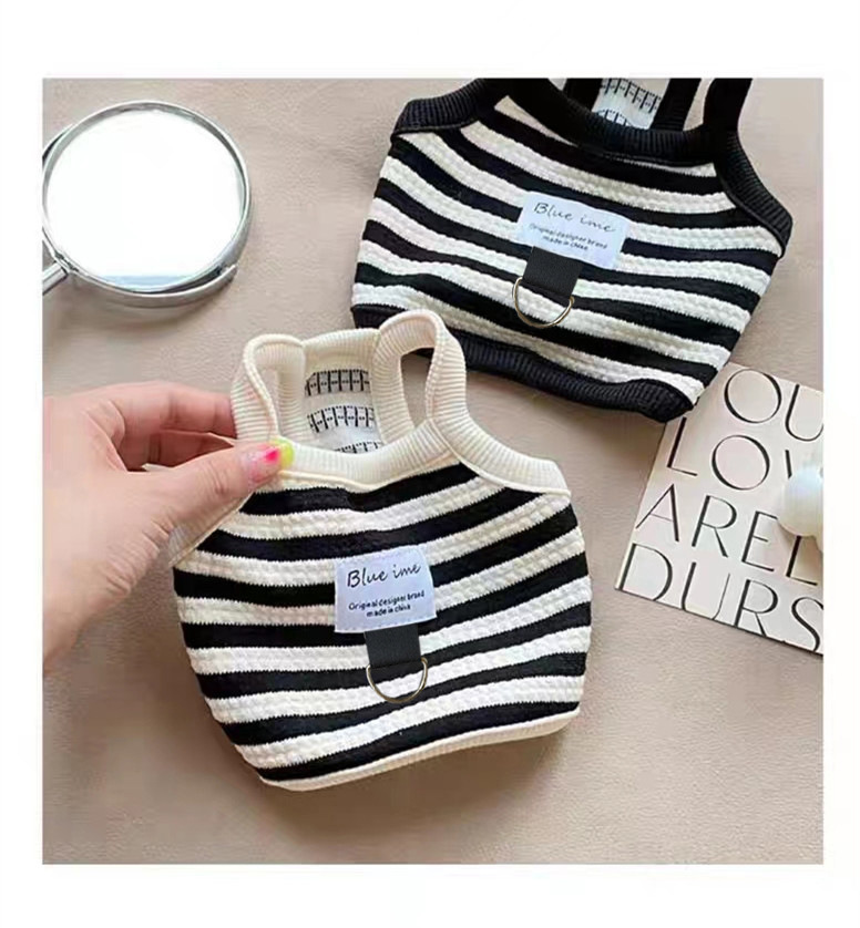春夏新款法式宠物狗狗猫咪可牵引衣服短款泰迪比熊条纹背心防掉毛