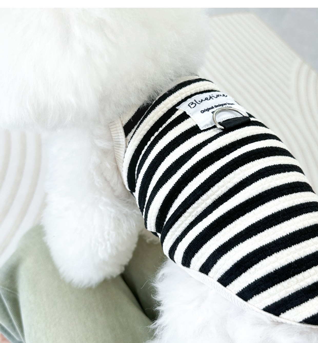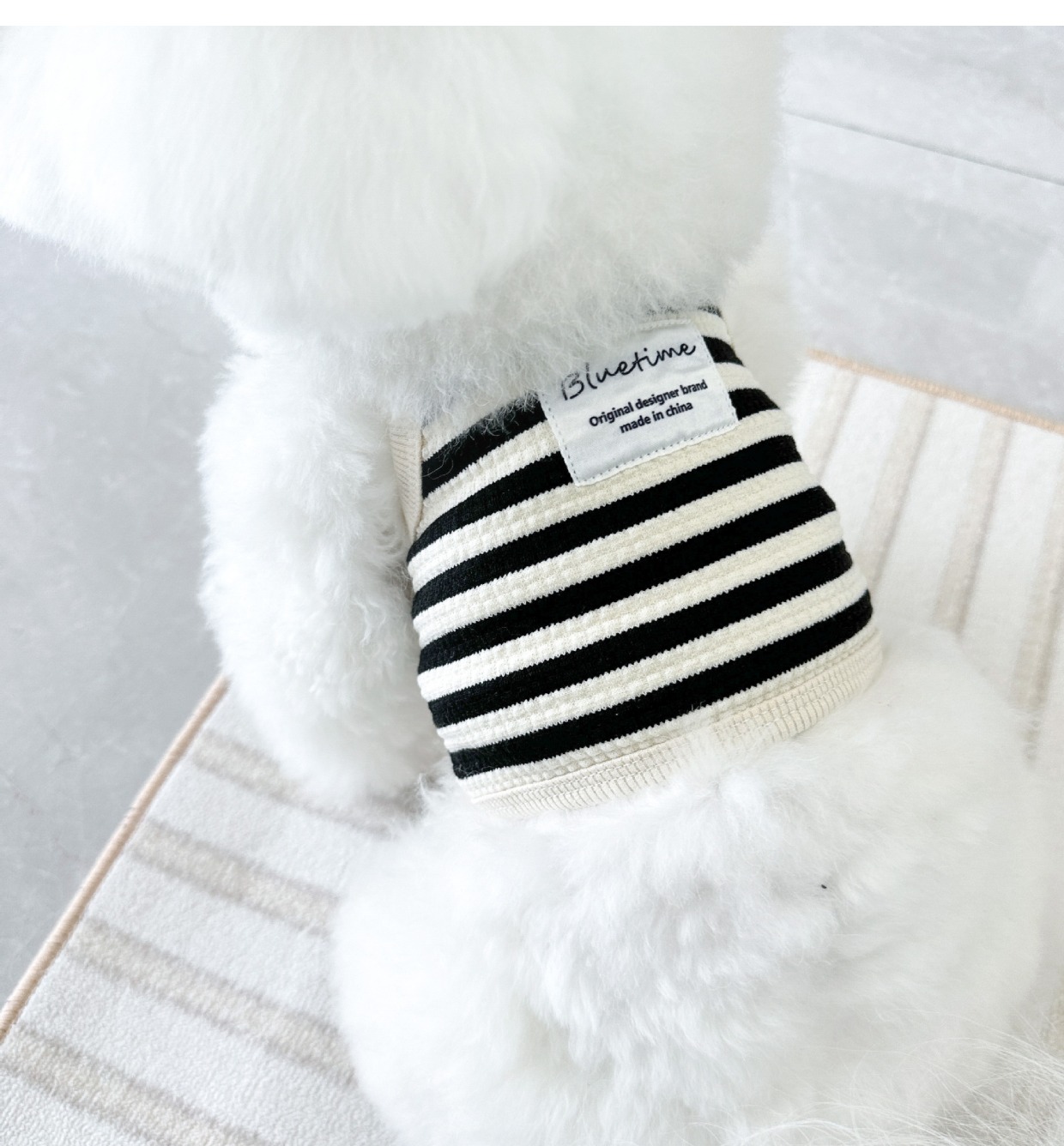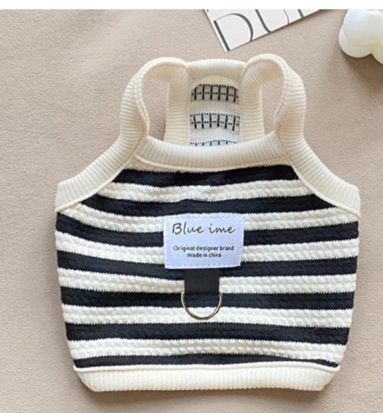 春夏新款法式宠物狗狗猫咪可牵引衣服短款泰迪比熊条纹背心防掉毛