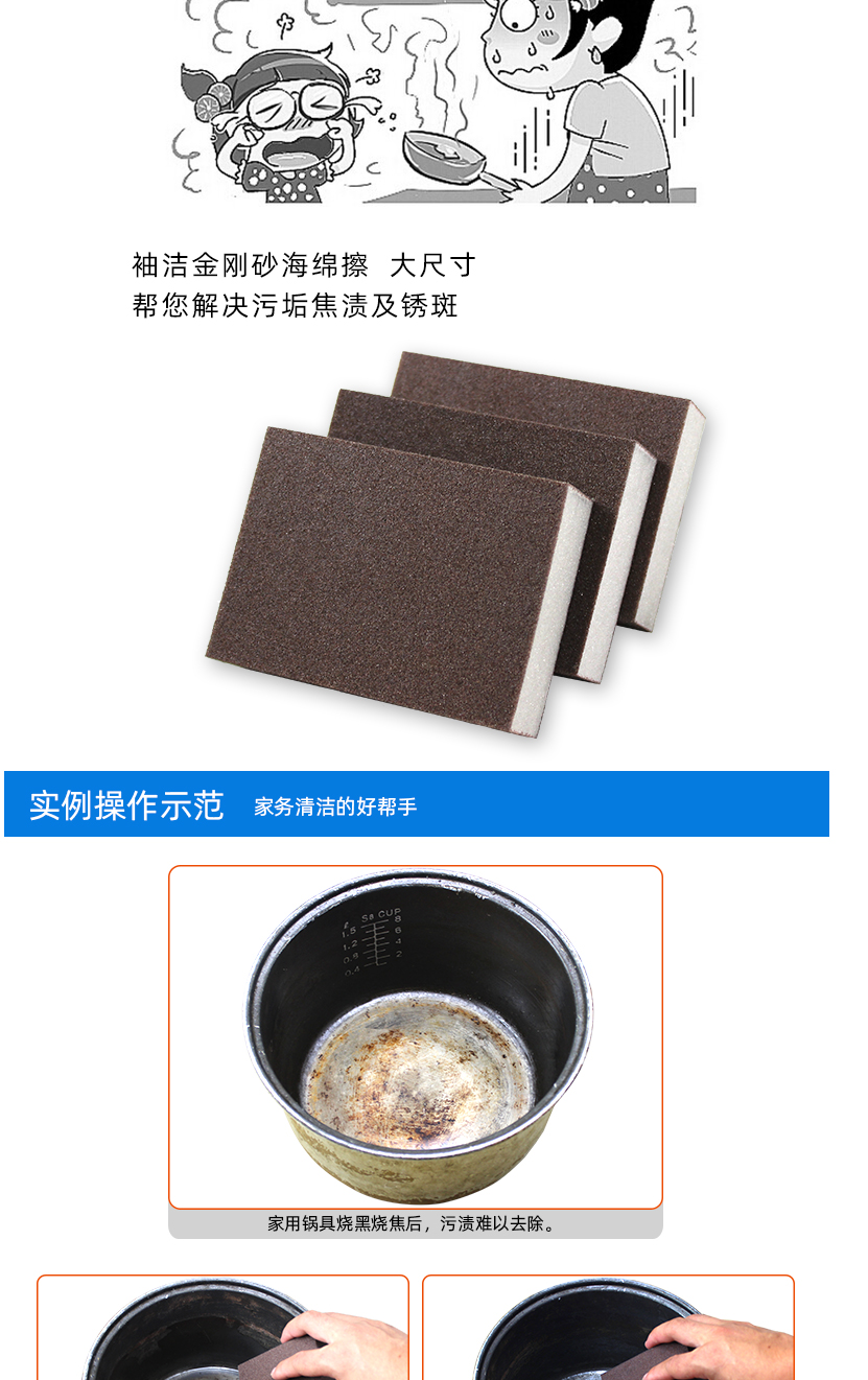 金刚砂海绵擦魔力擦厨房清洁洗锅洗碗刷锅底黑垢擦锅擦鞋刷鞋神器