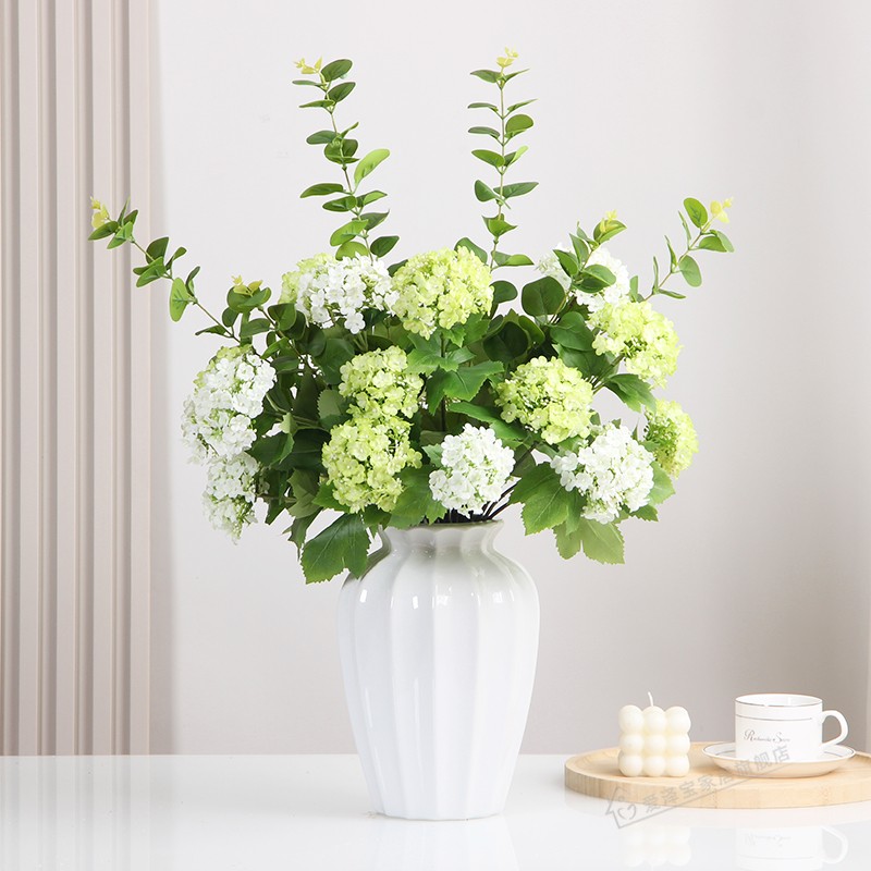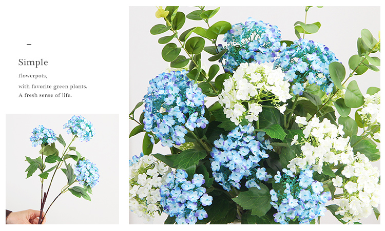 高端三头木绣球仿真假花玄关电视柜装饰绢花家居软装摆放花落地花