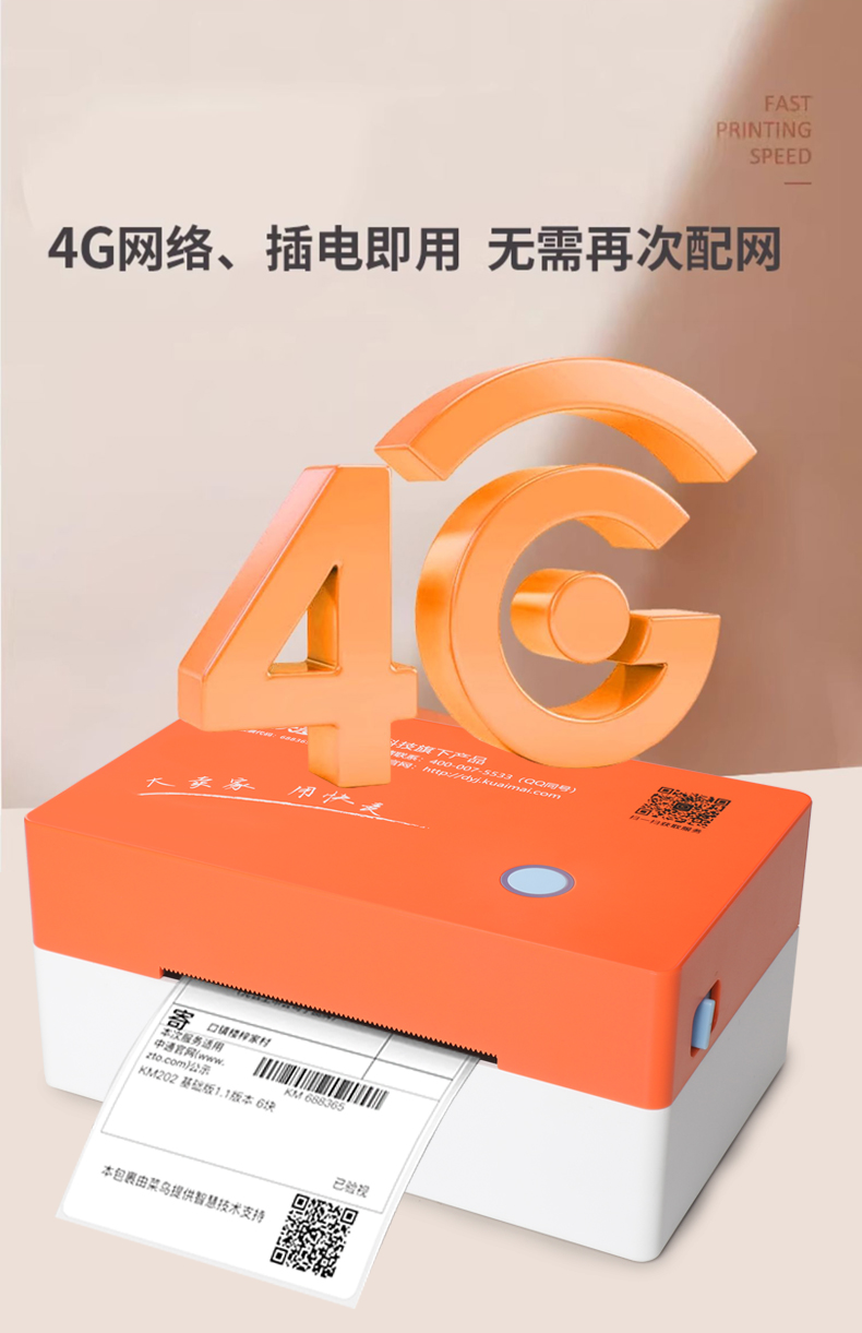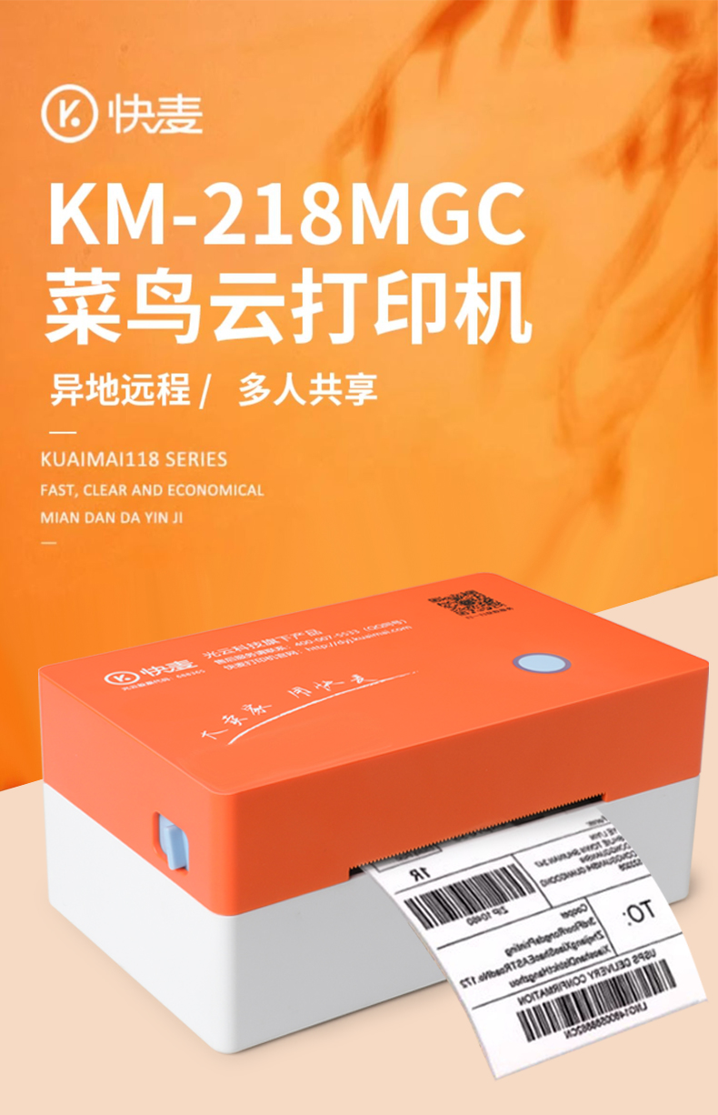 快麦218MGC菜鸟云拼系打印机一联单快递打单机4G打印机电商专用电子面单智能通用高速热敏纸异地远程云打印
