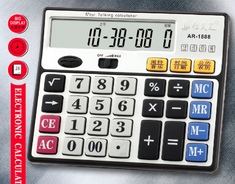 包邮佳灵通语音计算器1888 学生财务大按键屏幕计算机 闹铃/农历
