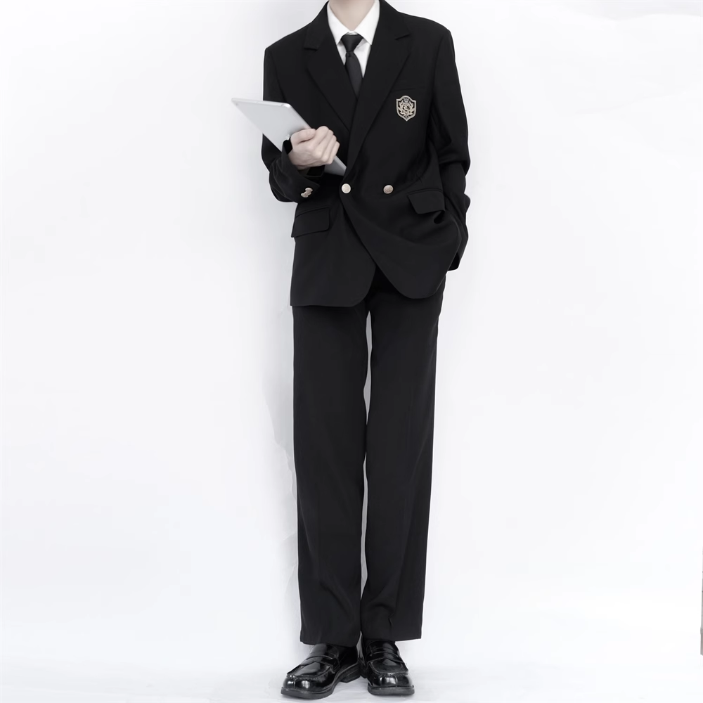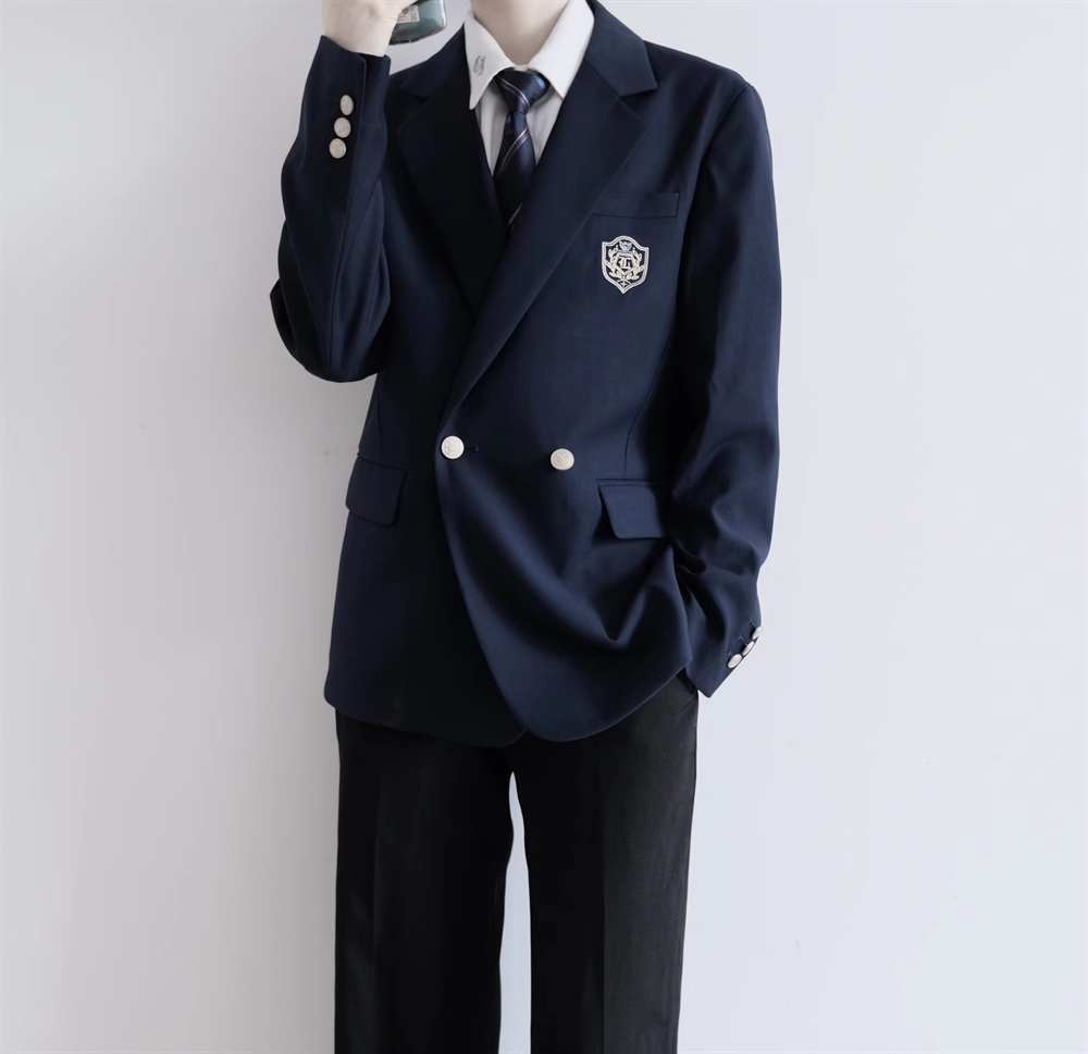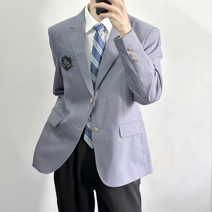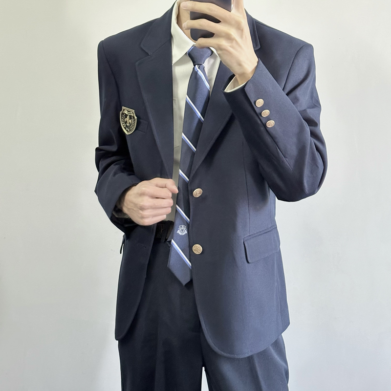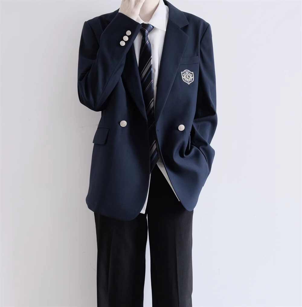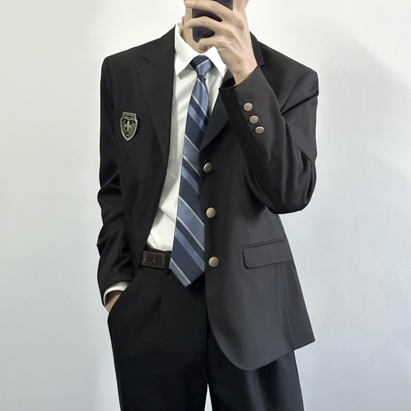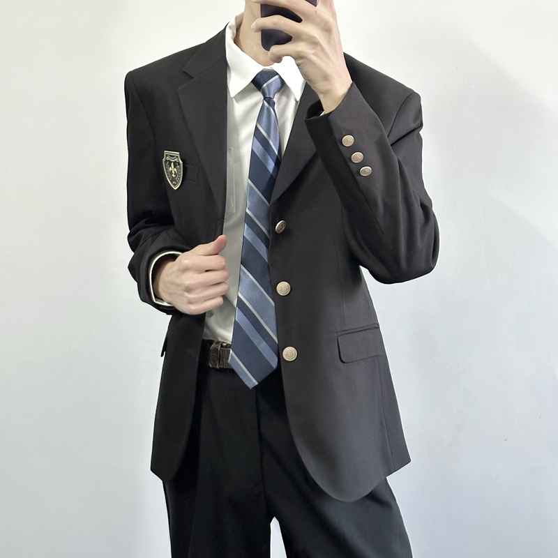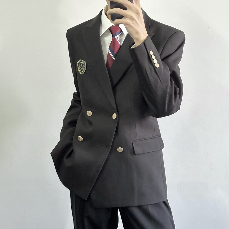 dk制服校供感上衣西装黑色蓝色男休闲外套双排扣西服套装