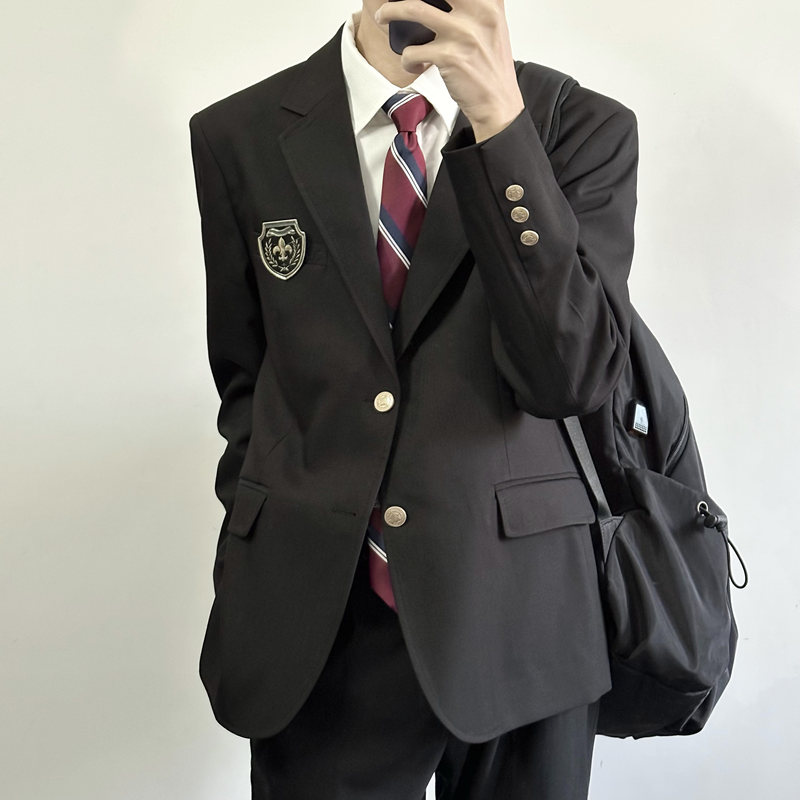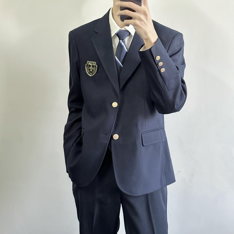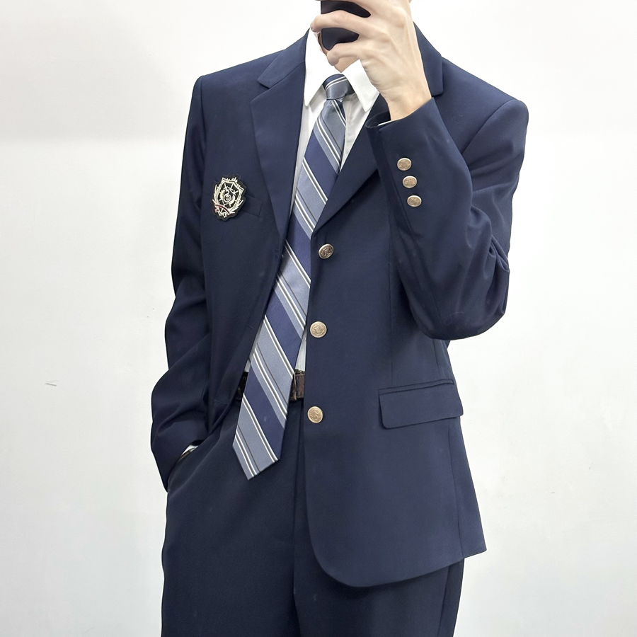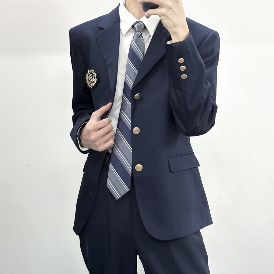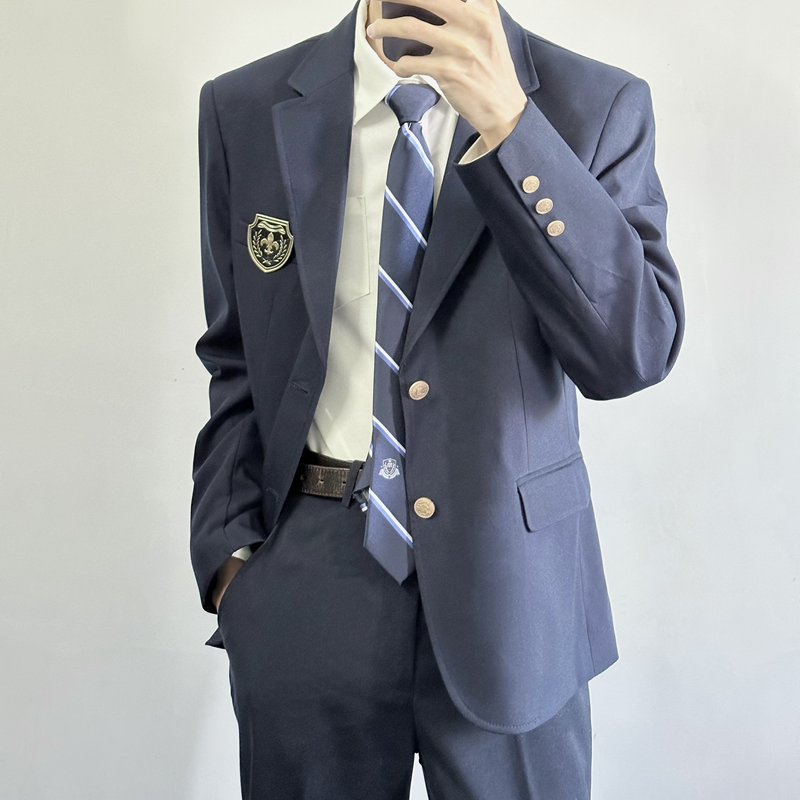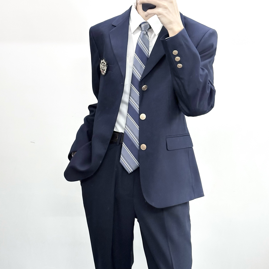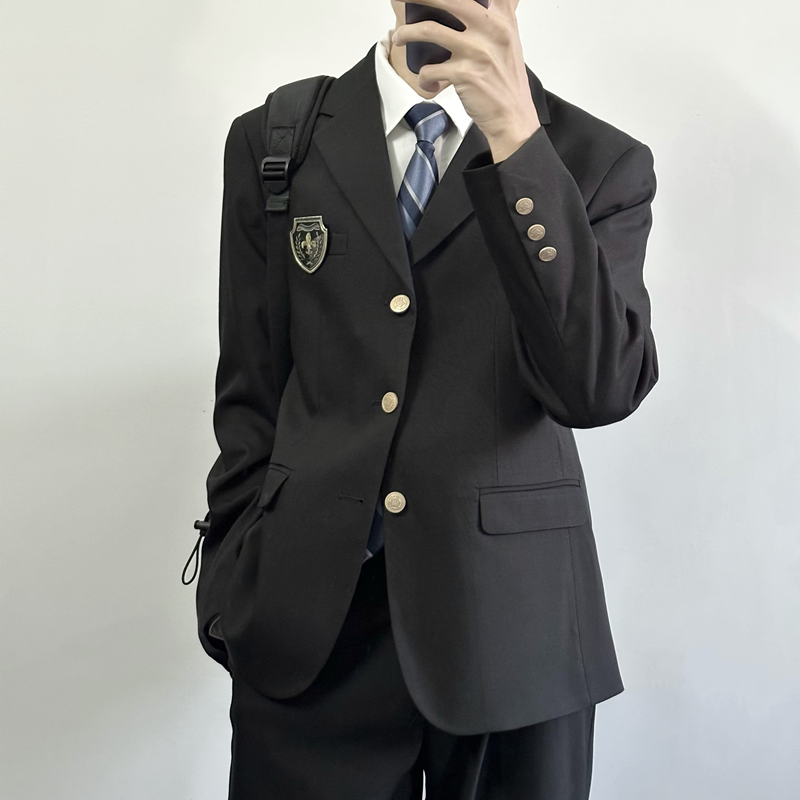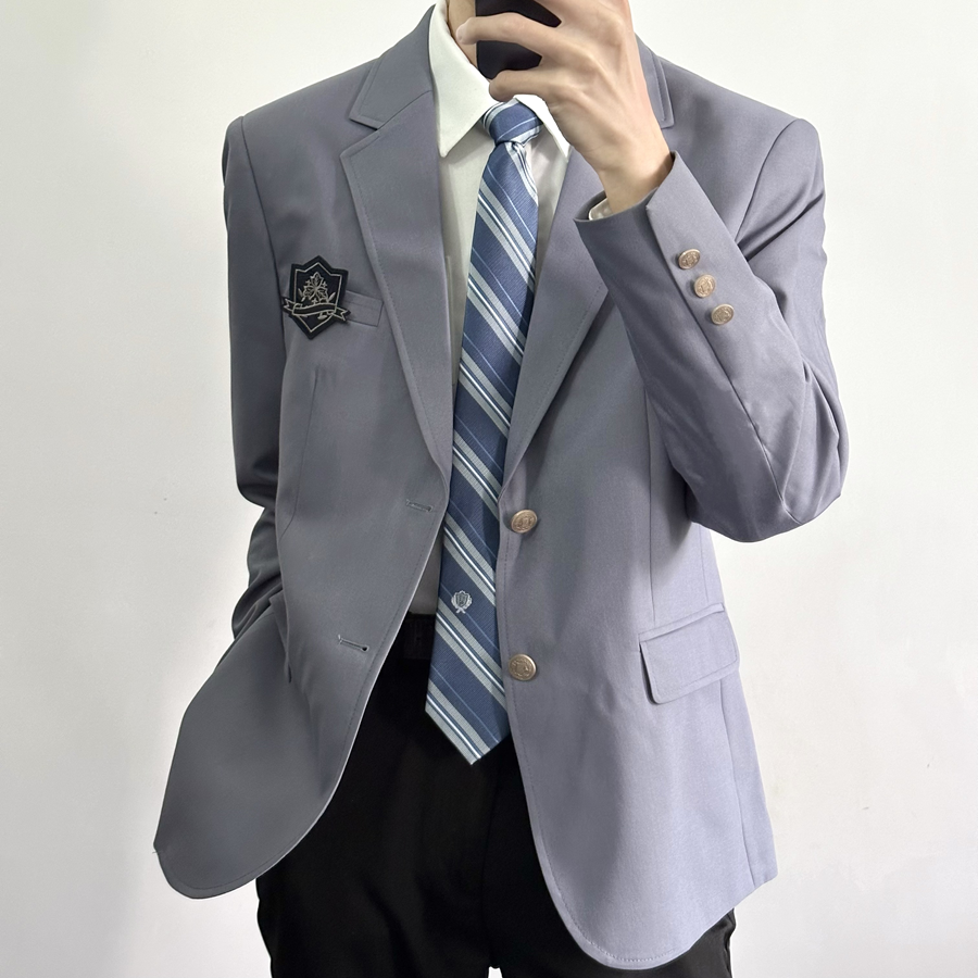dk制服校供感上衣西装黑色蓝色男休闲外套双排扣西服套装