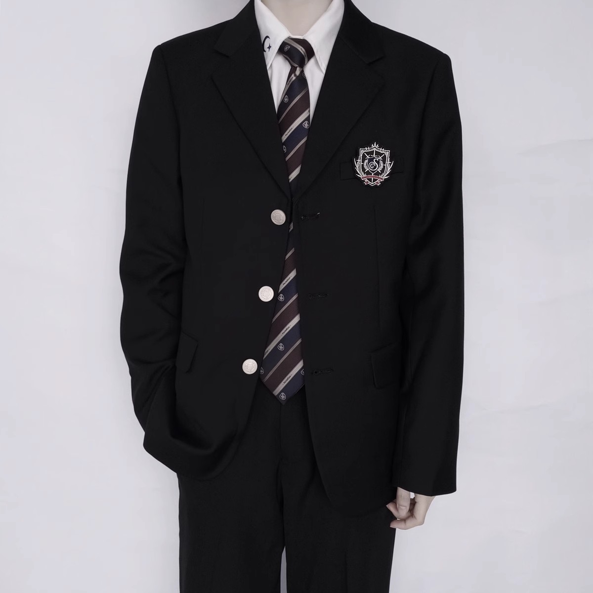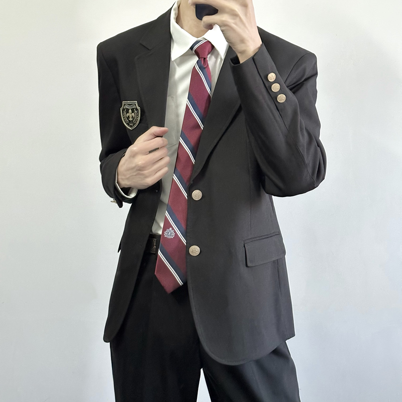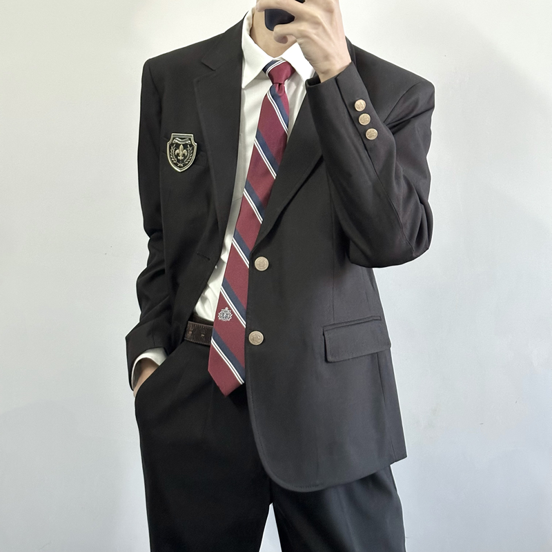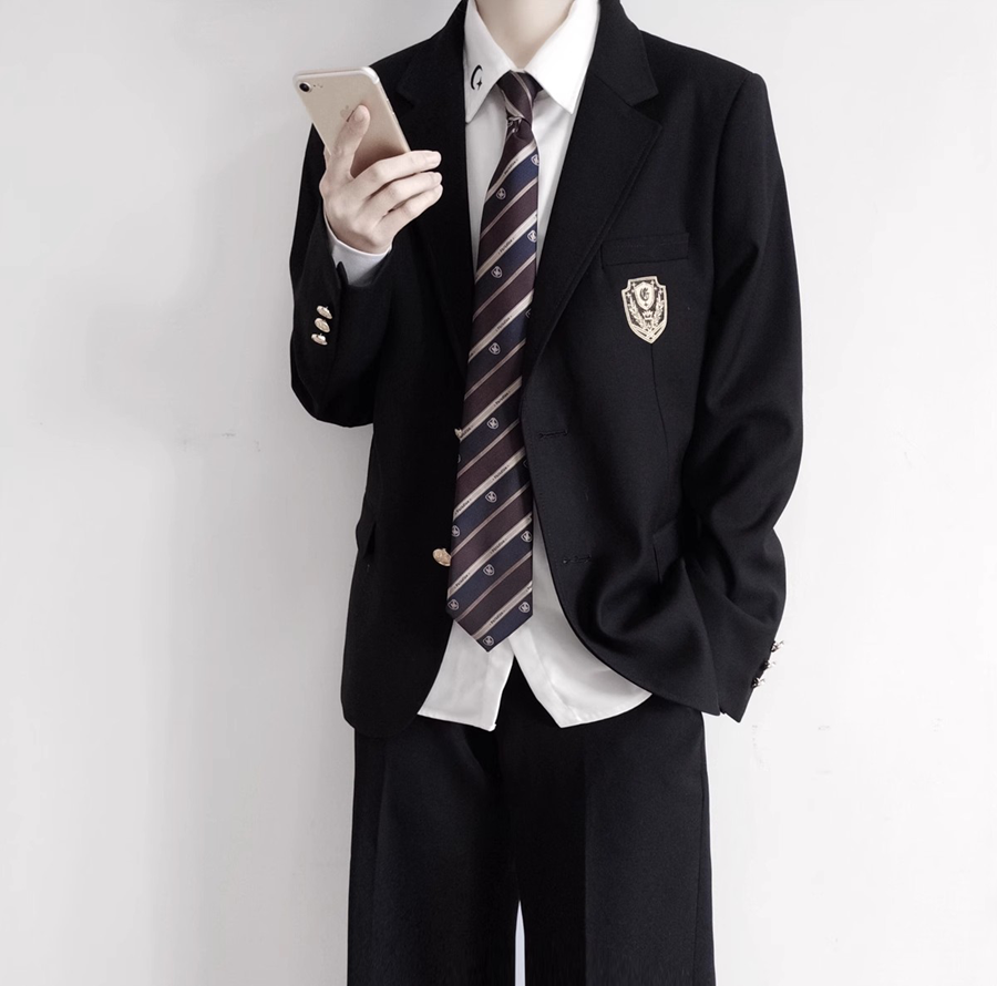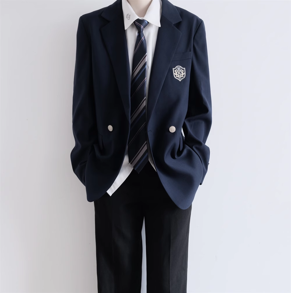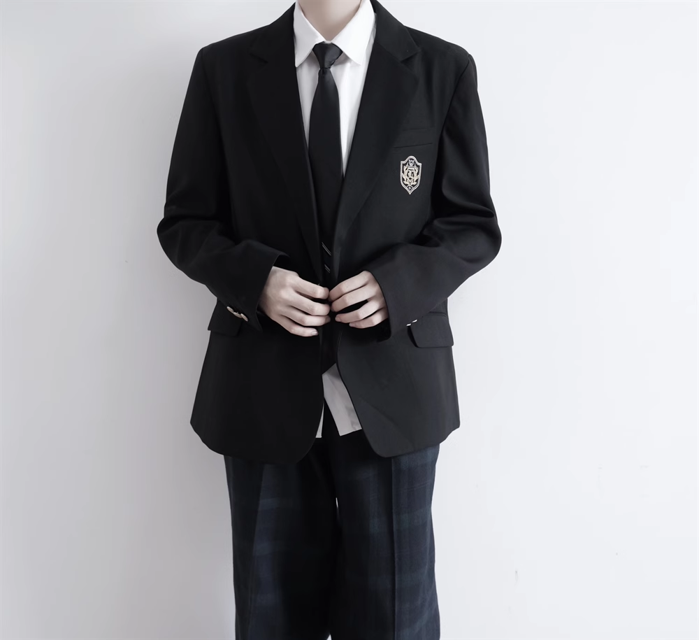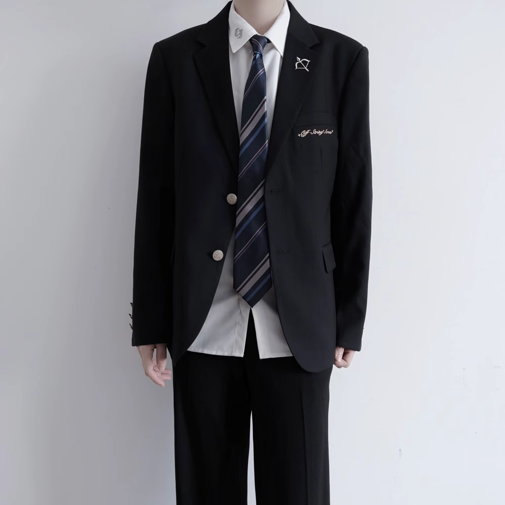 dk制服校供感上衣西装黑色蓝色男休闲外套双排扣西服套装