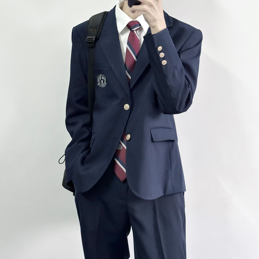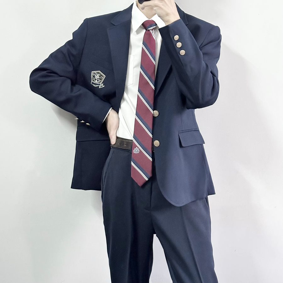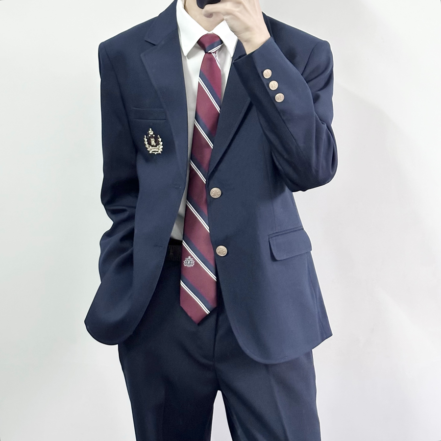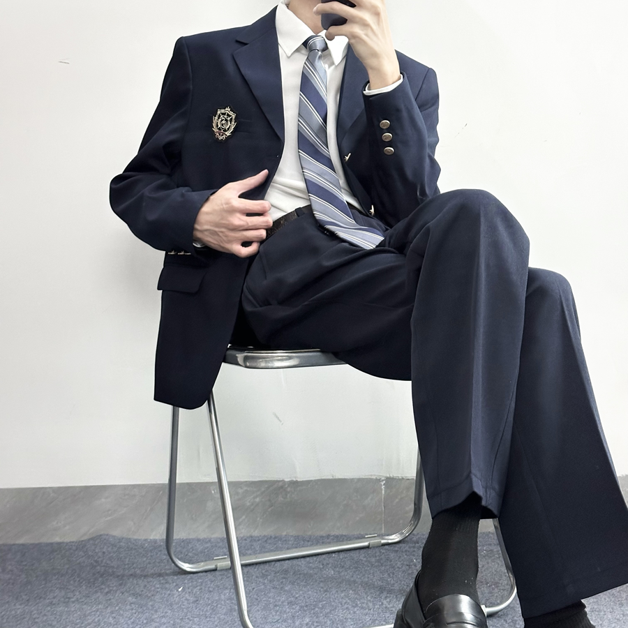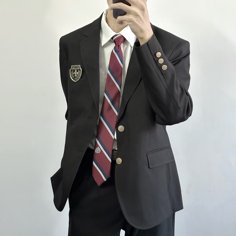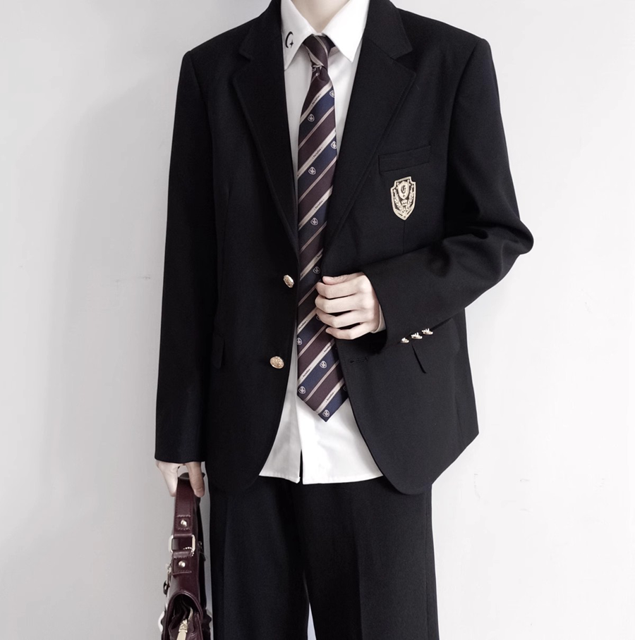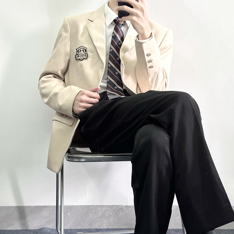 dk制服校供感上衣西装黑色蓝色男休闲外套双排扣西服套装