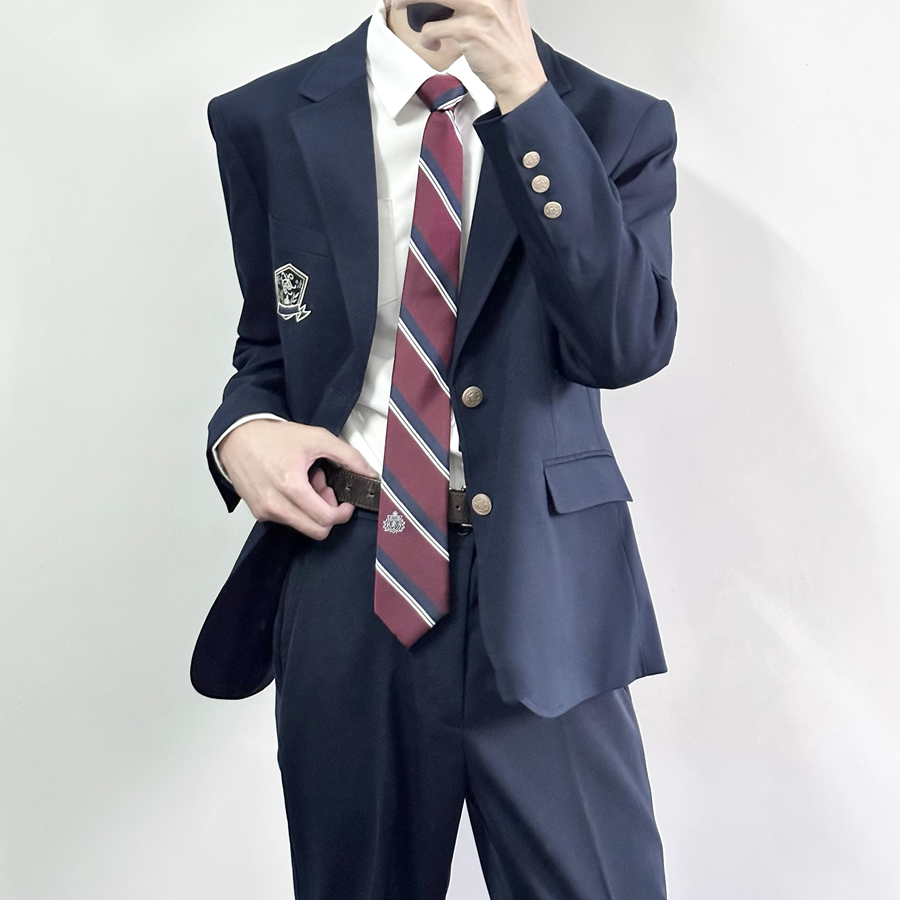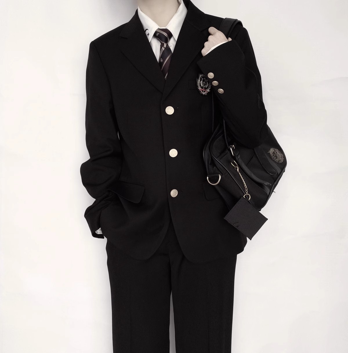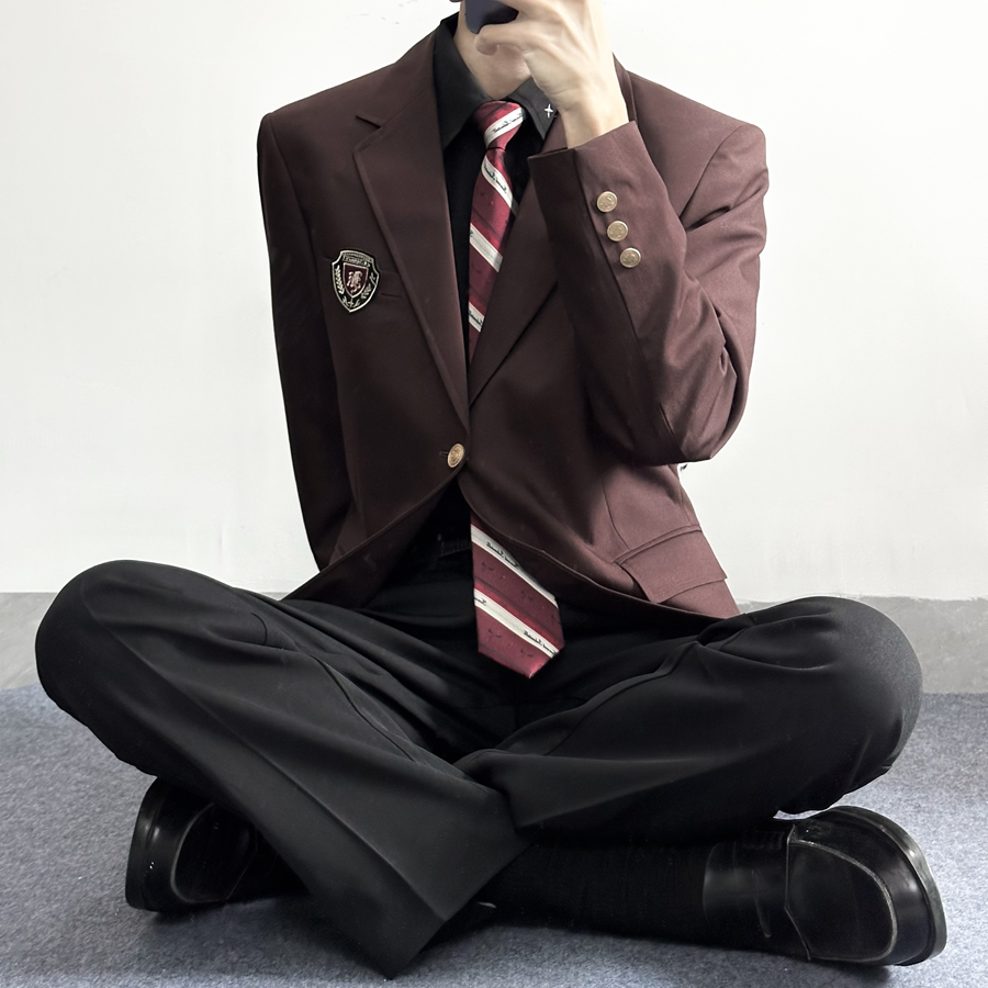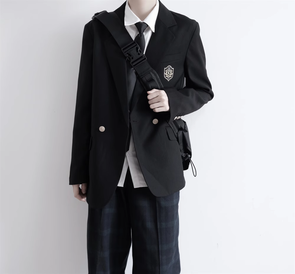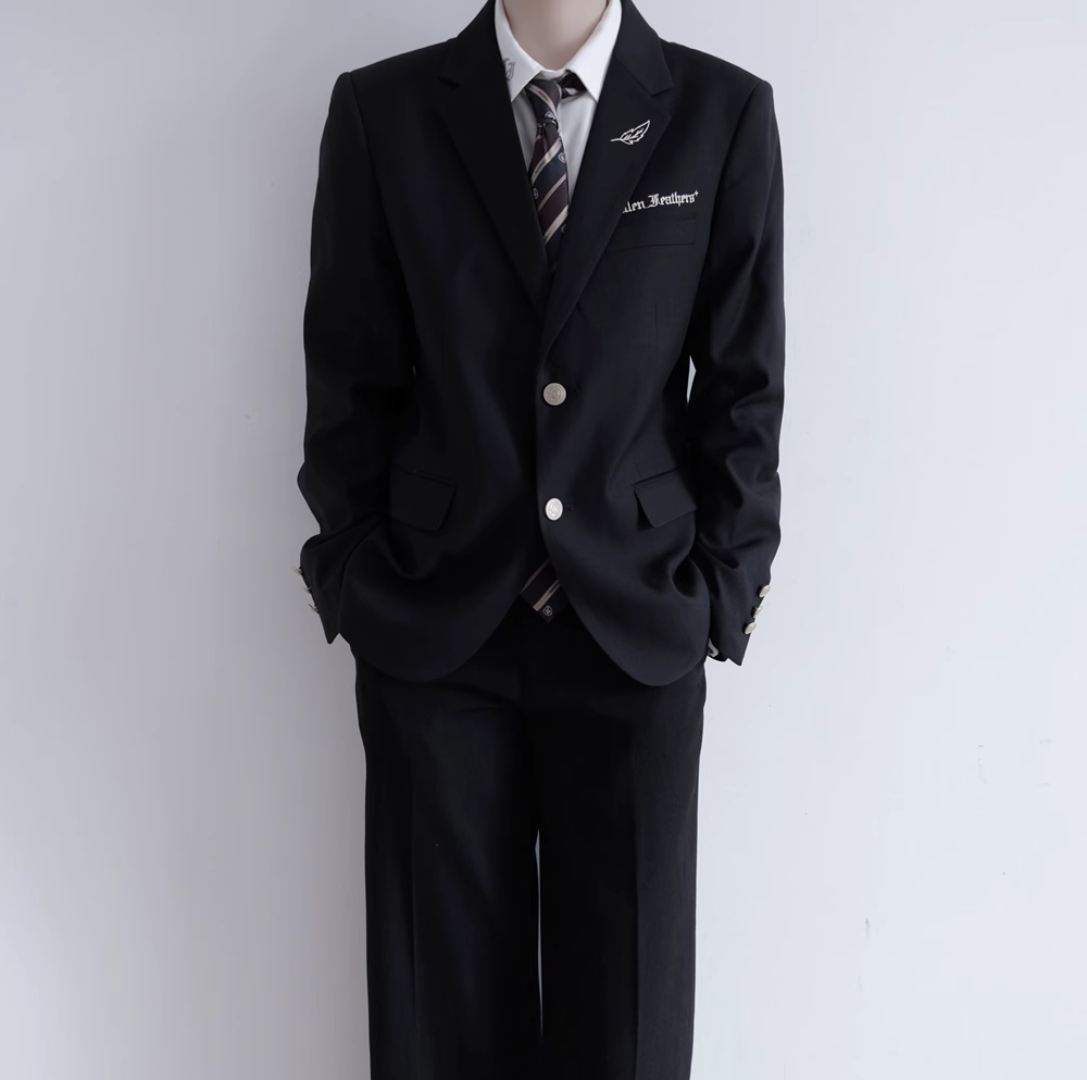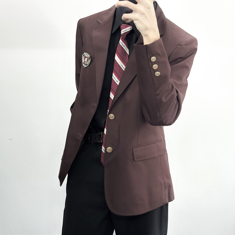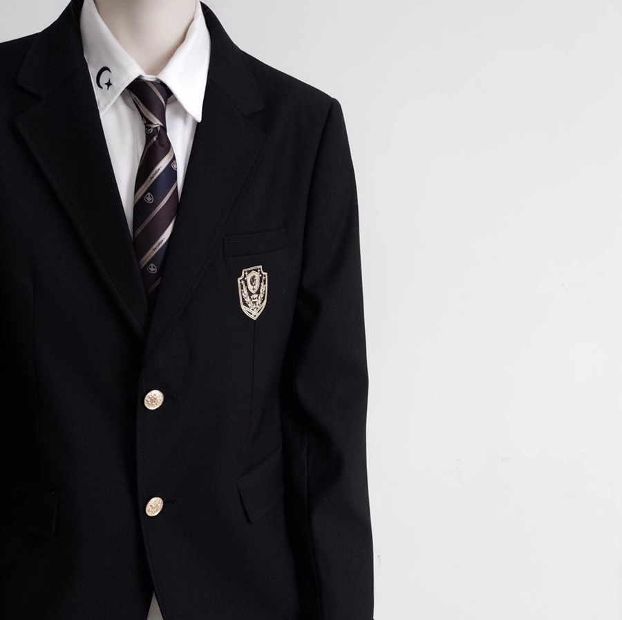 dk制服校供感上衣西装黑色蓝色男休闲外套双排扣西服套装