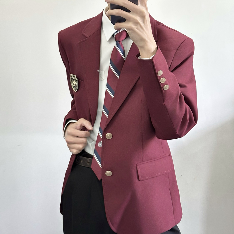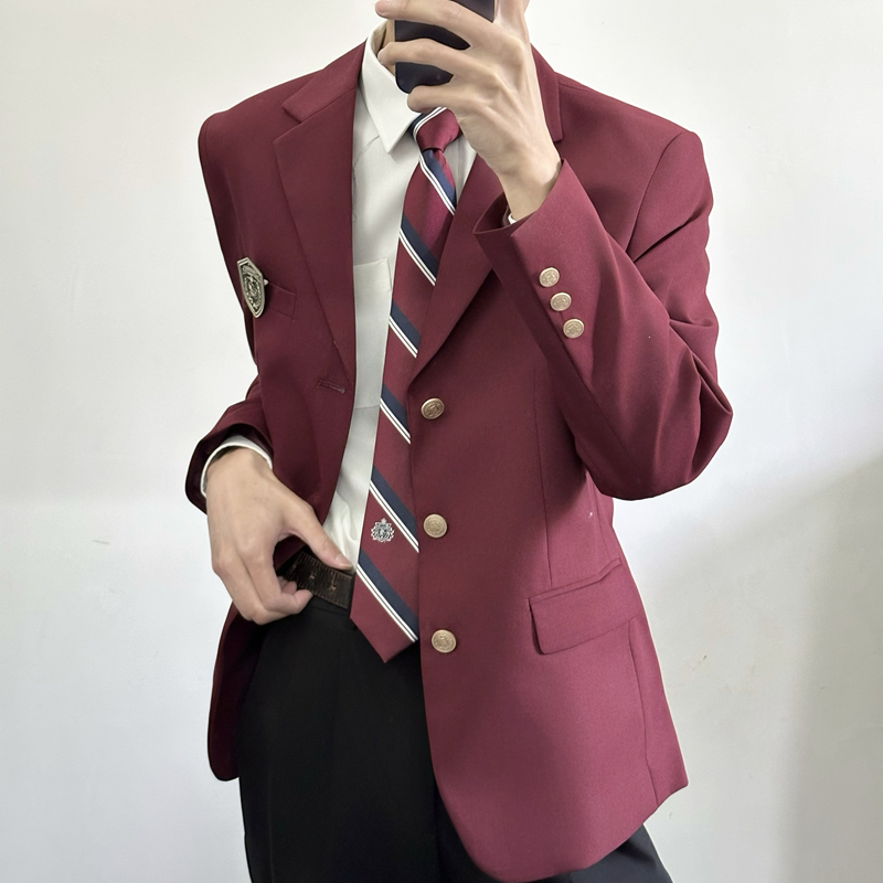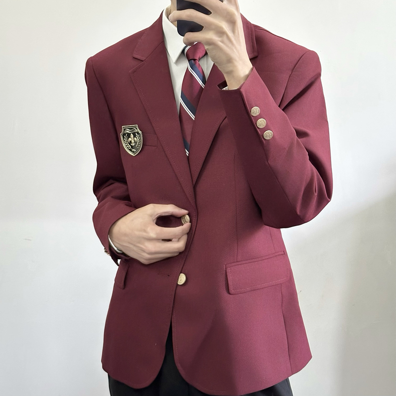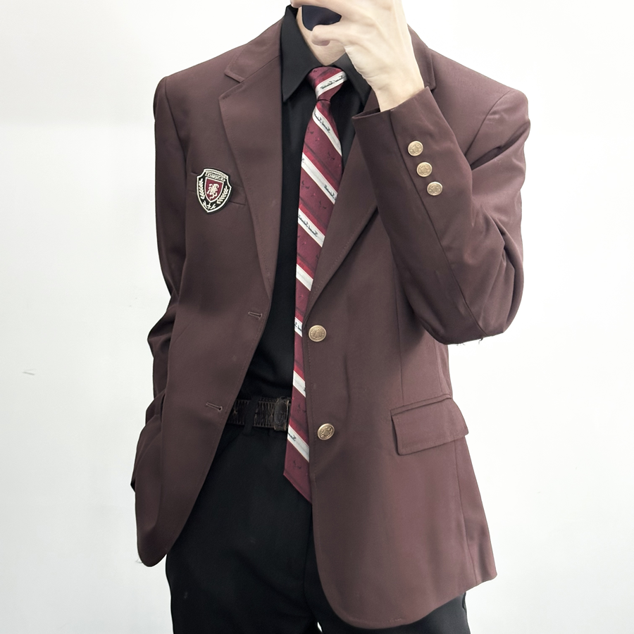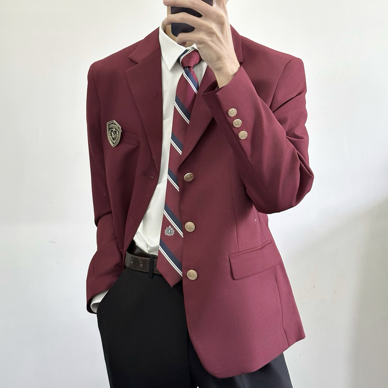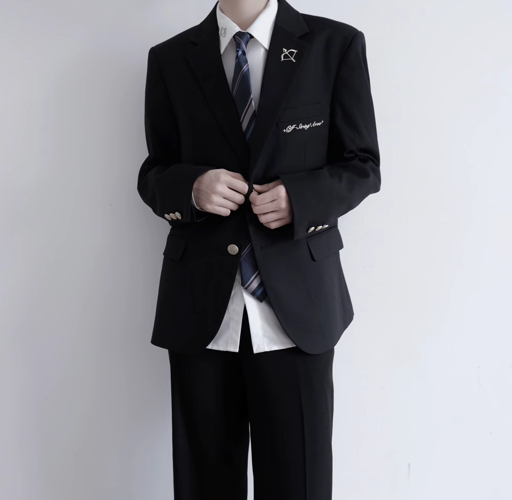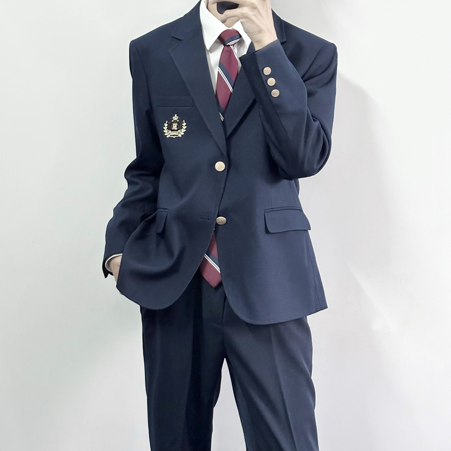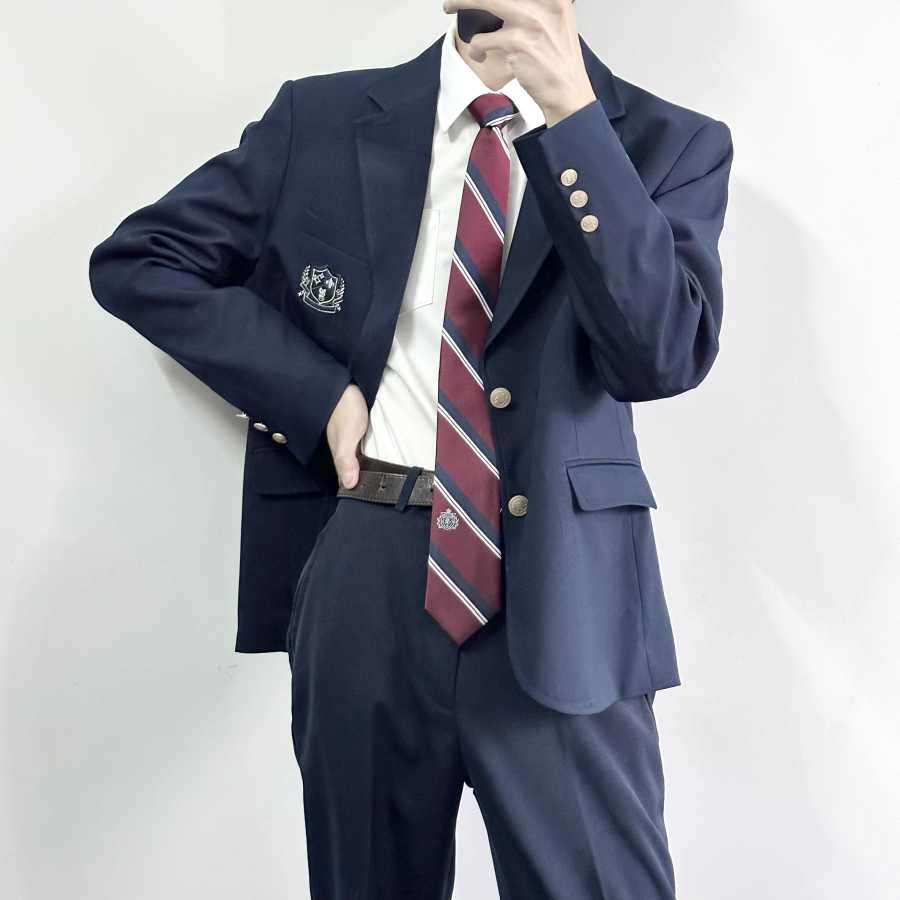 dk制服校供感上衣西装黑色蓝色男休闲外套双排扣西服套装