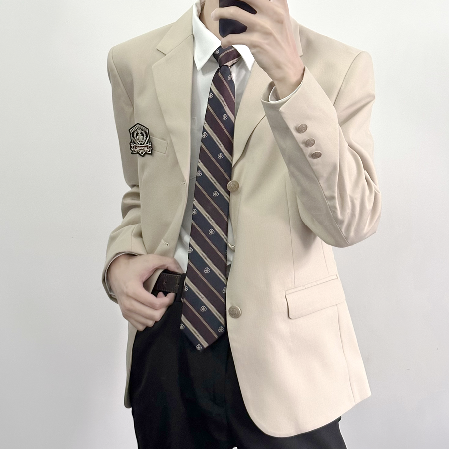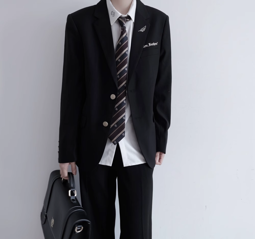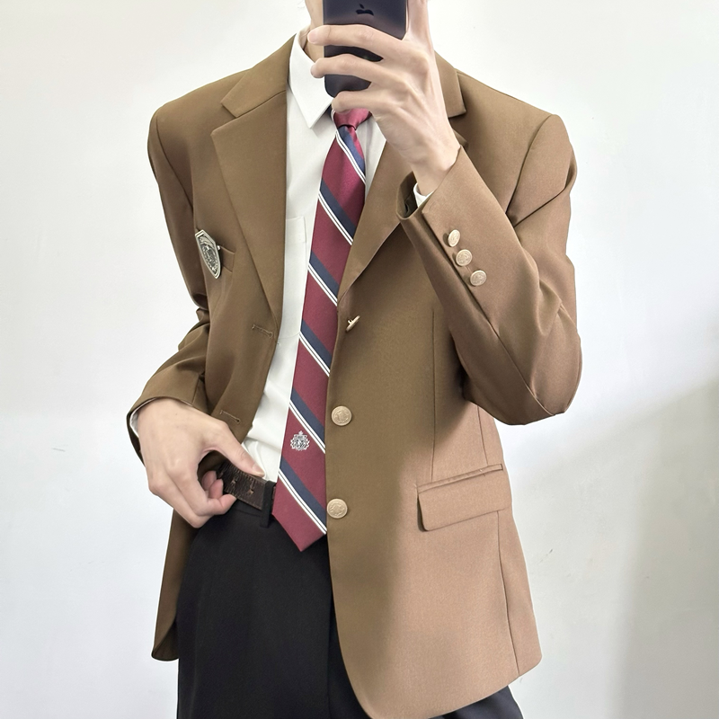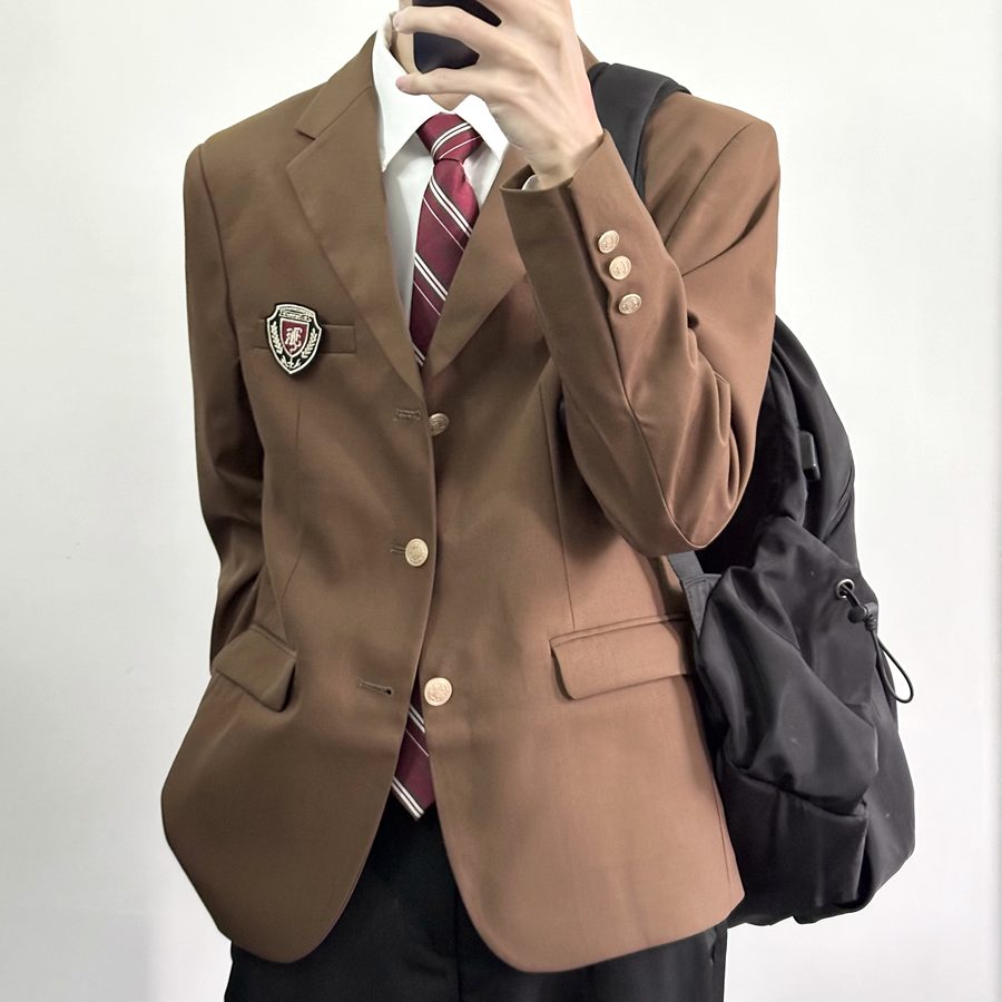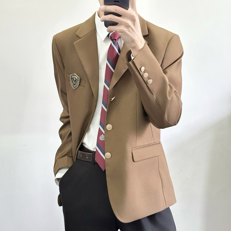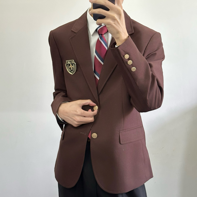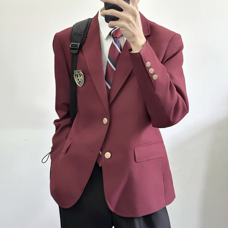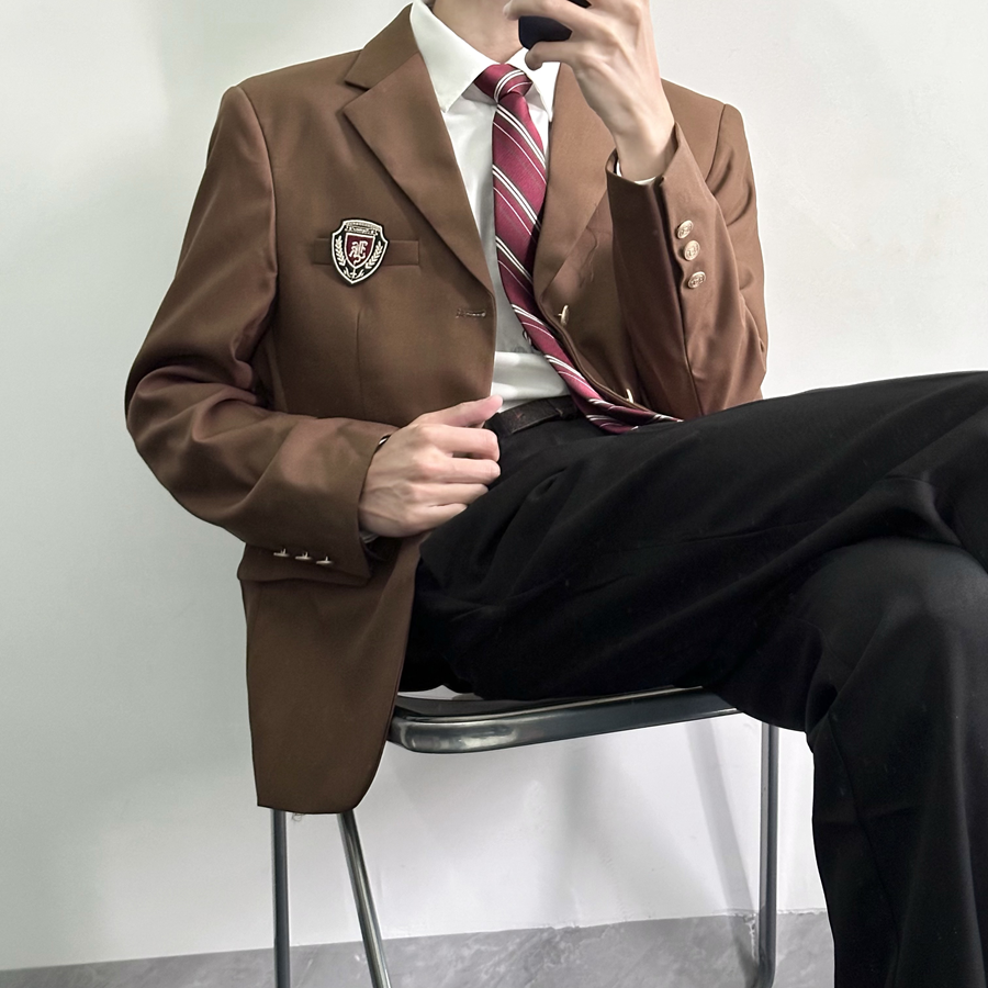 dk制服校供感上衣西装黑色蓝色男休闲外套双排扣西服套装