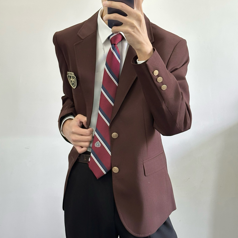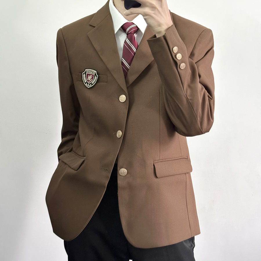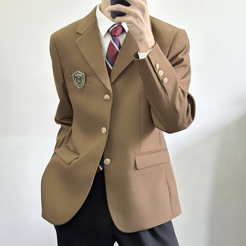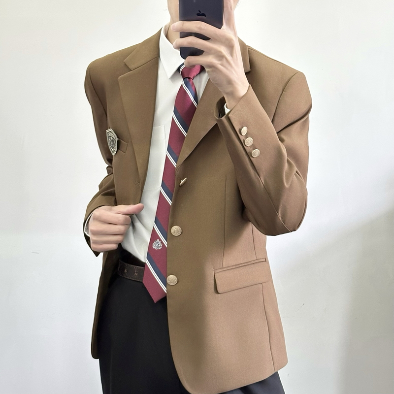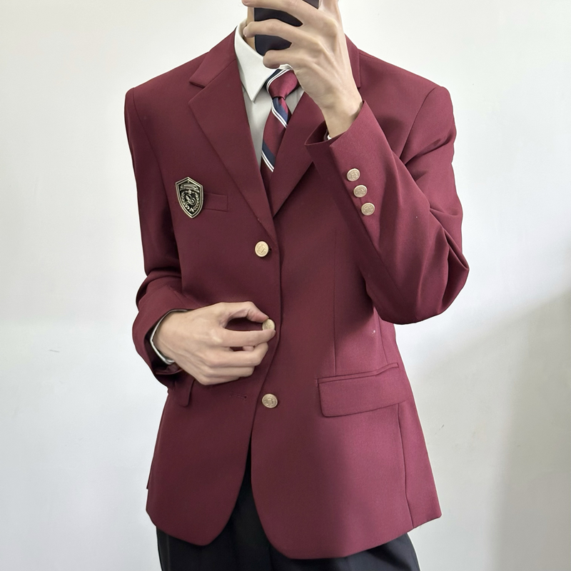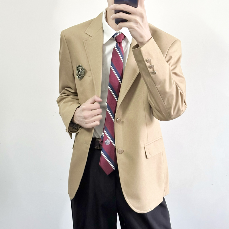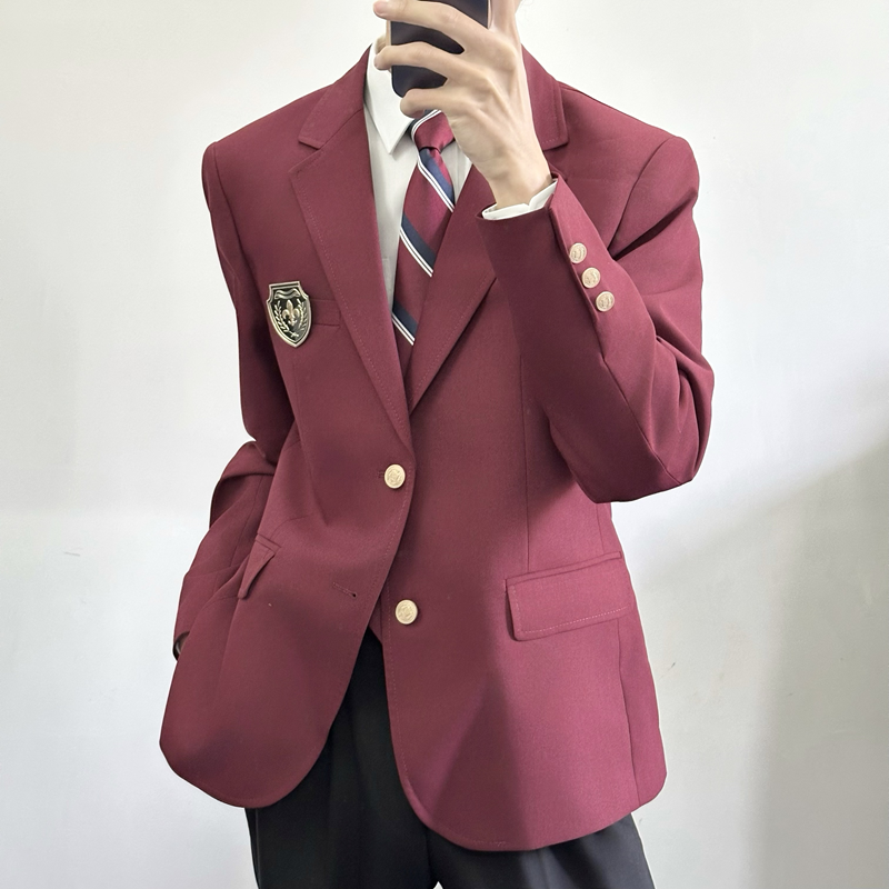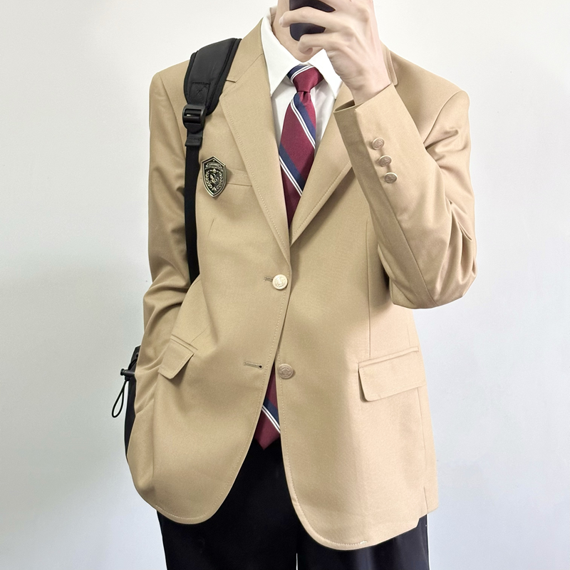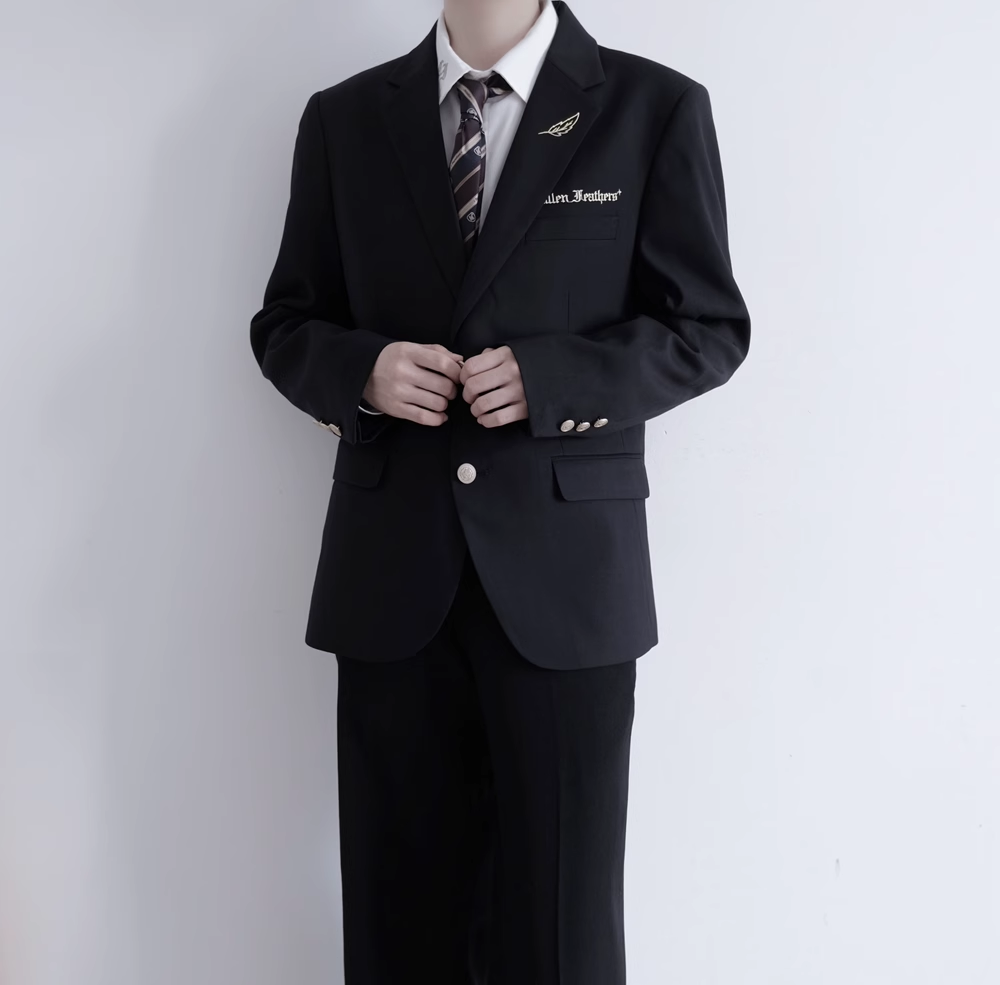 dk制服校供感上衣西装黑色蓝色男休闲外套双排扣西服套装