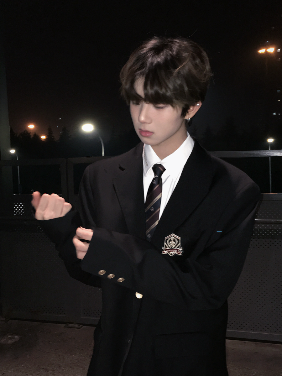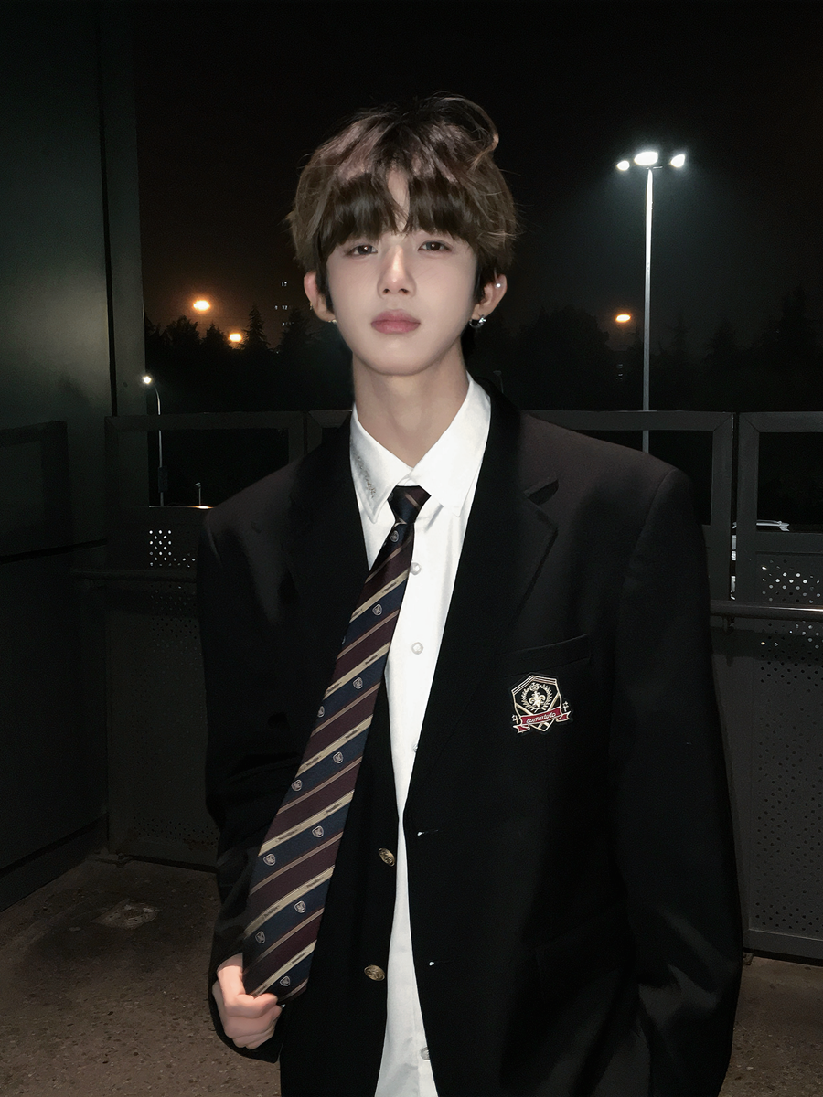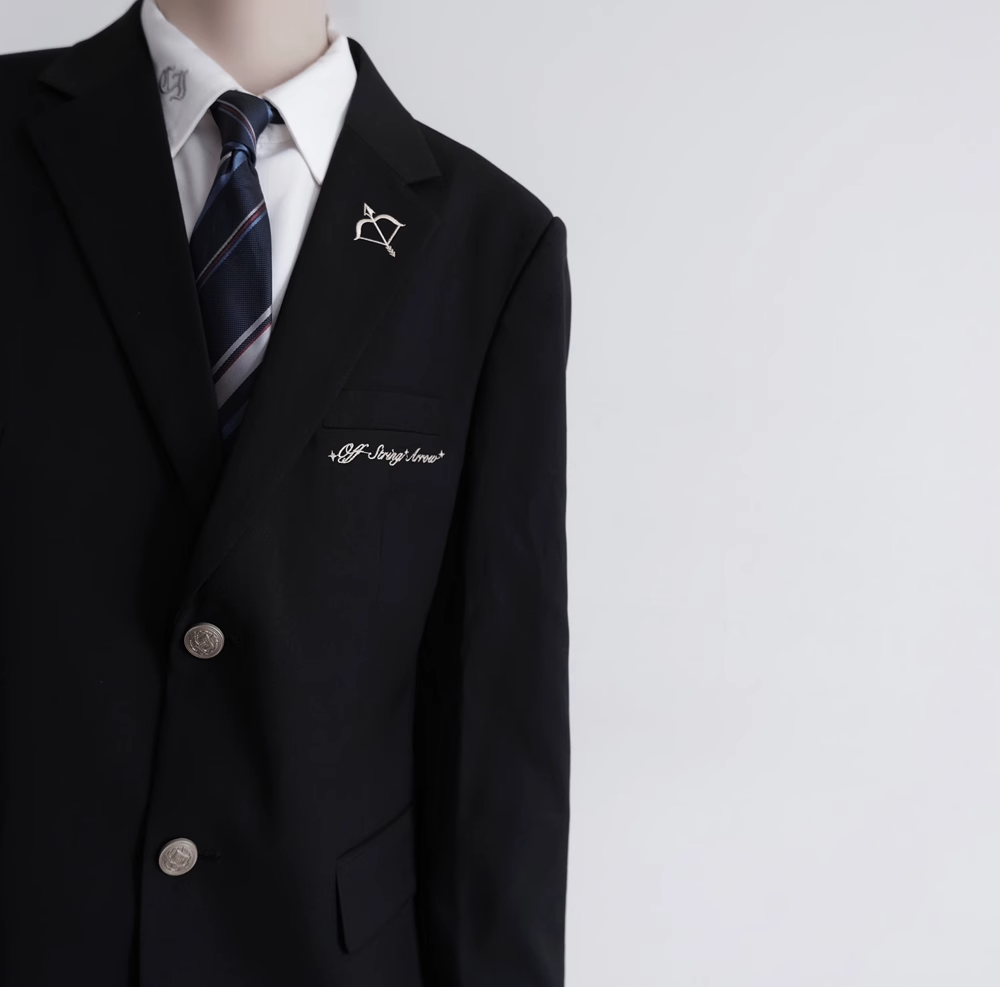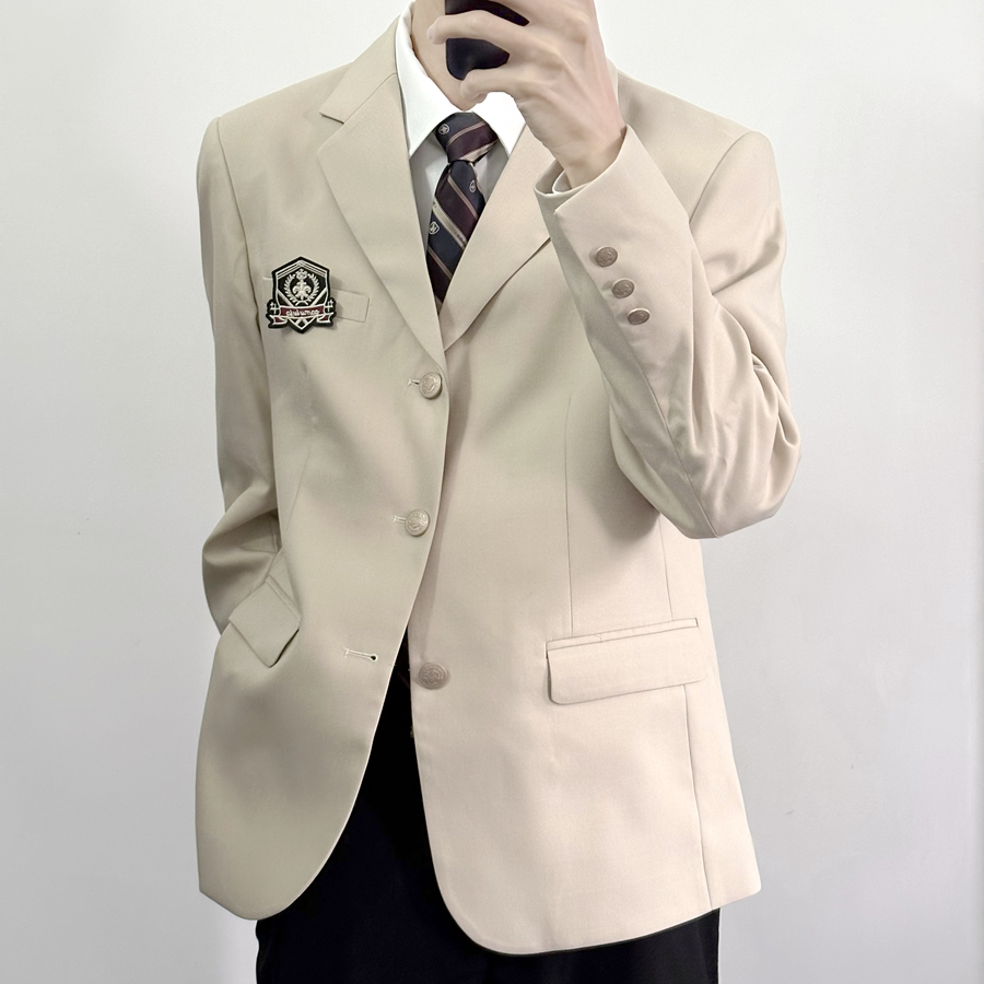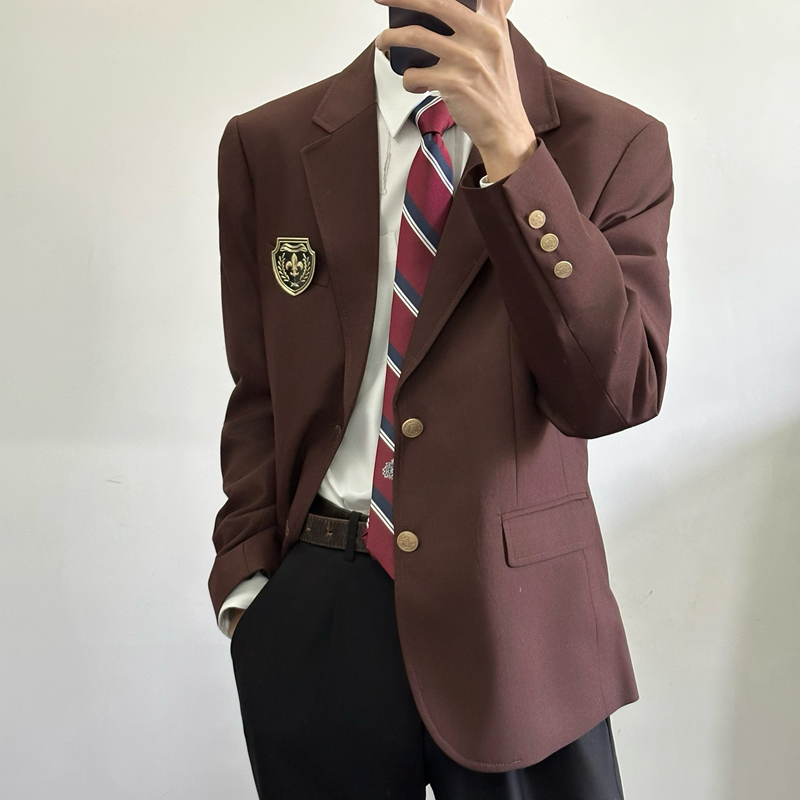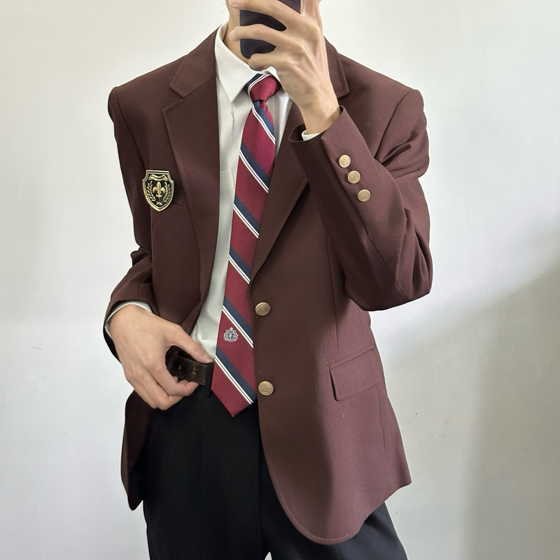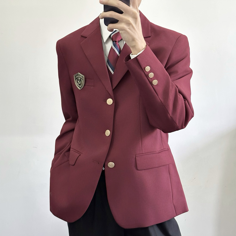 dk制服校供感上衣西装黑色蓝色男休闲外套双排扣西服套装