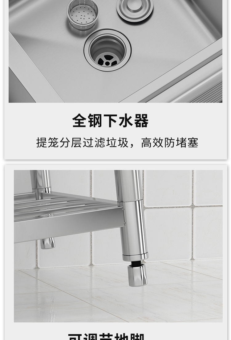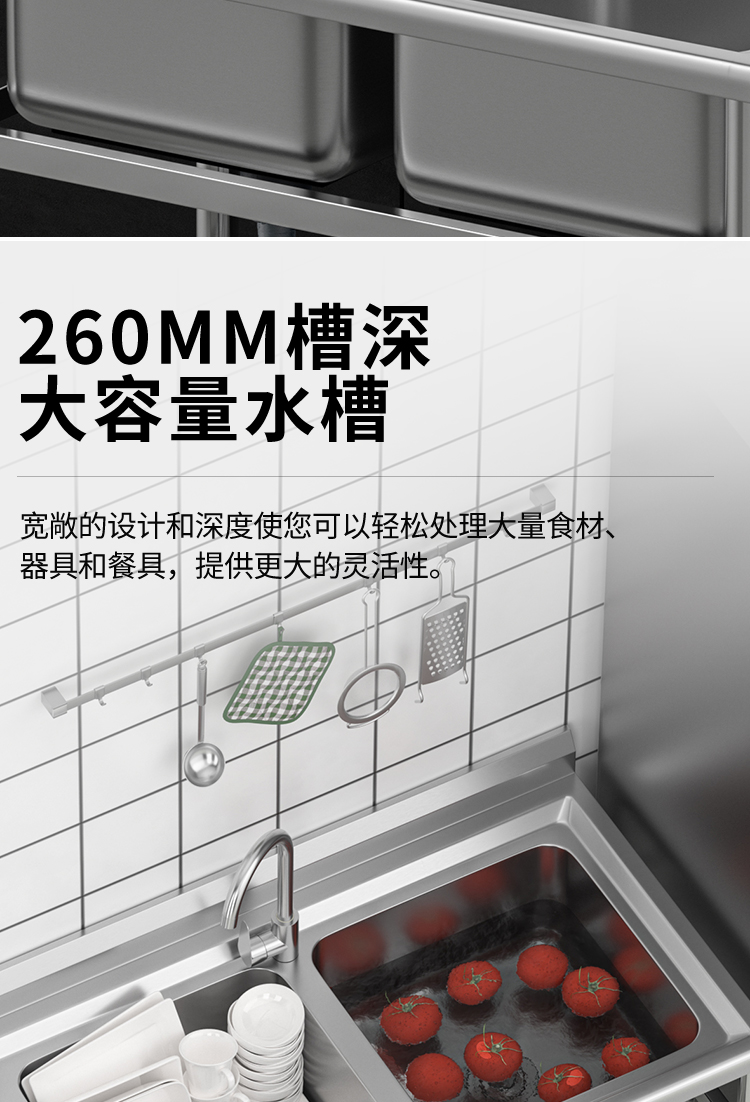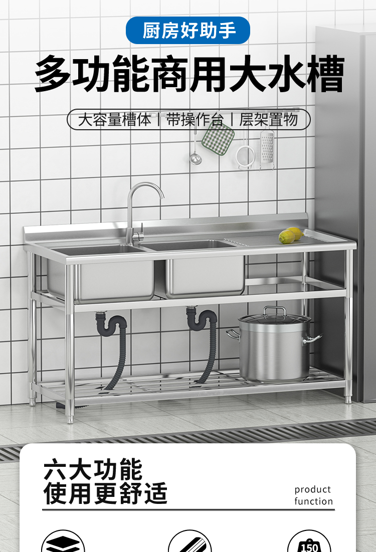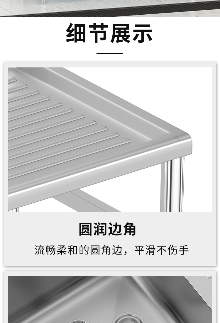 商用不锈钢水槽洗菜盆单槽带支架洗碗池双槽厨房台面一体洗手盆